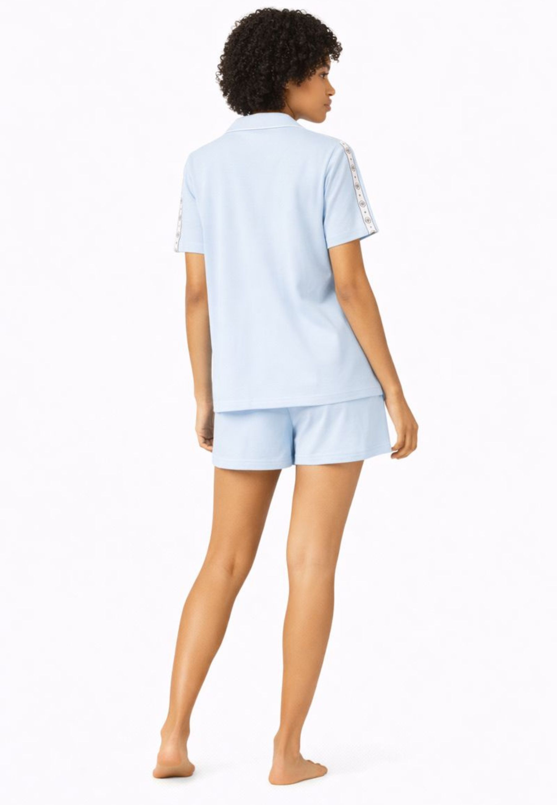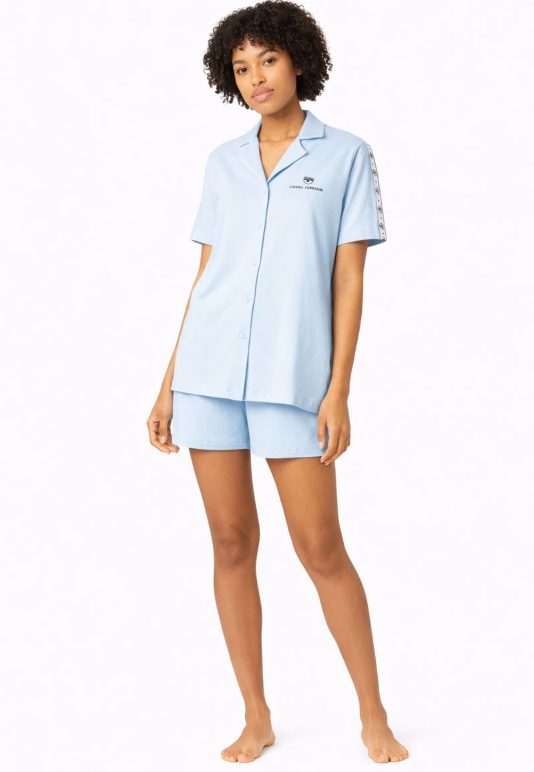 Pink pajamas for women Chiara Ferragni pajamas for women Pink color Short sleeve T-shirt with side logo and logo band With buttons Shorts with logoed side band Composition: 100% cotton Made in Italy