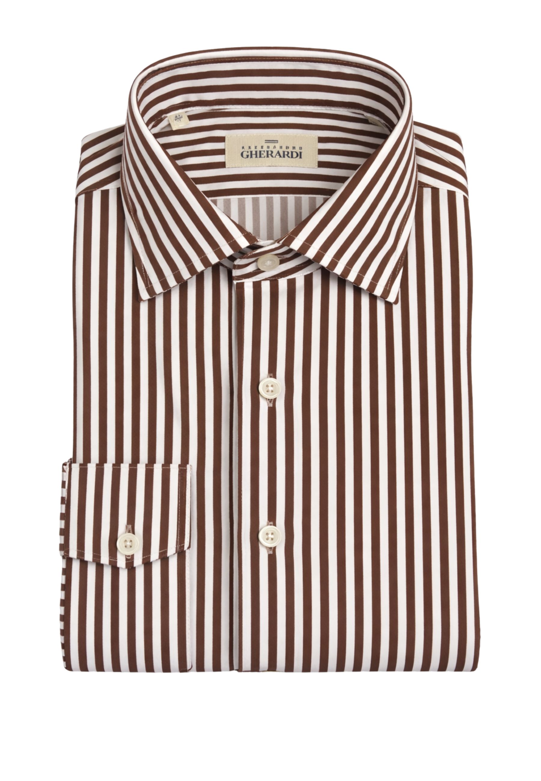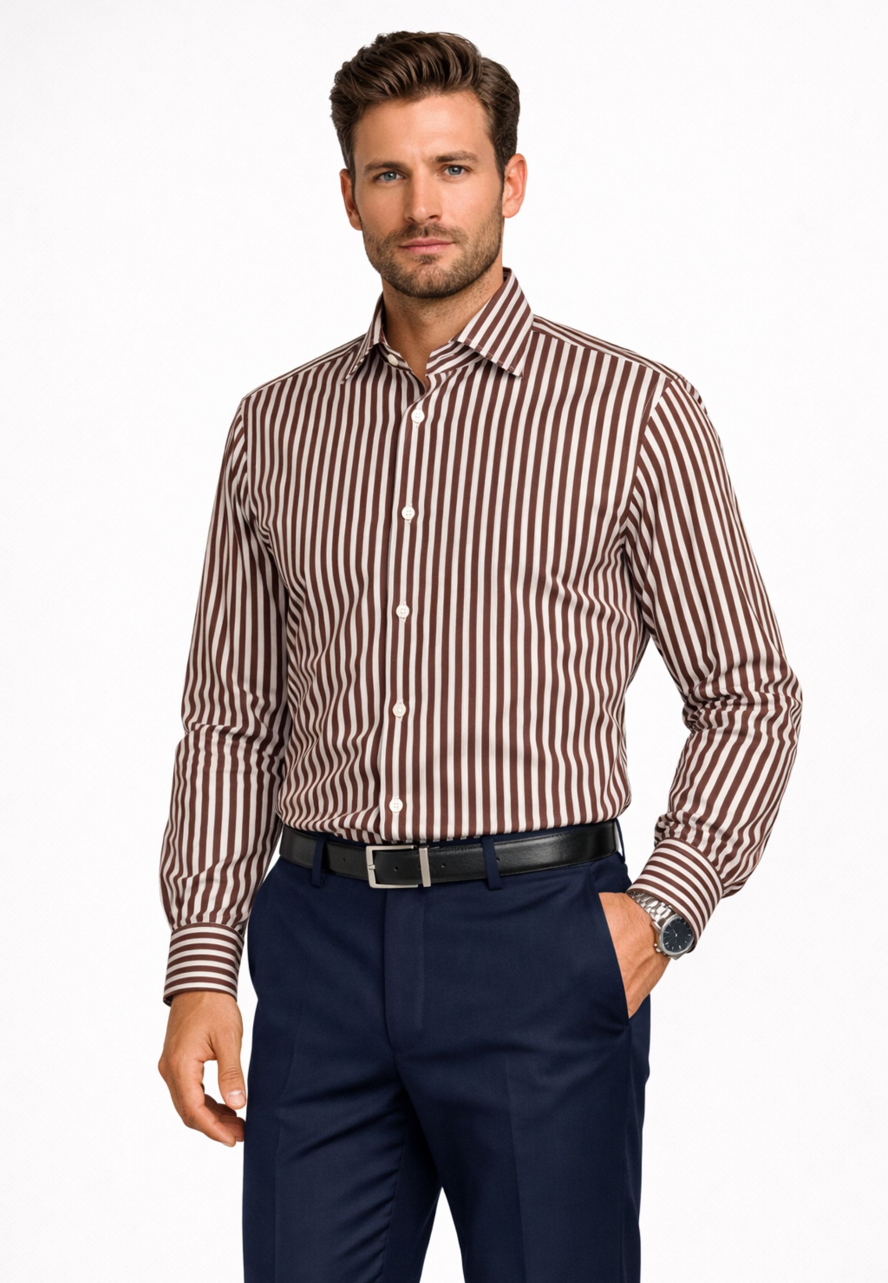 Raffinata e contemporanea, la camicia Alessandro Gherardi si distingue per il motivo a righe verticali marrone e bianco, una combinazione elegante che dona carattere al capo mantenendo uno stile classico e versatile. Il design essenziale con colletto classico e chiusura frontale con bottoni esprime lautentica tradizione della camiceria italiana.