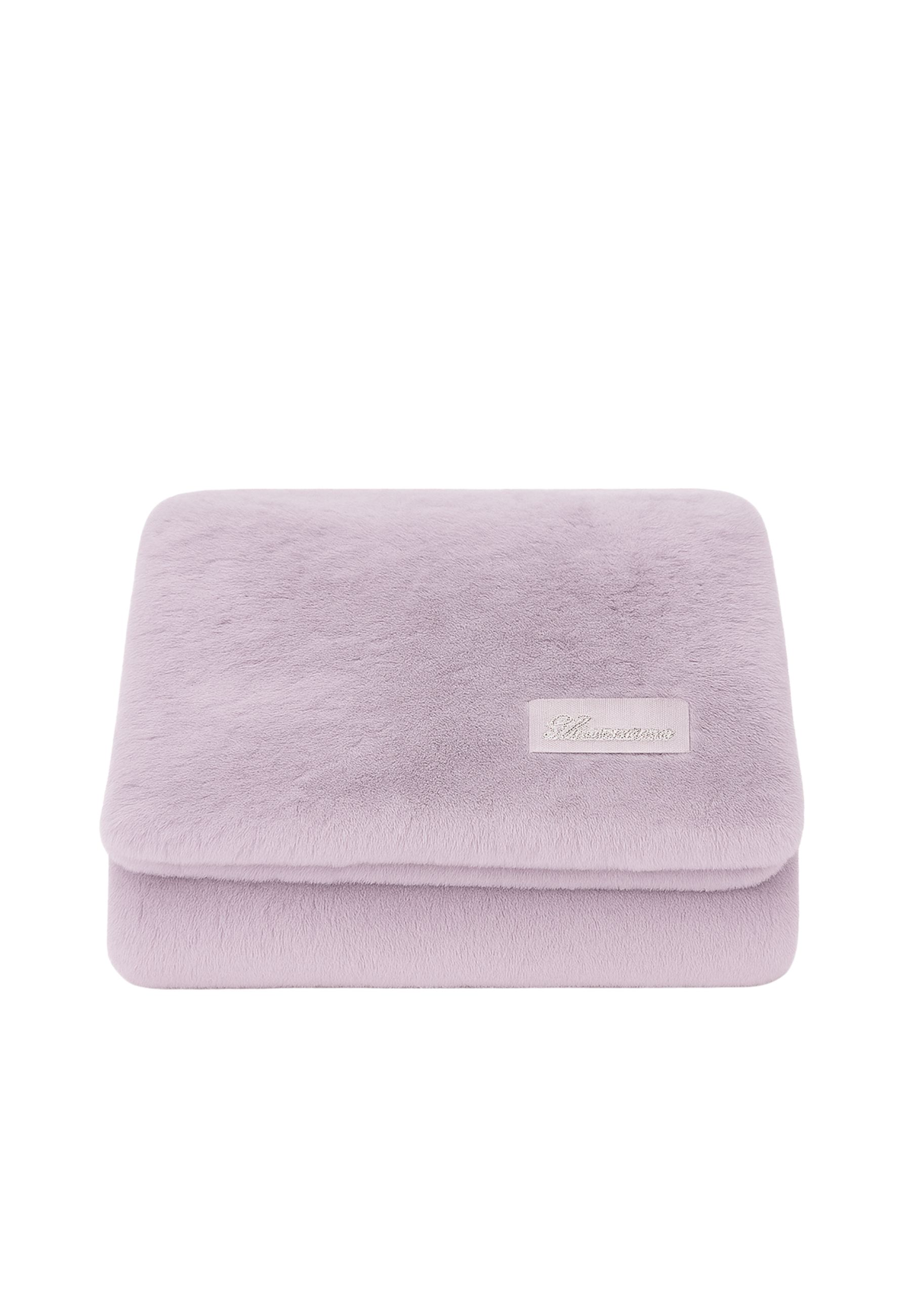 Lussuoso copriletto matrimoniale Blumarine New Blanca nella variante Glicine, realizzato in morbida ecopelliccia e impreziosito dal logo Blumarine in cristalli Swarovski® applicato su elegante nastro gros-grain. Il retro in velluto tinta unita completa il capo donando un effetto avvolgente, raffinato e dal comfort impareggiabile.
