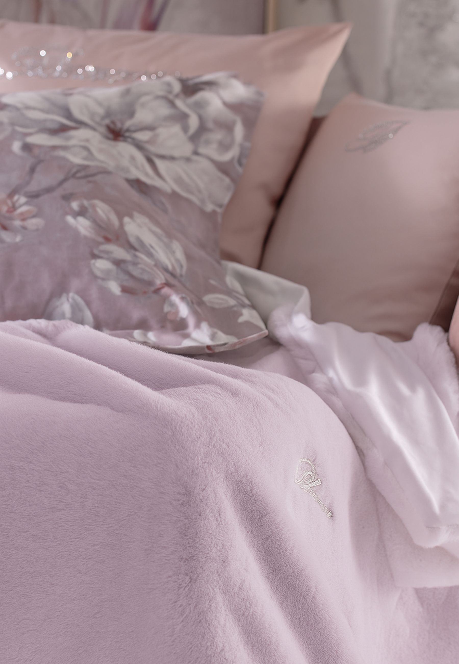 Un capo esclusivo che unisce design elegante, qualità artigianale e brillantezza dei cristalli Swarovski®, ideale per arredare la camera con il fascino inconfondibile dello stile Blumarine Home Collection.