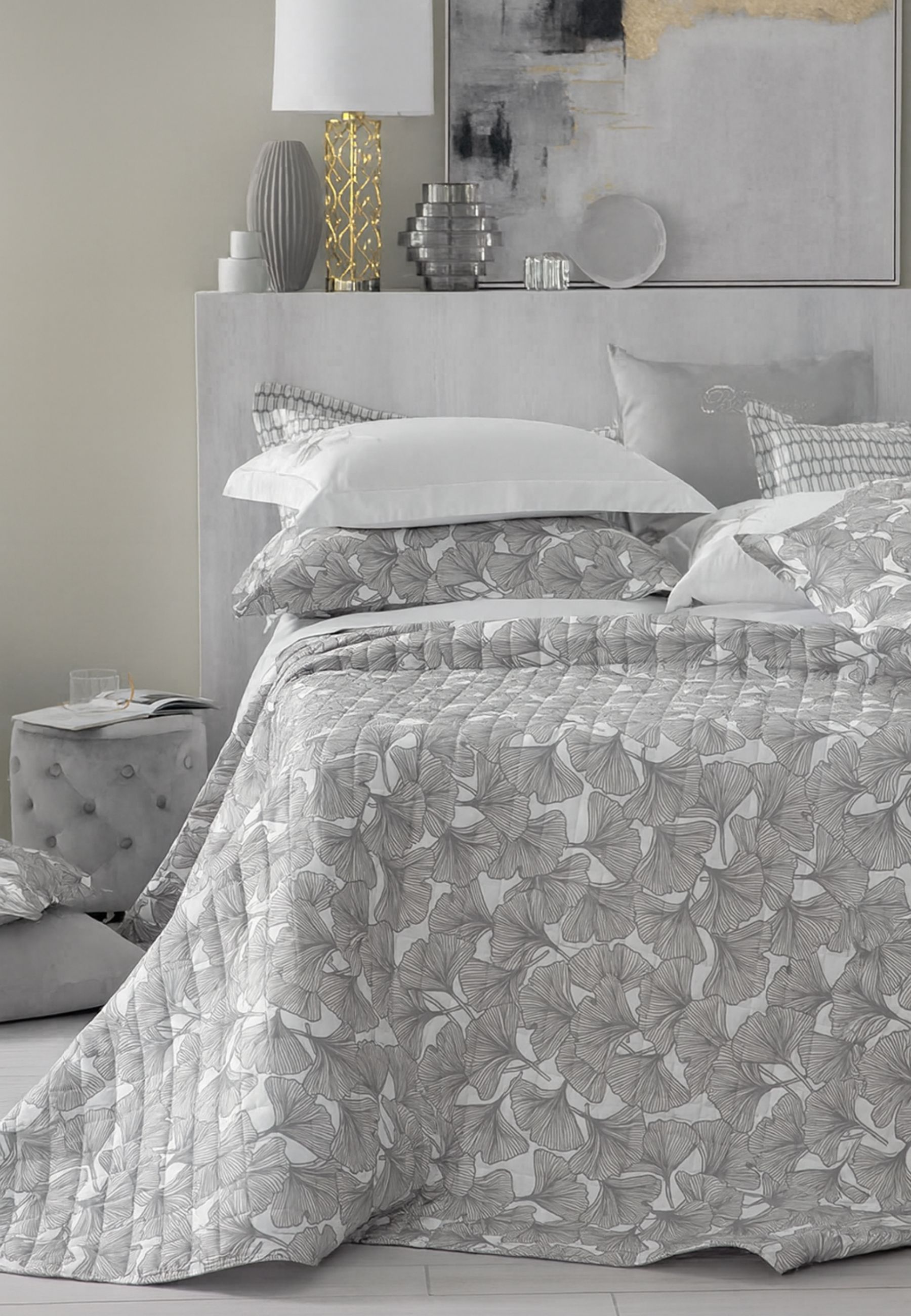 Raffinato copriletto matrimoniale con stampa all over, espressione di eleganza e comfort senza tempo. Realizzato in prezioso raso di cotone 300 TC, regala una sensazione di morbidezza setosa e una lucentezza raffinata che valorizza ogni camera da letto.