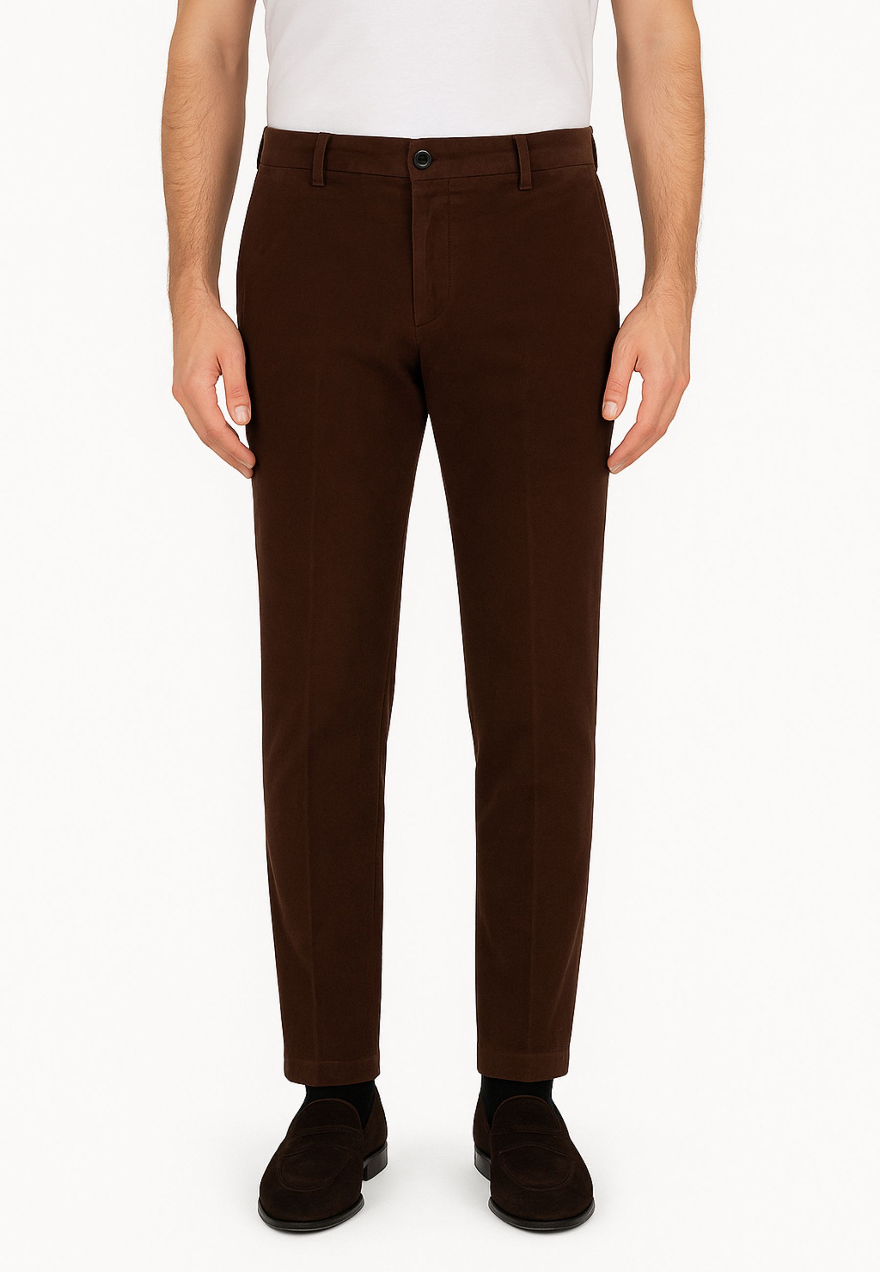 Un modello dal carattere sartoriale firmato Briglia, pensato per luomo che ricerca eleganza e comfort quotidiano. Realizzato in resistente tessuto gabardina, offre una vestibilità slim fit che slancia la silhouette mantenendo una linea moderna e raffinata. Il risvolto alla caviglia dona un tocco di stile contemporaneo, rendendolo adatto sia a look casual che formali.