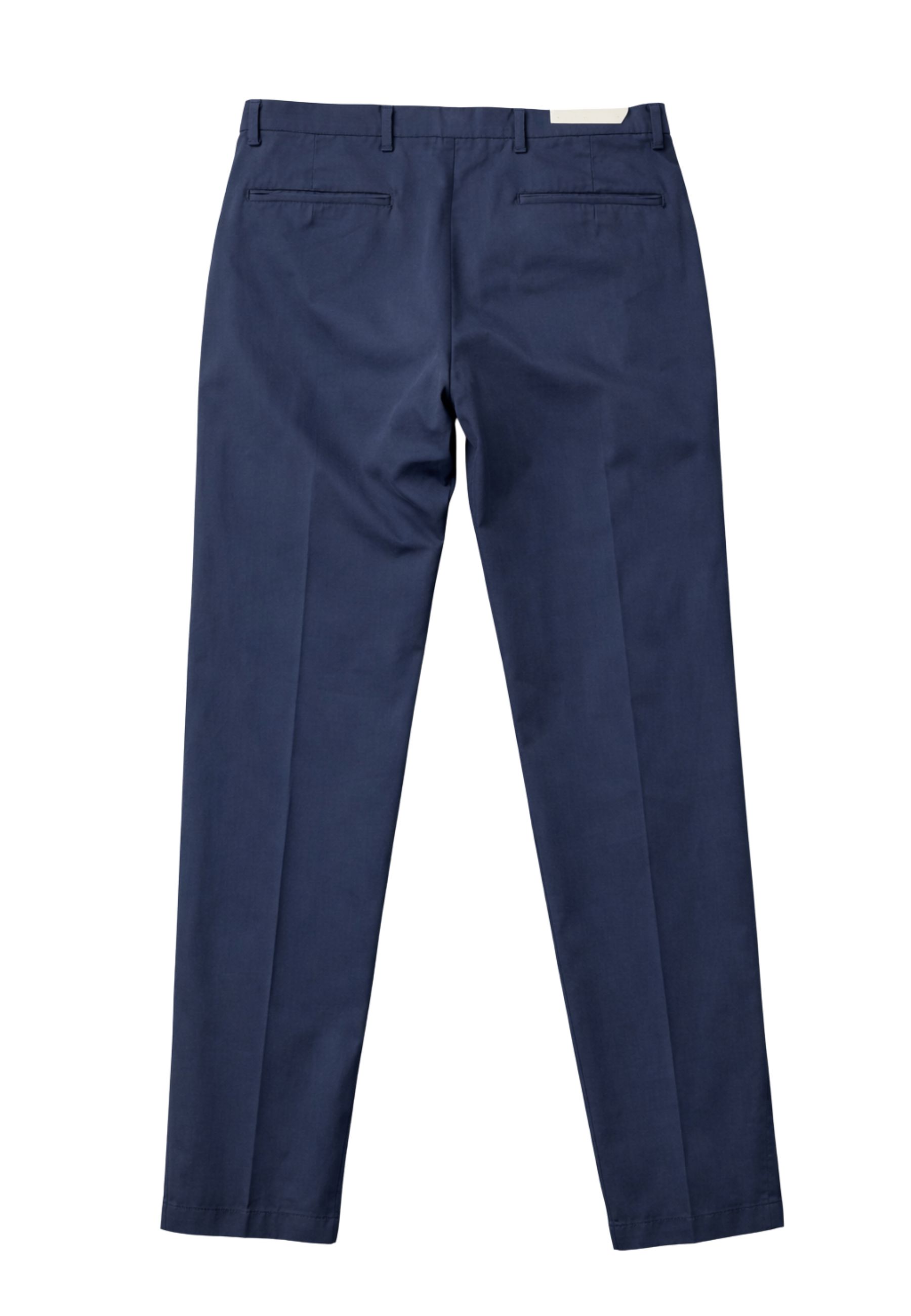 La chiusura frontale con bottone e zip, i passanti per cintura e le tasche laterali garantiscono funzionalità e praticità, mentre il tessuto in cotone stretch assicura elasticità, traspirabilità e libertà di movimento. Il retro è rifinito con tasche a filetto, per un tocco ordinato ed essenziale.
