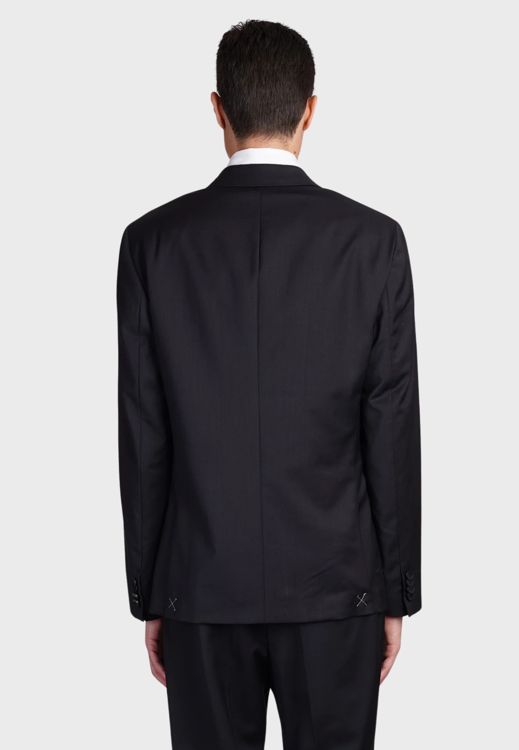 La giacca è caratterizzata da revers a lancia, chiusura frontale con un bottone, maniche lunghe con bottoni ai polsi, tasche a patta e tasca a filetto sul petto. Gli spacchi posteriori assicurano libertà di movimento, mentre il logo patch sulla manica firma il capo con discrezione.