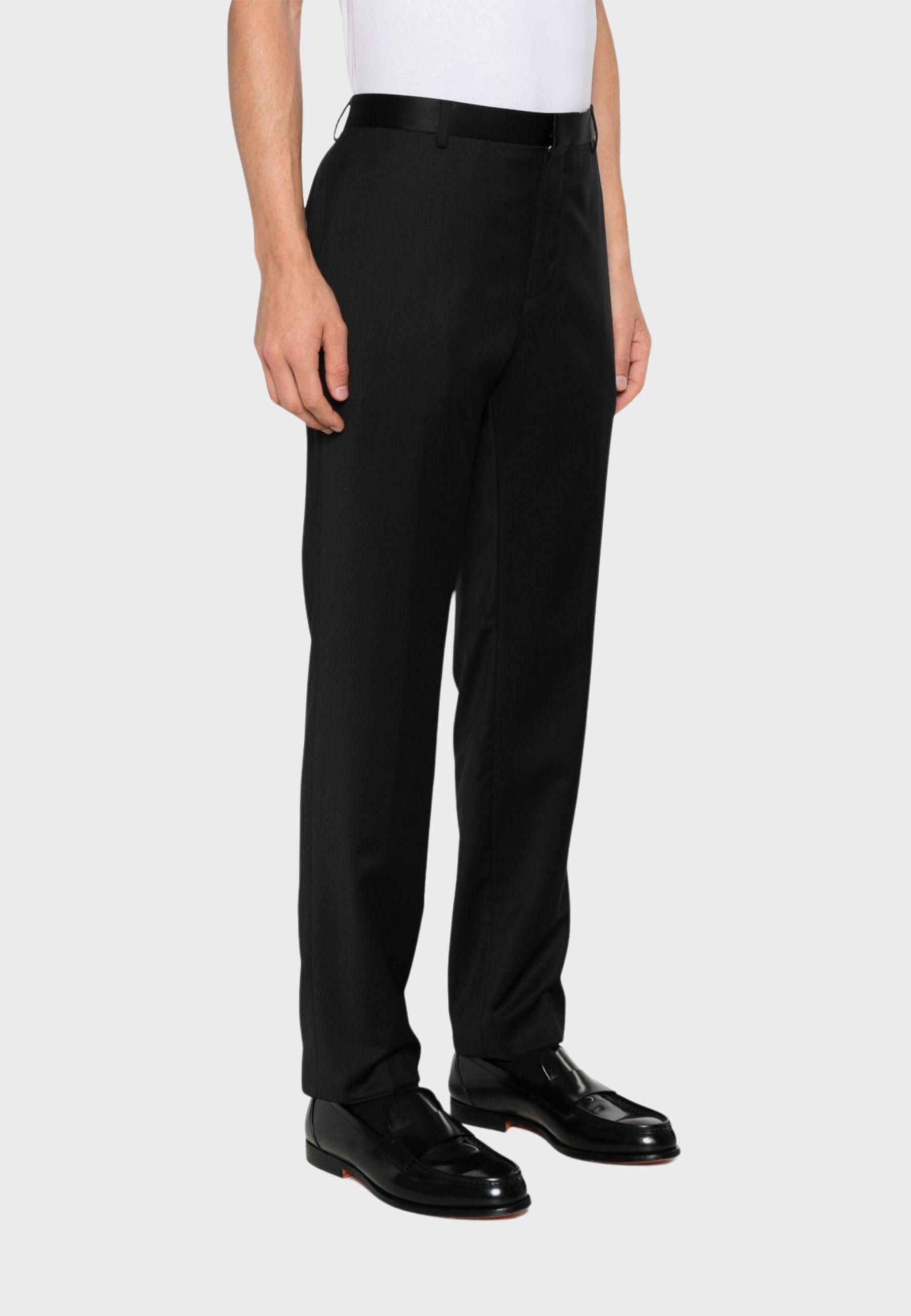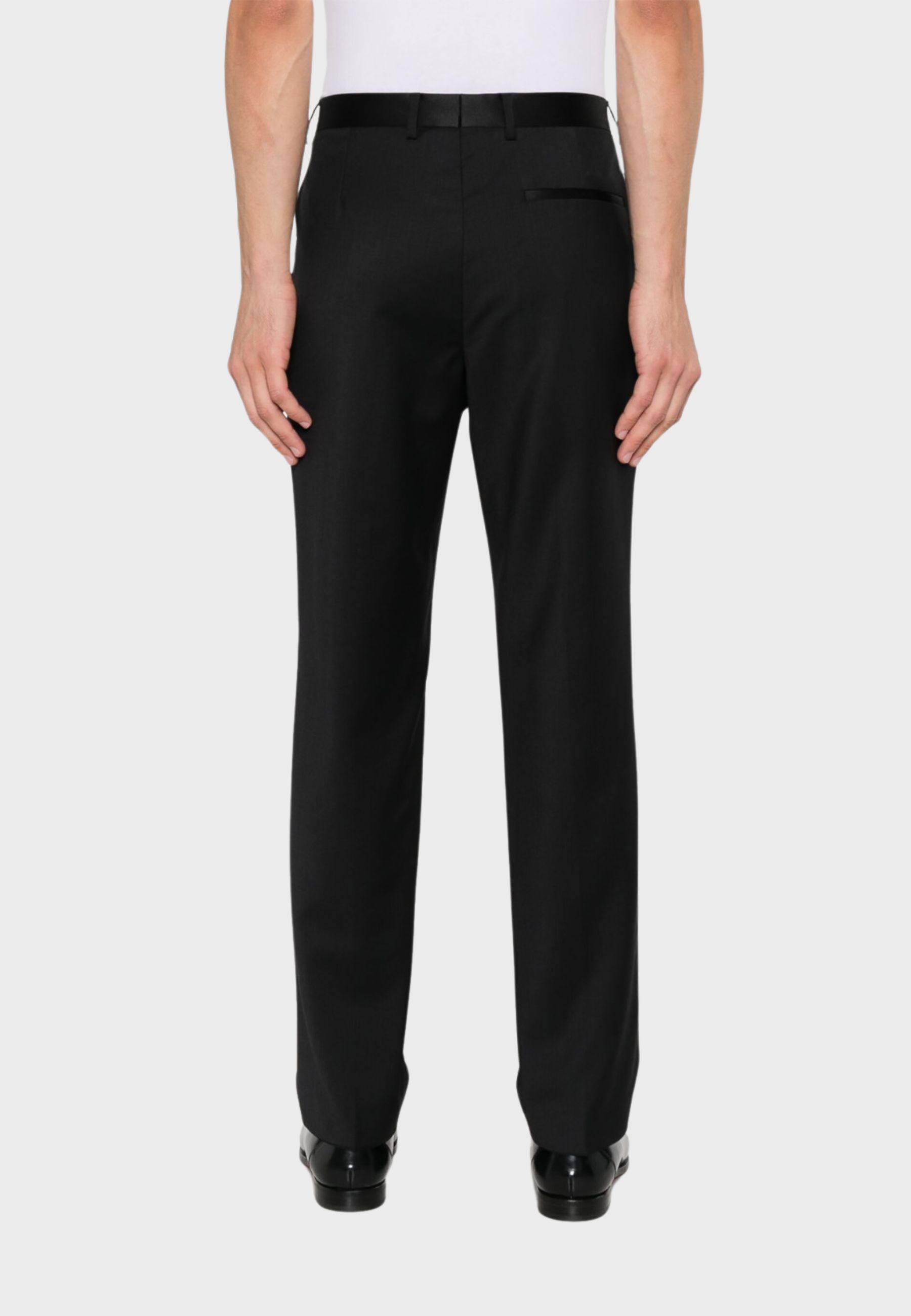 I pantaloni presentano linea slim-fit, costruzione pulita e una tasca posteriore con patta, mantenendo unestetica moderna e raffinata.