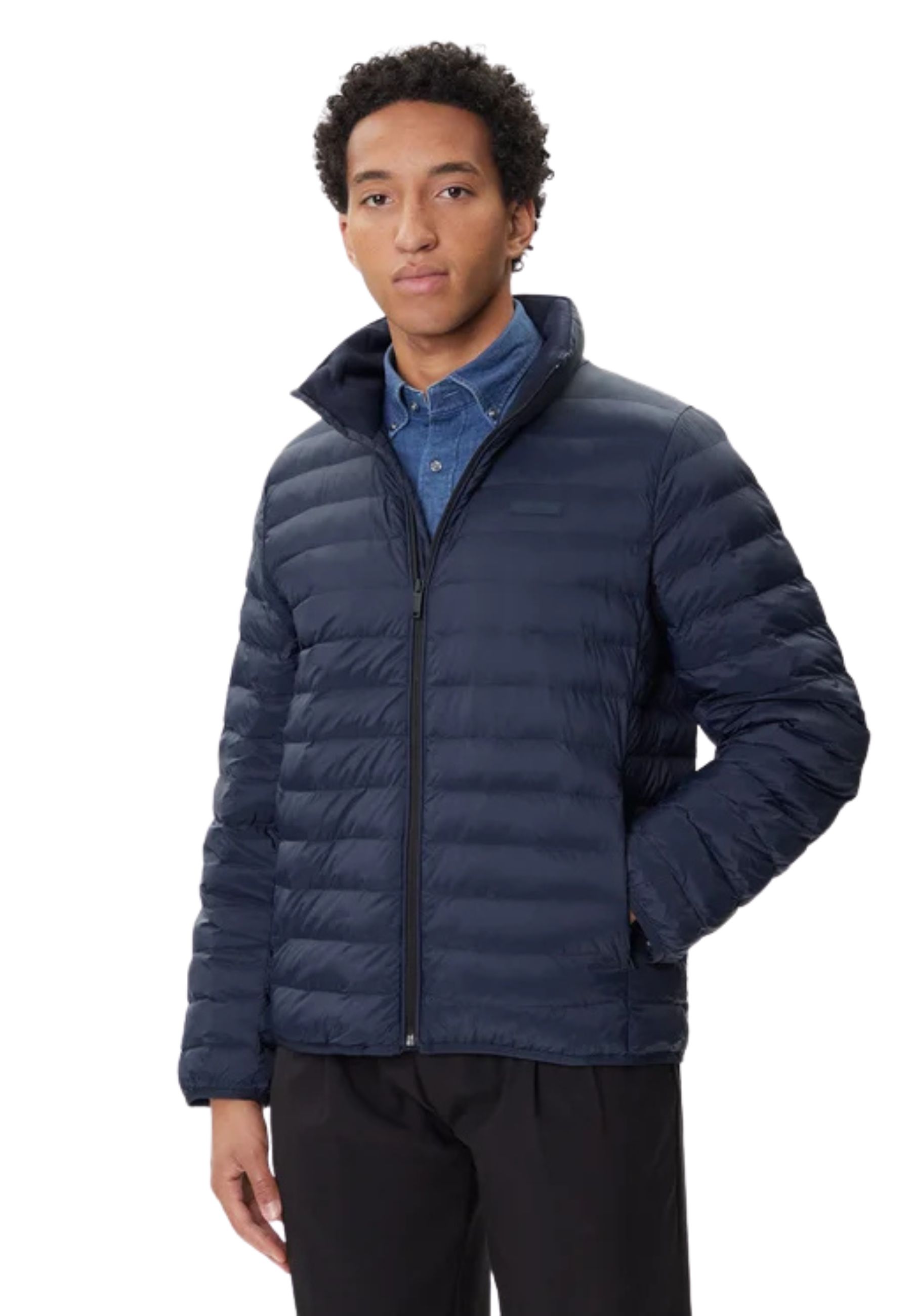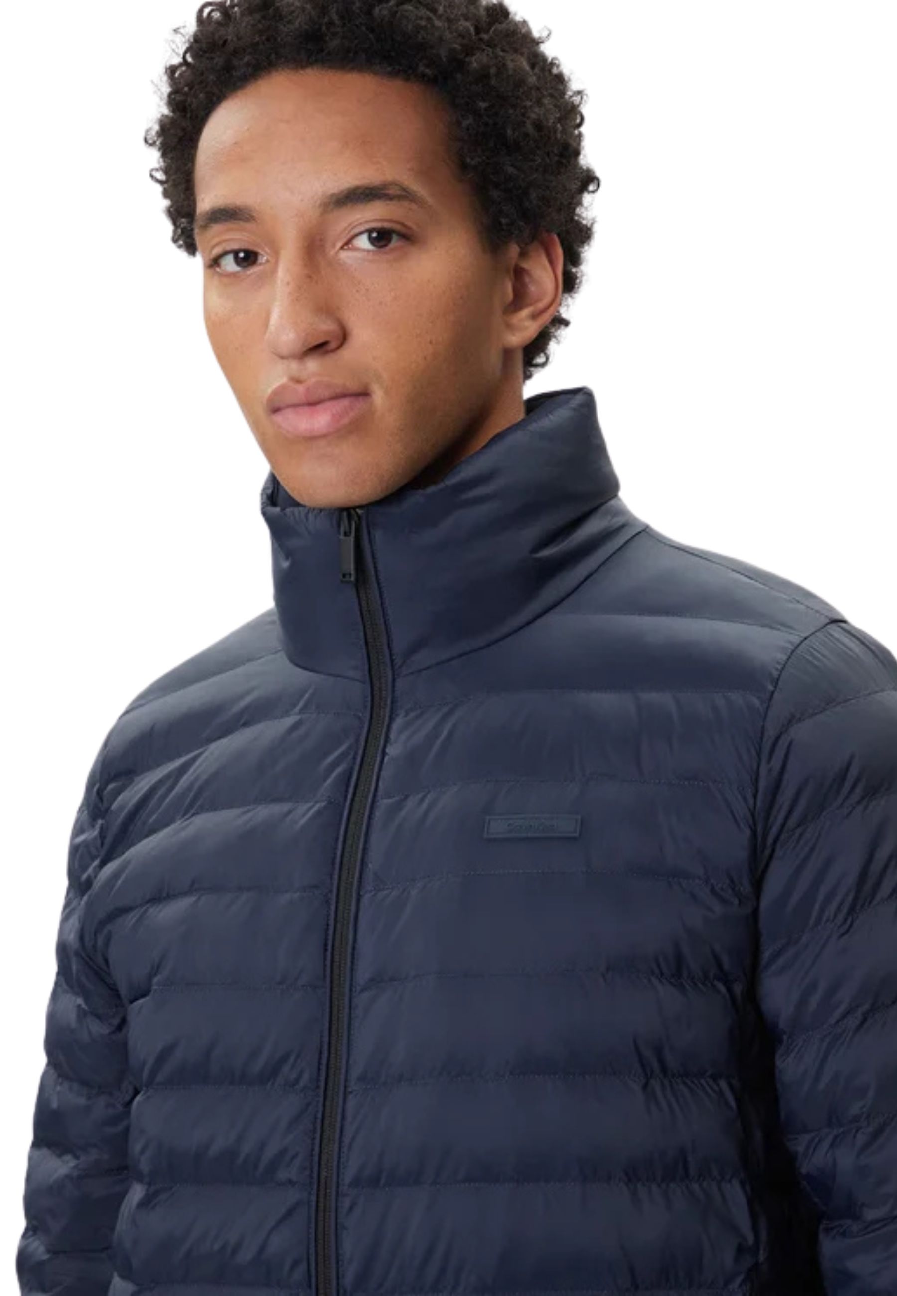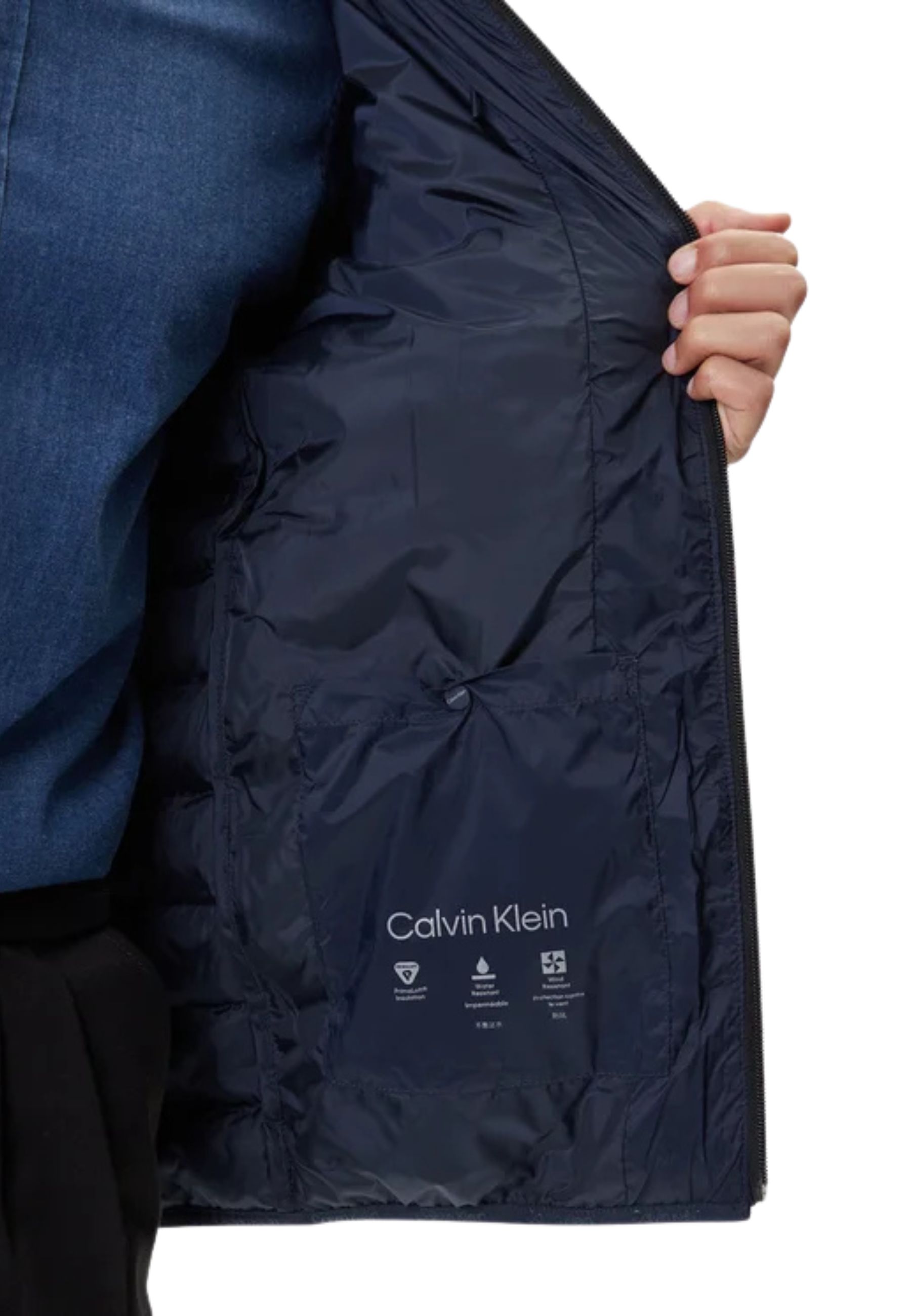 Giubbotto imbottito leggero firmato Calvin Klein, realizzato in tessuto tecnico 100% poliammide. Il modello presenta trapuntatura orizzontale, chiusura con zip a doppio cursore e tasche laterali con zip. Il design minimal e moderno è arricchito dal logo discreto sul petto, per uno stile essenziale e contemporaneo. Grazie alla sua leggerezza e alla fodera in poliestere riciclato, è perfetto per la mezza stagione e per look casual e versatili.