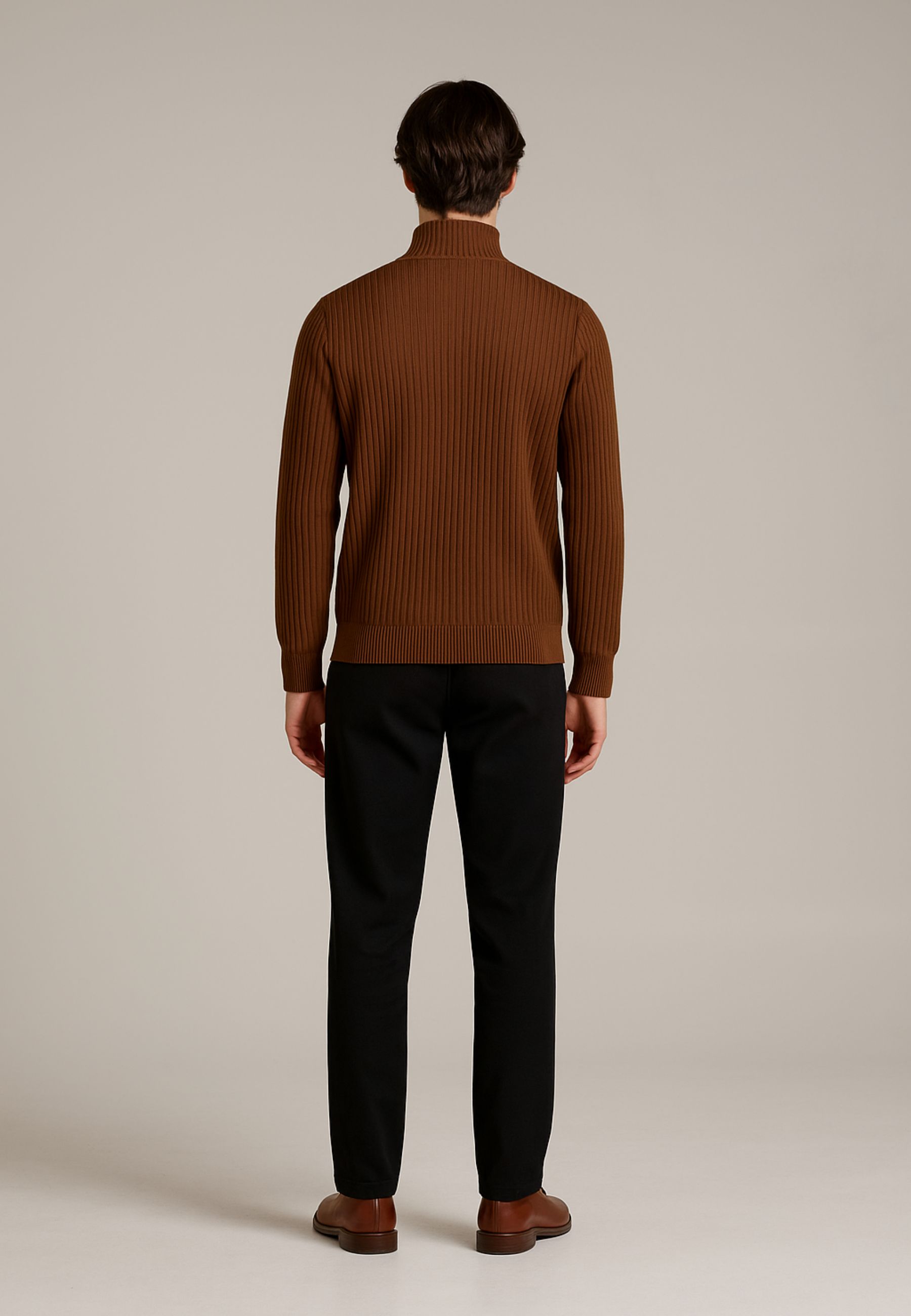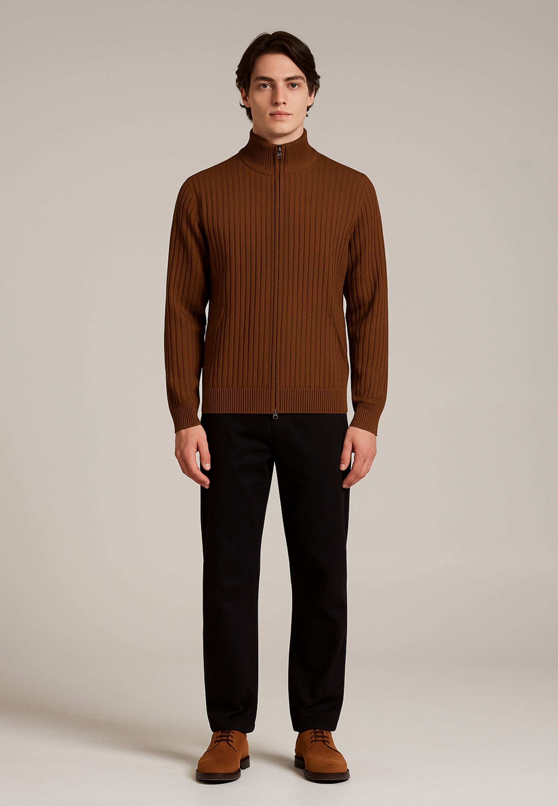 Lupetto con zip Daniele Fiesoli realizzato in lana vergine e poliammide, caratterizzato da una lavorazione a coste che dona struttura e un look contemporaneo. Il collo alto con zip frontale assicura comfort e versatilità, mentre i bordi a coste su fondo e polsi completano le finiture. Un capo caldo e morbido, ideale per la stagione fredda, perfetto sia per look casual che per abbinamenti più raffinati sotto giacche e cappotti