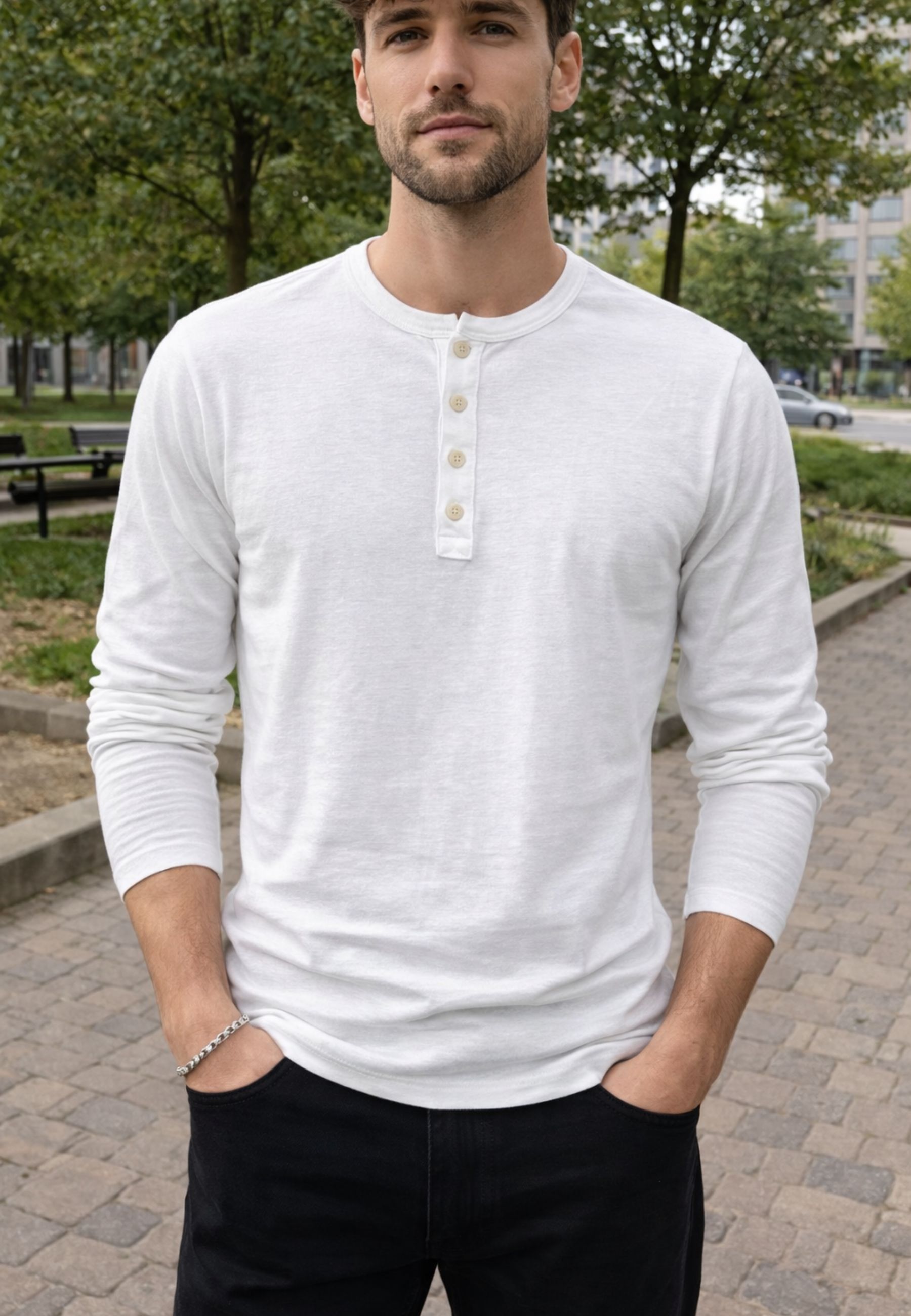 Maglia a manica lunga firmata Daniele Fiesoli, realizzata in pregiato lino con una leggera componente elasticizzata per garantire comfort e vestibilità naturale. Il tessuto, fresco e altamente traspirante, rende il capo ideale per la stagione primaverile ed estiva.