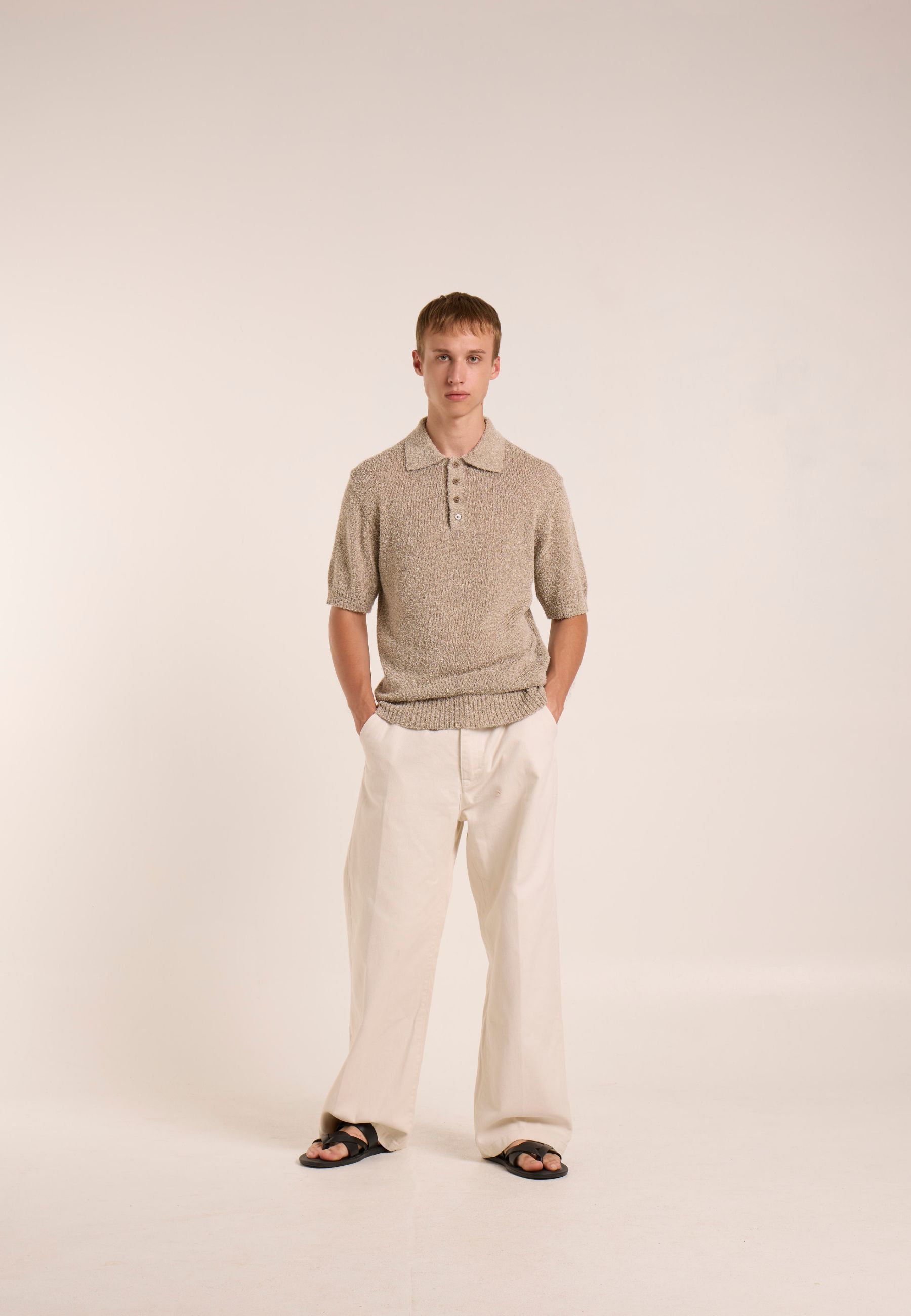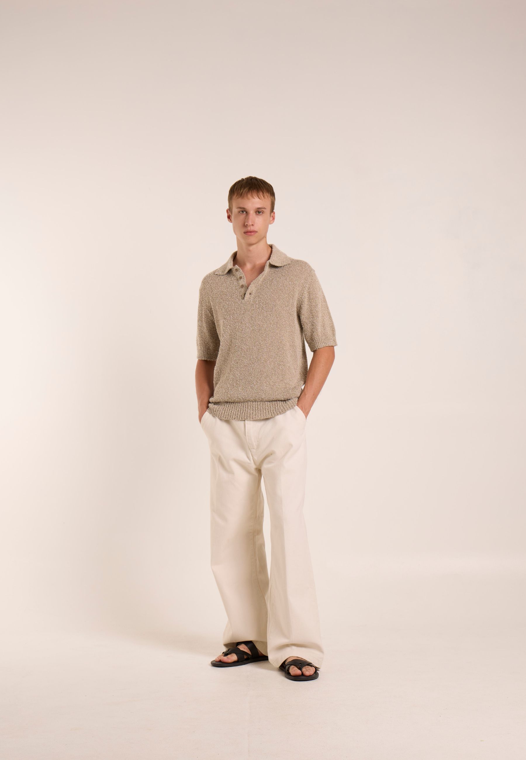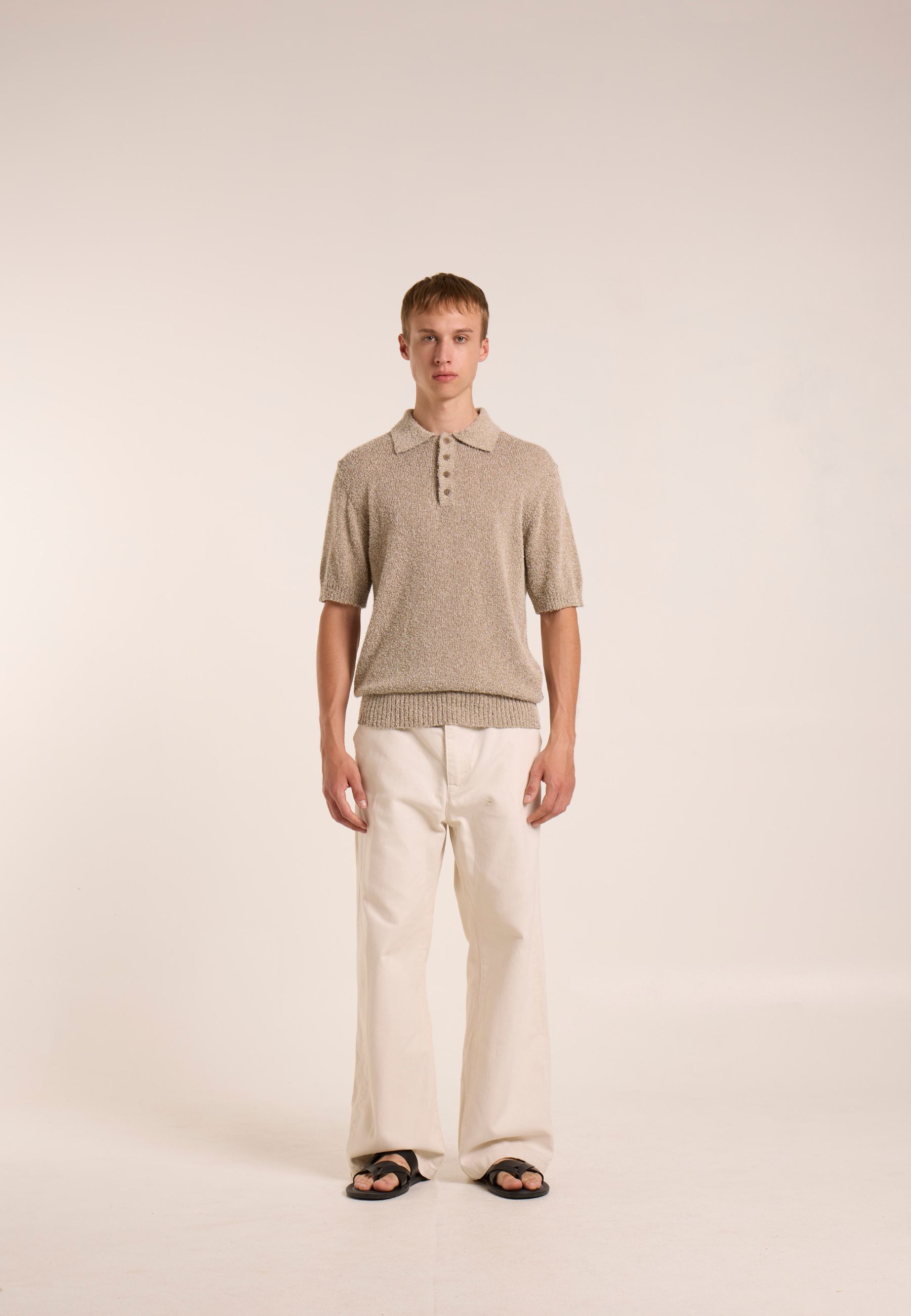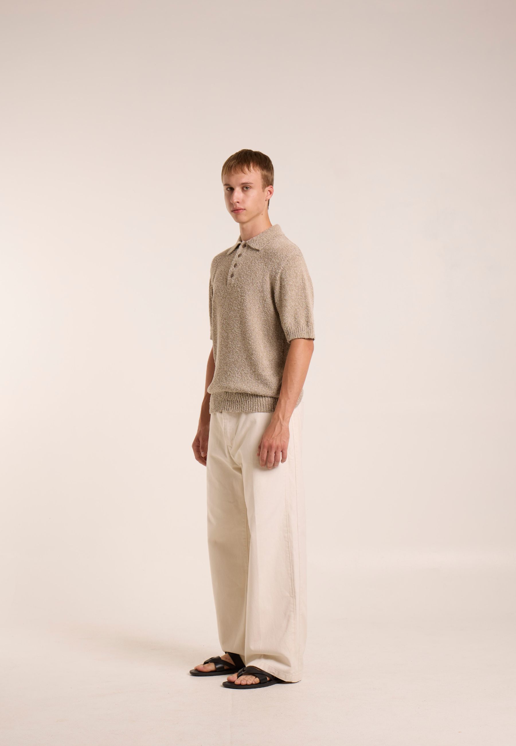 Polo a maniche corte realizzata in filato mercerizzato, caratterizzata da una superficie compatta, luminosa e particolarmente morbida al tatto. Il trattamento di mercerizzazione conferisce al capo maggiore resistenza, stabilità e una finitura raffinata.