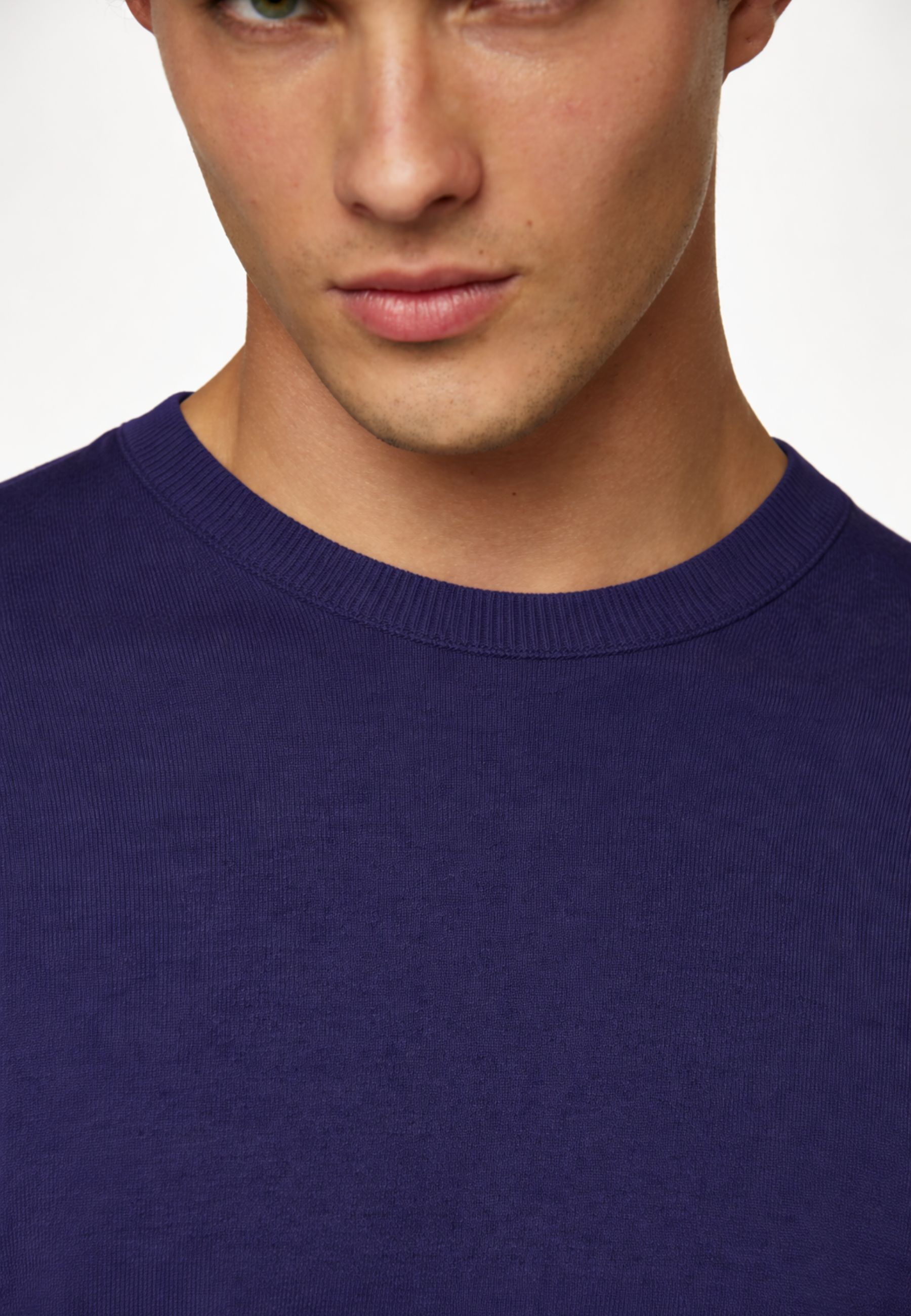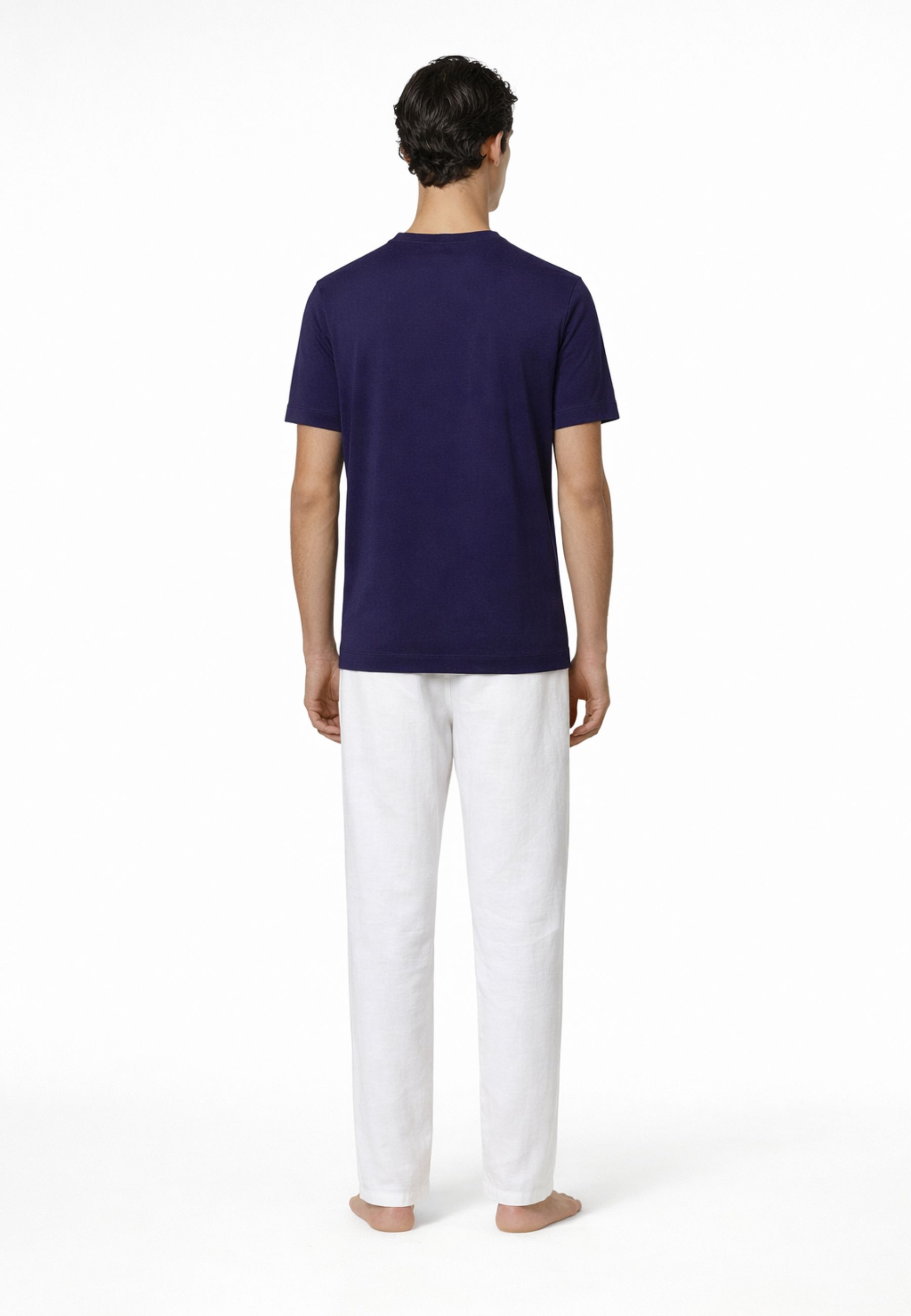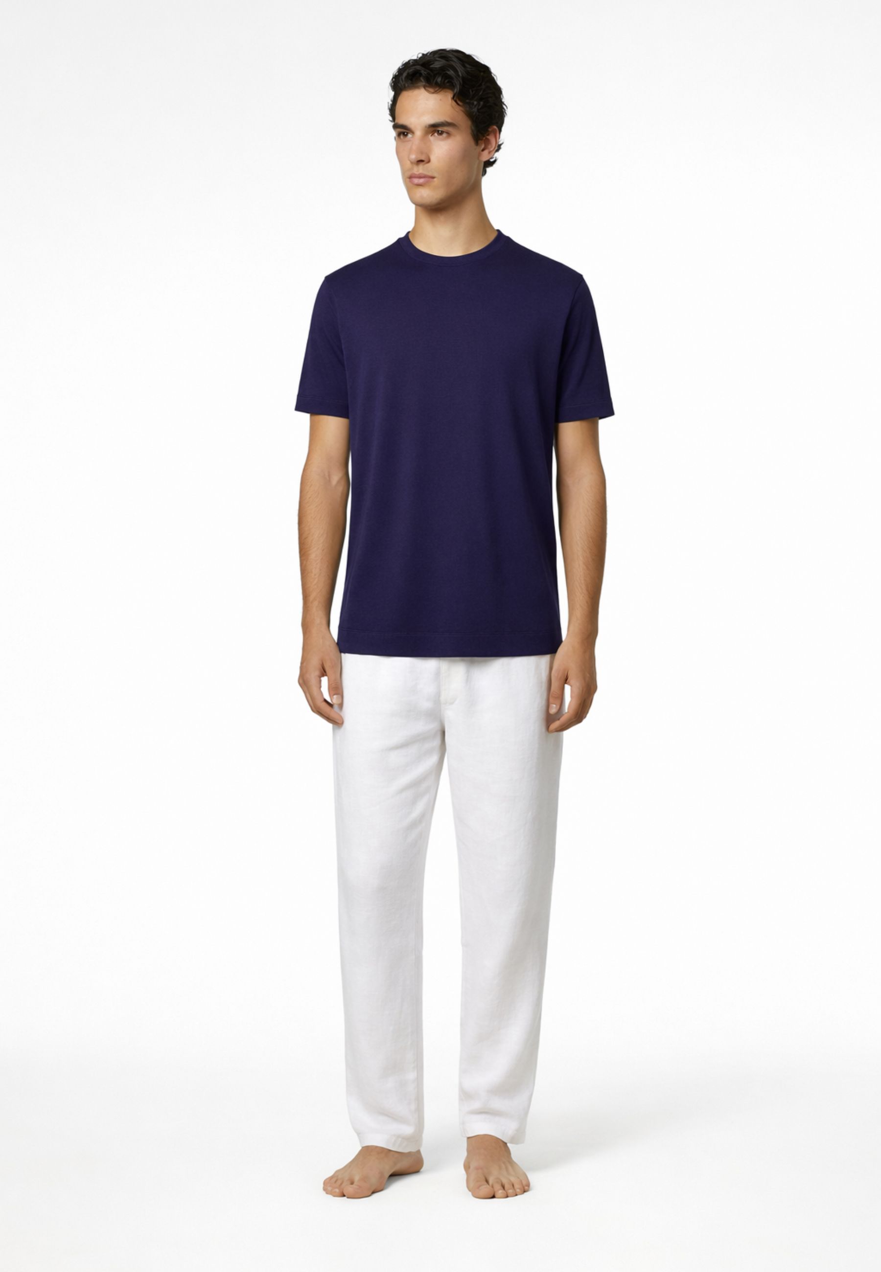 T-shirt girocollo realizzata in pregiato 100% cotone con lavorazione crepe, caratterizzata da una texture leggermente mossa e raffinata al tatto. Il tessuto risulta leggero, traspirante e confortevole sulla pelle, ideale per la stagione primavera/estate.