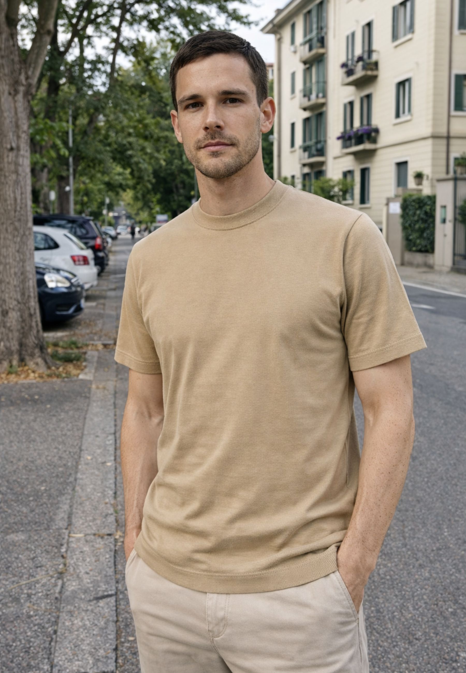 Un basico premium, pensato per un guardaroba maschile raffinato e versatile, in perfetto equilibrio tra eleganza e quotidianità.