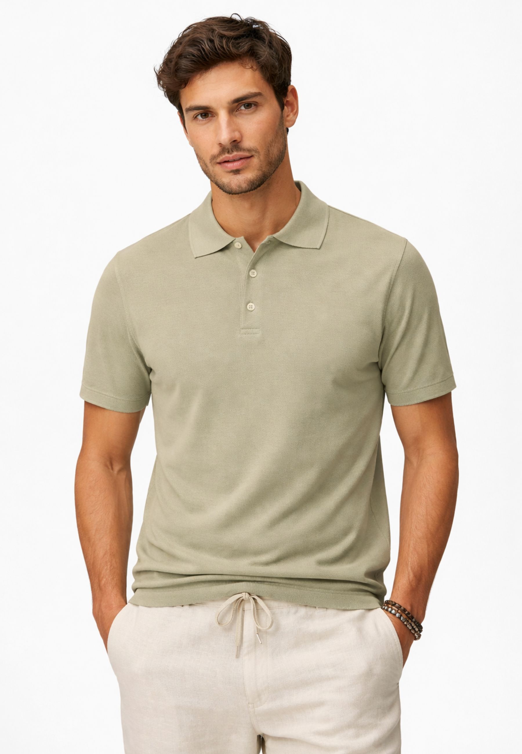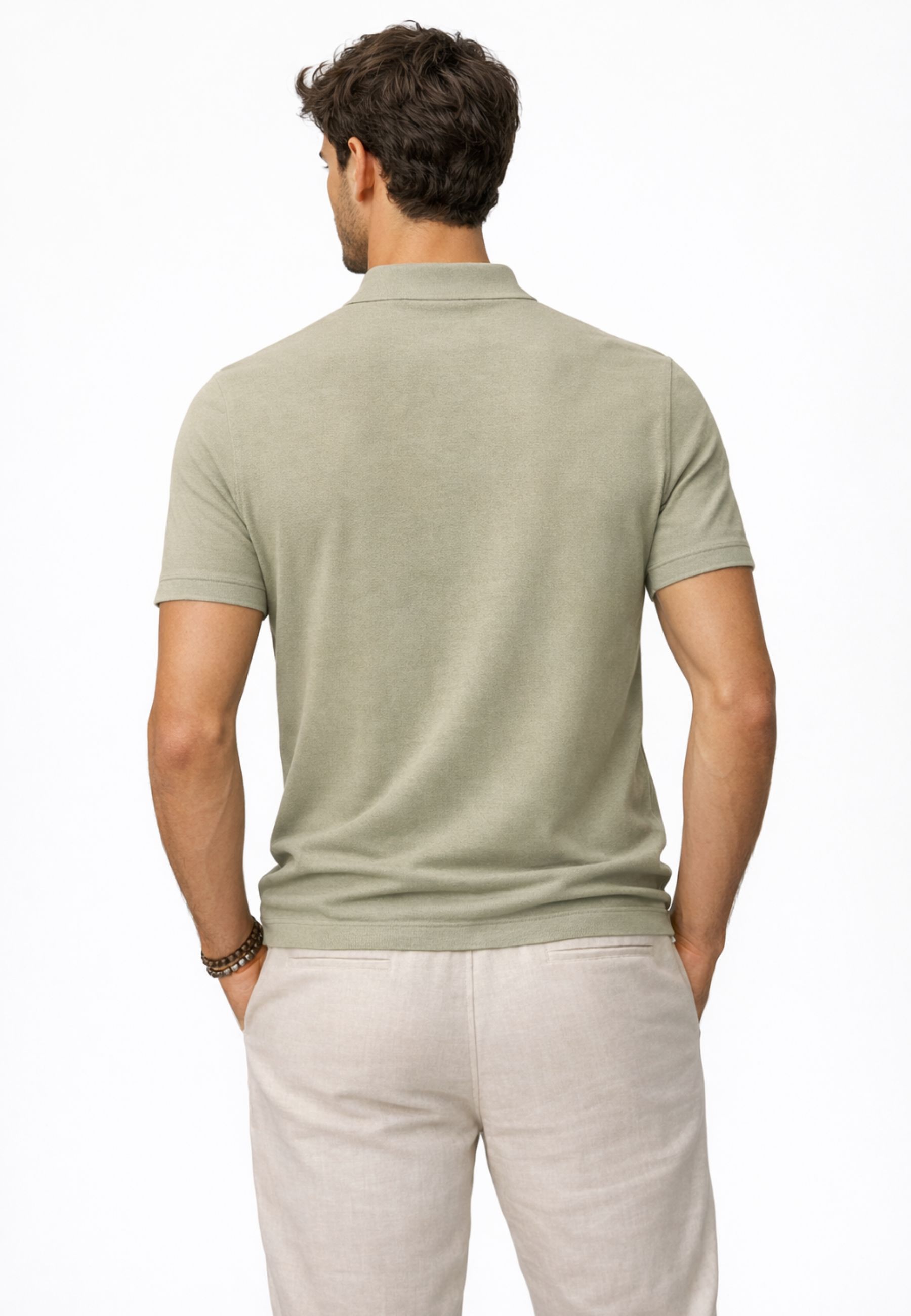 Il filato dry, composto da 100% cotone Long Staple ad alte torsioni con filatura compact, assicura resistenza, traspirabilità e unelevata tenuta nel tempo, riducendo la formazione di pilling e mantenendo inalterata la struttura del capo.