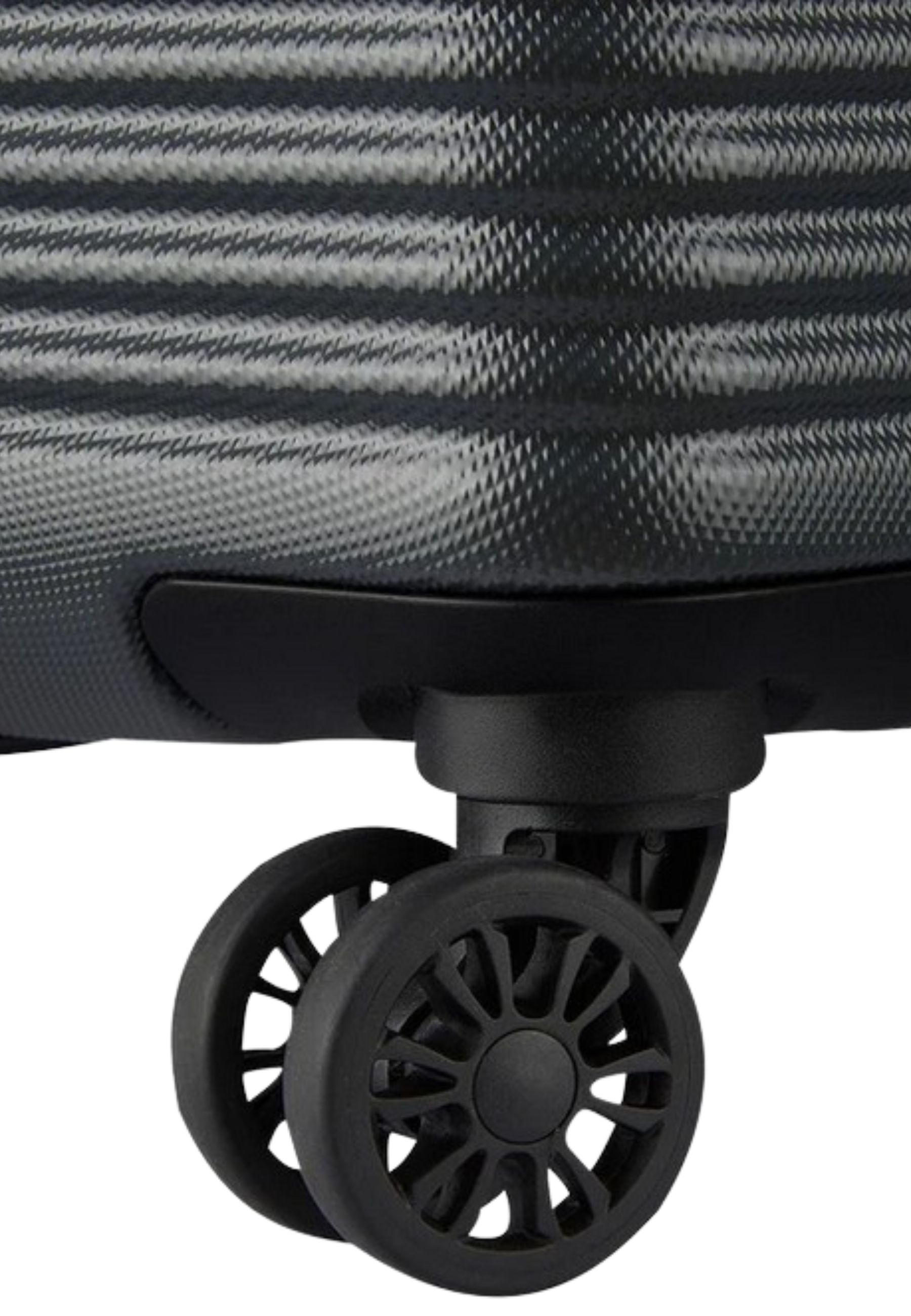 Quattro ruote doppie maneggevoli e silenziose, maniglia retrattile e maniglia laterale per un facile trasporto dei bagagli.