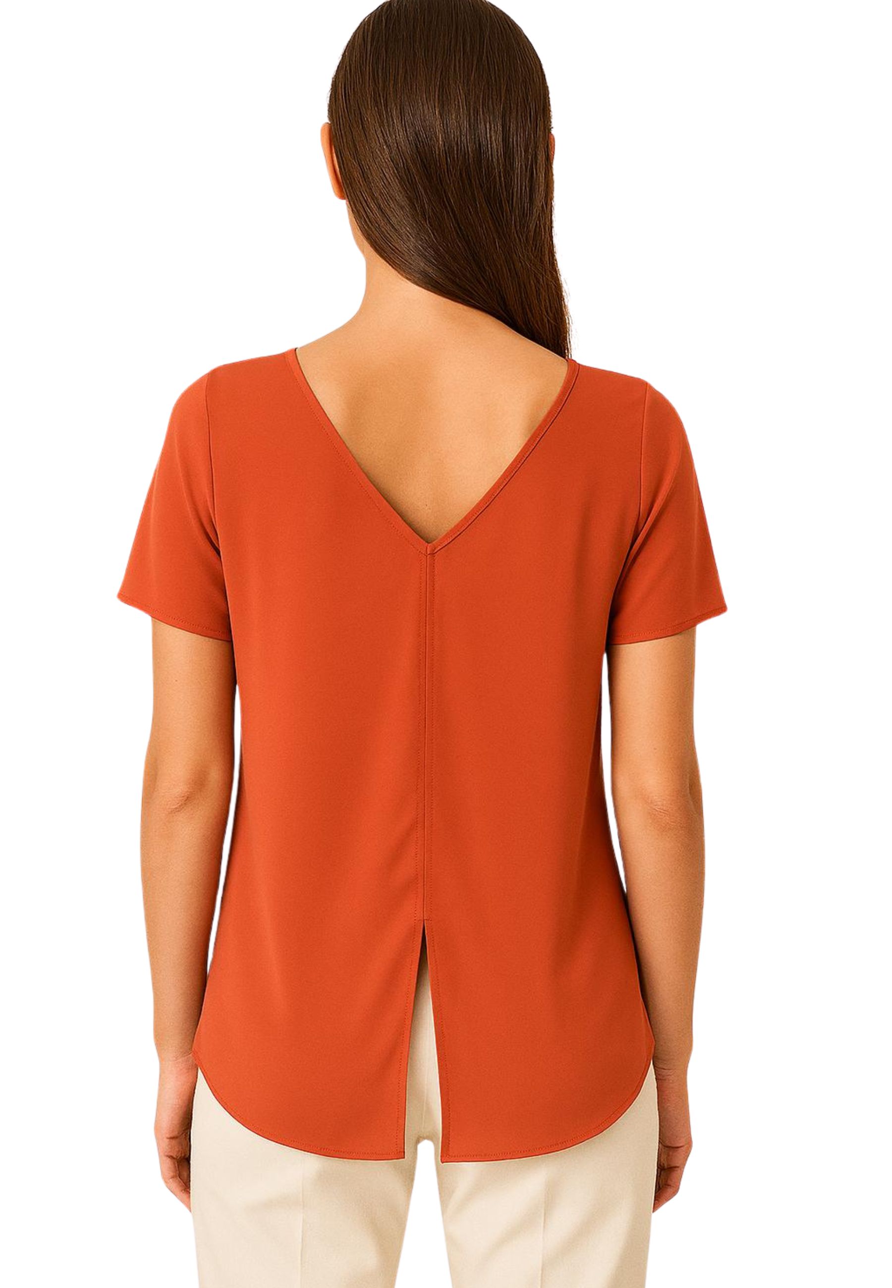 Questa t-shirt firmata DonnaG unisce eleganza minimal e praticità quotidiana. Realizzata in un tessuto fluido e leggero, si distingue per il suo taglio morbido e la linea scivolata sul corpo. Il design posteriore presenta un dettaglio a spacco verticale che dona movimento e un tocco moderno al capo. Il colore arancio bruciato esalta labbronzatura estiva, rendendola perfetta sia per look casual che più curati. Ideale da abbinare a jeans o pantaloni sartoriali per uno stile raffinato ma comodo.