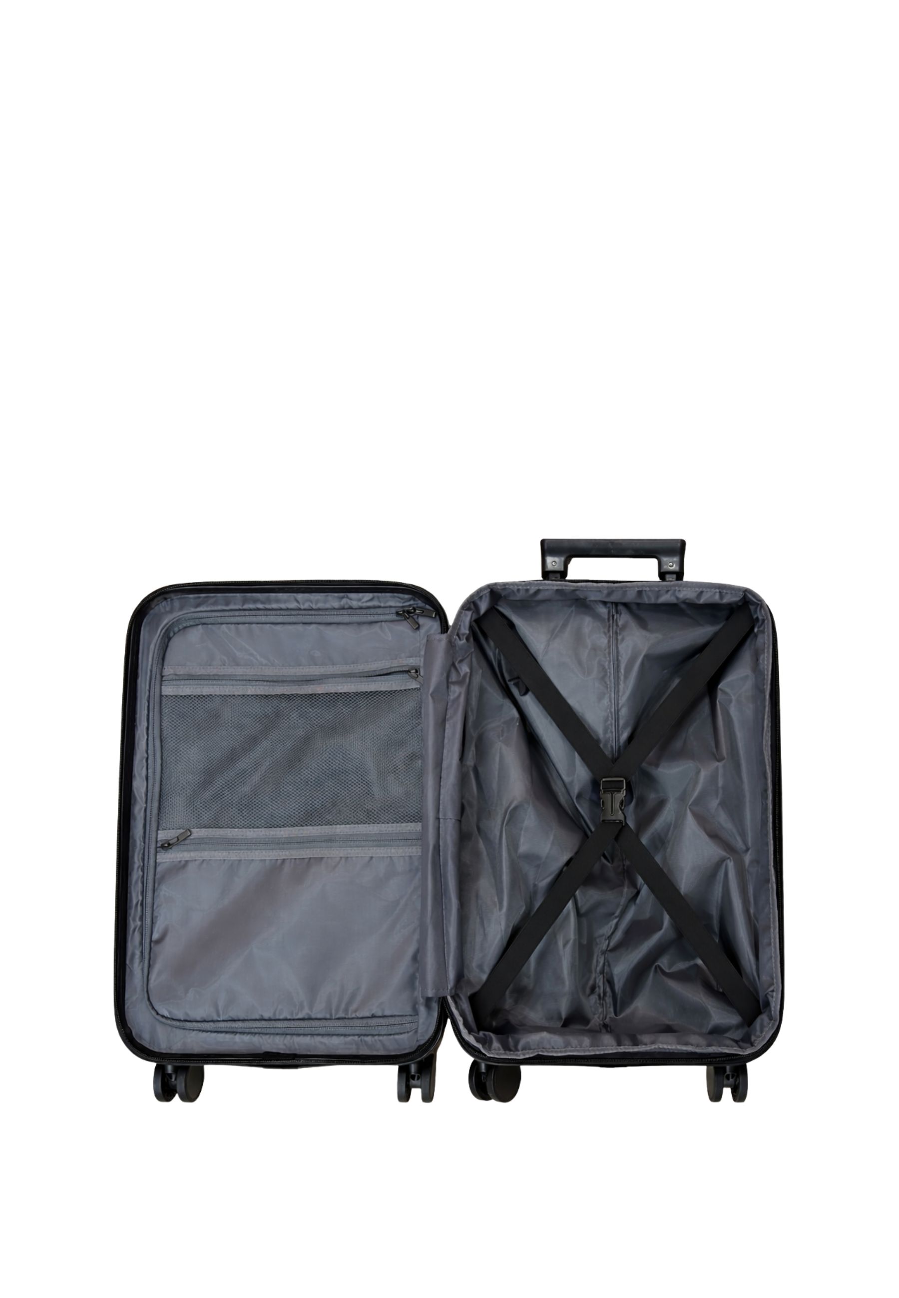 Trolley compatto a quattro ruote, progettato per viaggi brevi e trasferte business. Struttura rigida (hardshell) resistente agli urti e alle sollecitazioni, con design pulito e funzionale nel colore Nero.