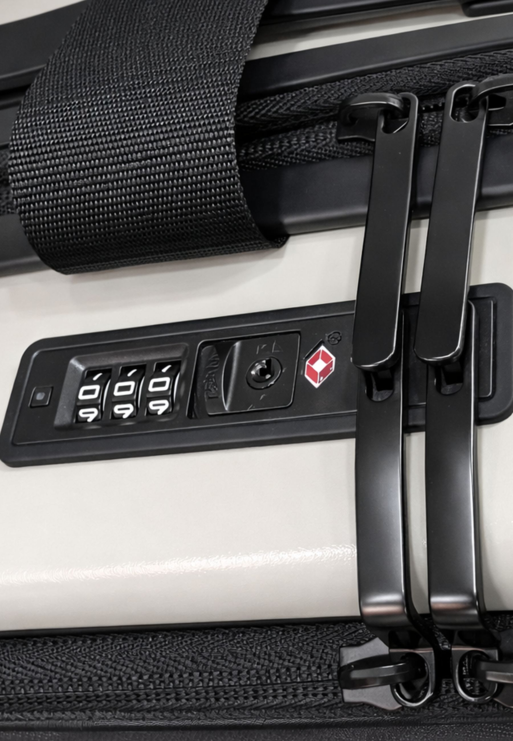 La parte frontale integra una pratica tasca in softshell con chiusura a cerniera, facilmente accessibile per documenti, tablet o oggetti di uso frequente. La serratura con sistema TSA (Travel Sentry® Approved) consente ispezioni di sicurezza senza danneggiamenti, garantendo al contempo protezione del contenuto.