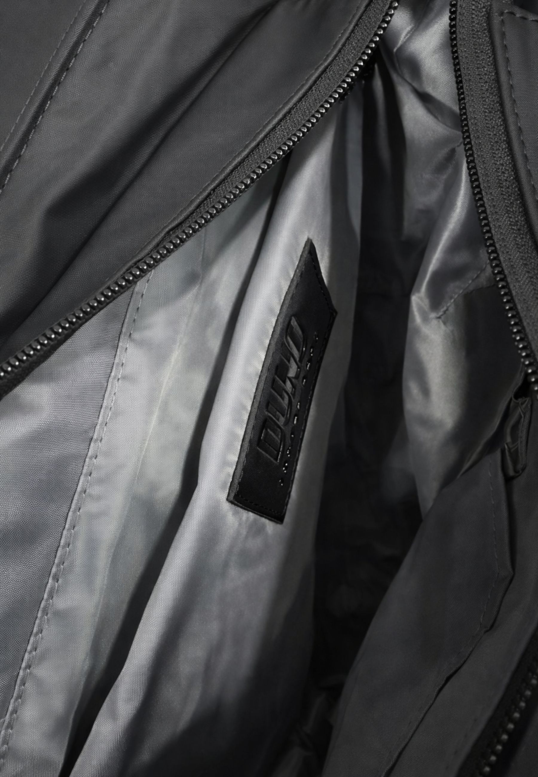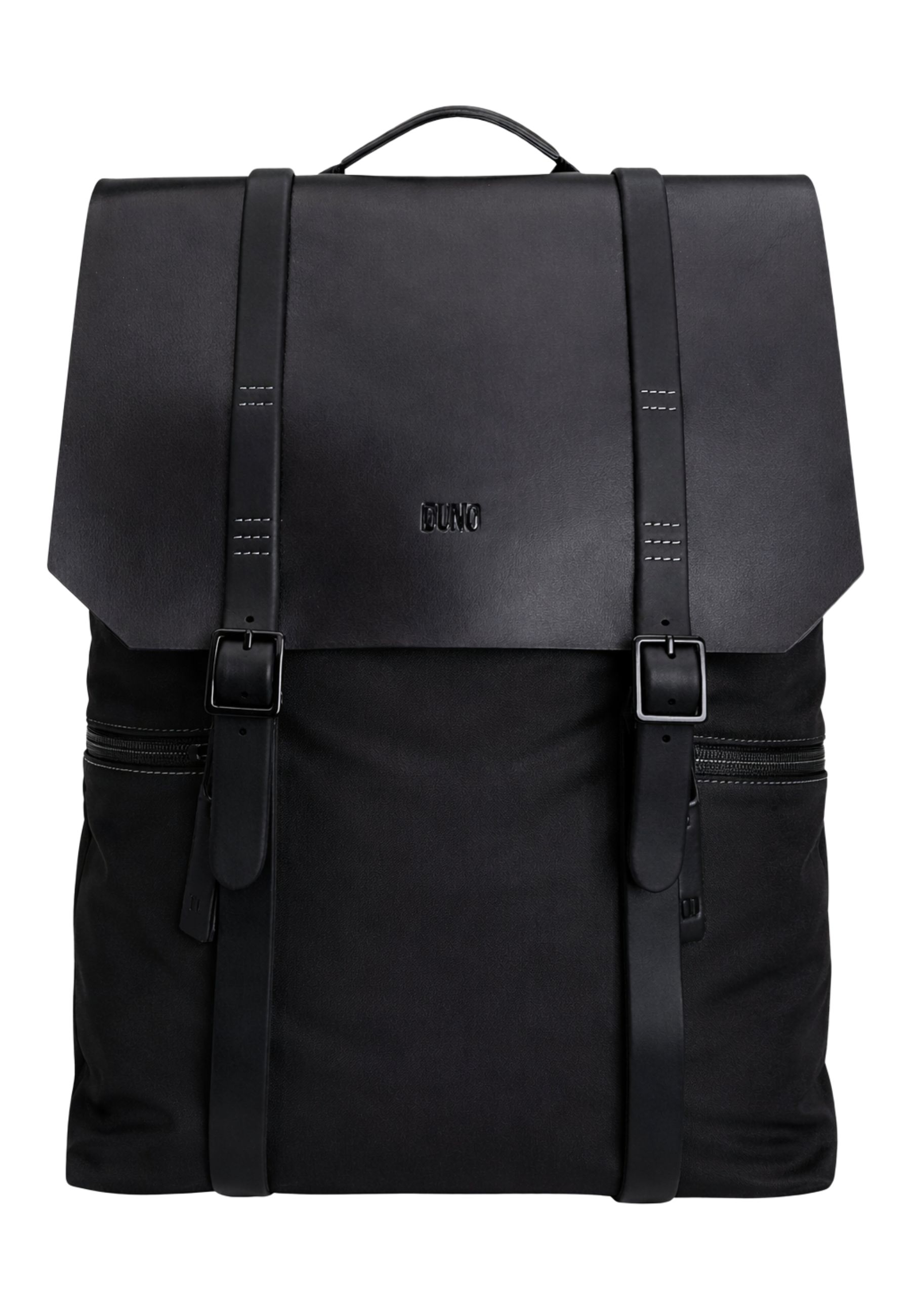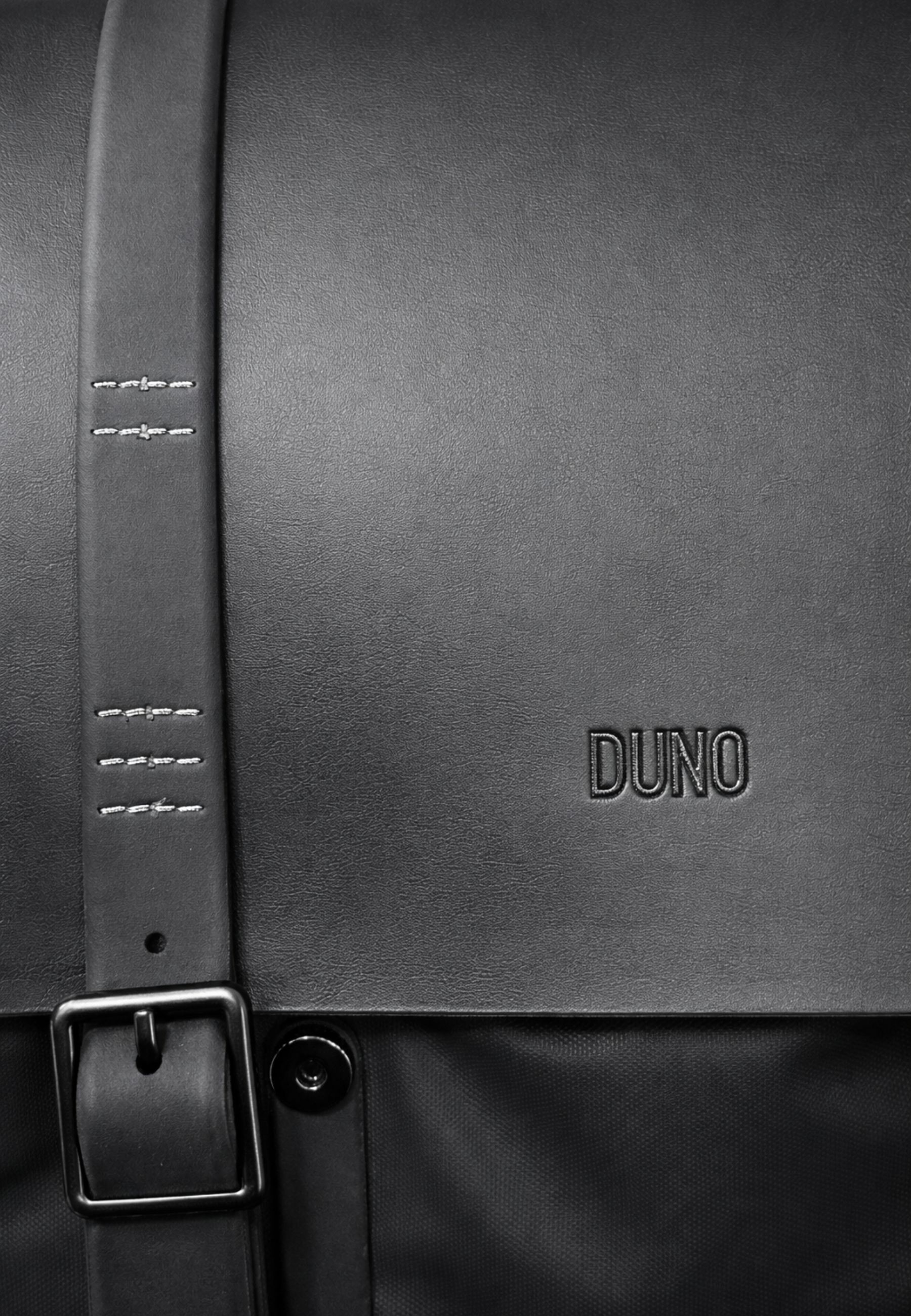 Zaino dal design essenziale e contemporaneo, ideale per utilizzo urbano e professionale. Linea strutturata con patta superiore e chiusura frontale con cinturino regolabile e fibbia in metallo nero opaco. Logo DUNO tono su tono applicato sulla patta.