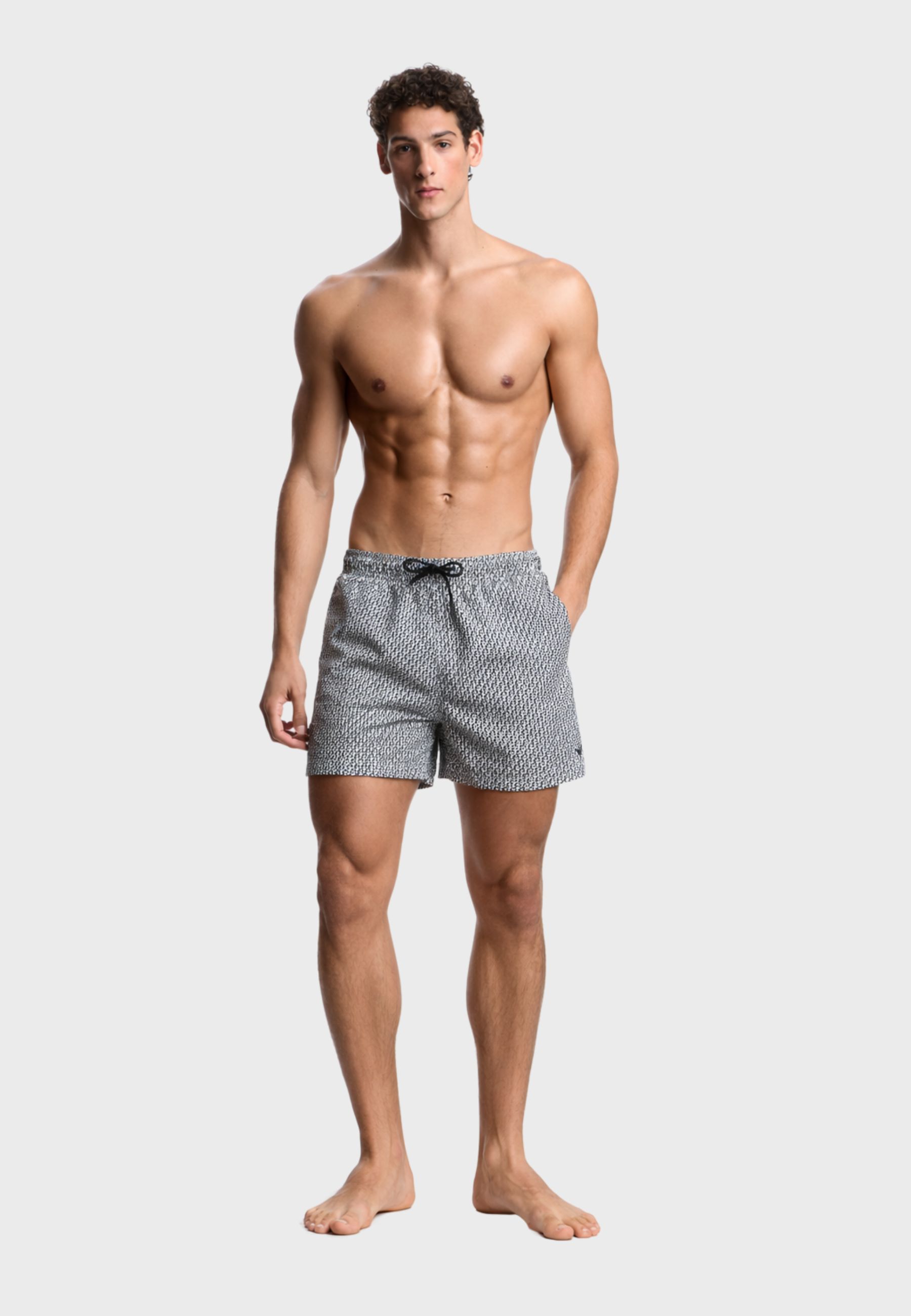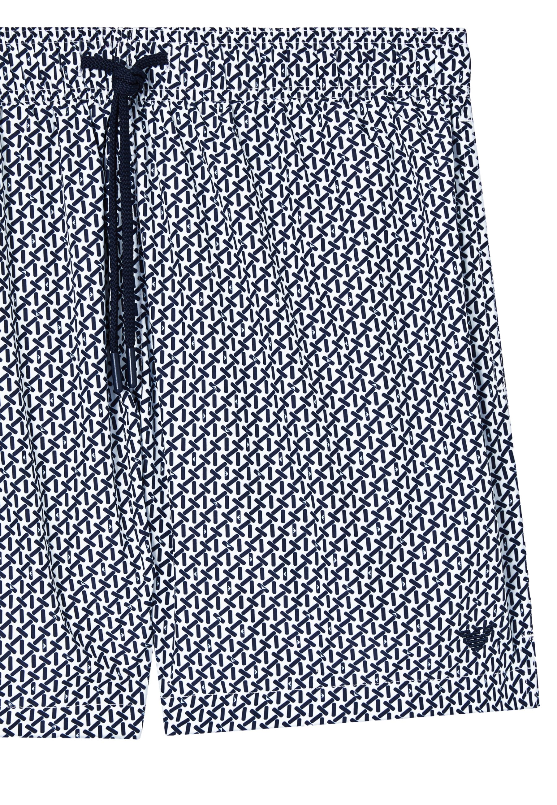 Costume da bagno modello shorts caratterizzato da stampa decorativa all over che dona al capo unestetica dinamica e ricercata. Il design è completato dal ricamo micro aquila, dettaglio distintivo che conferisce un tocco iconico e riconoscibile.