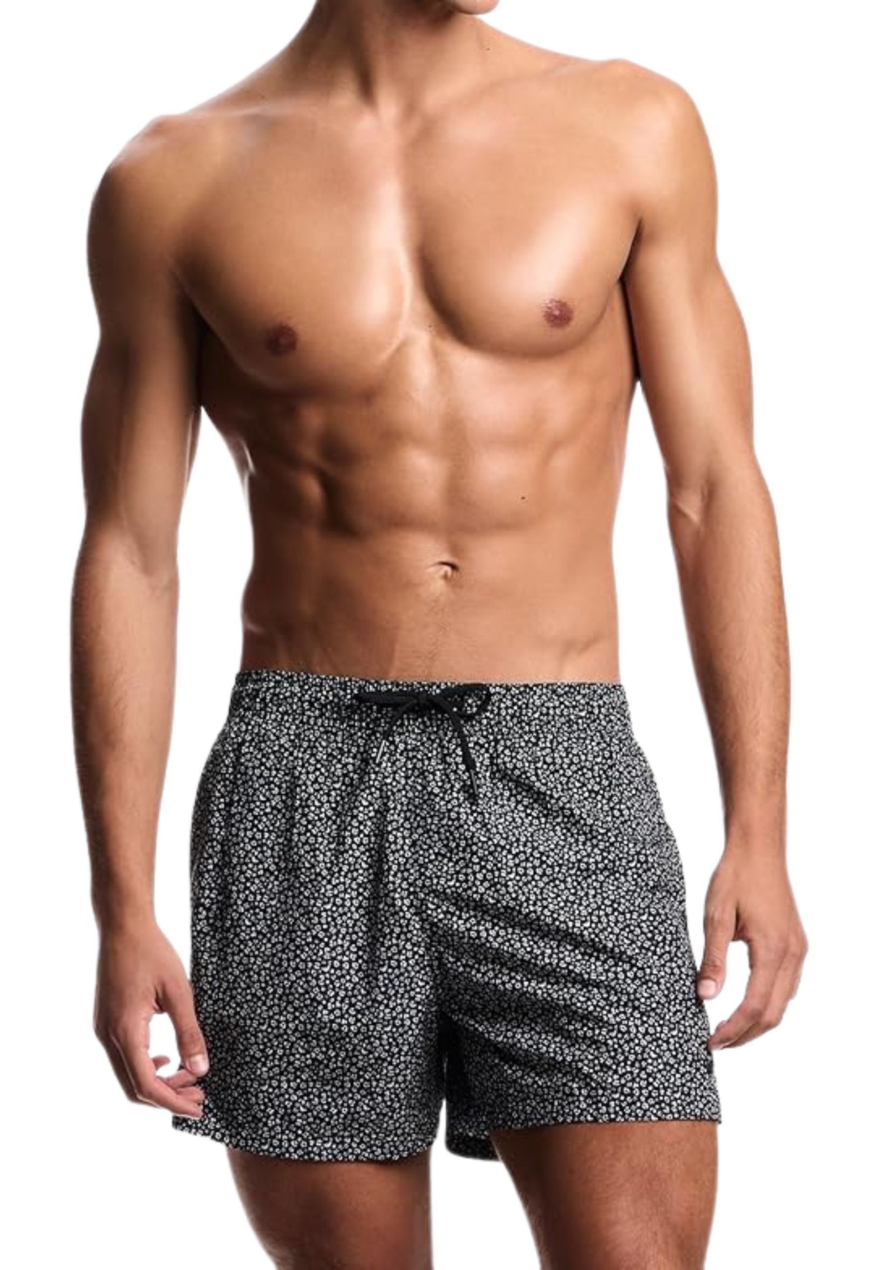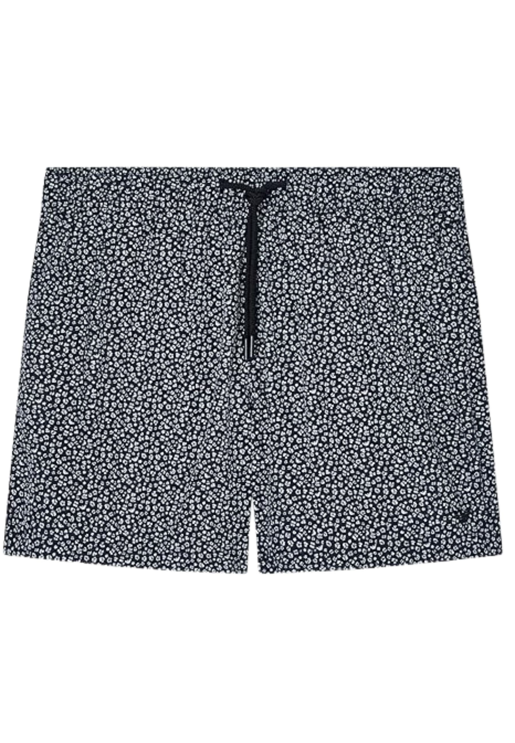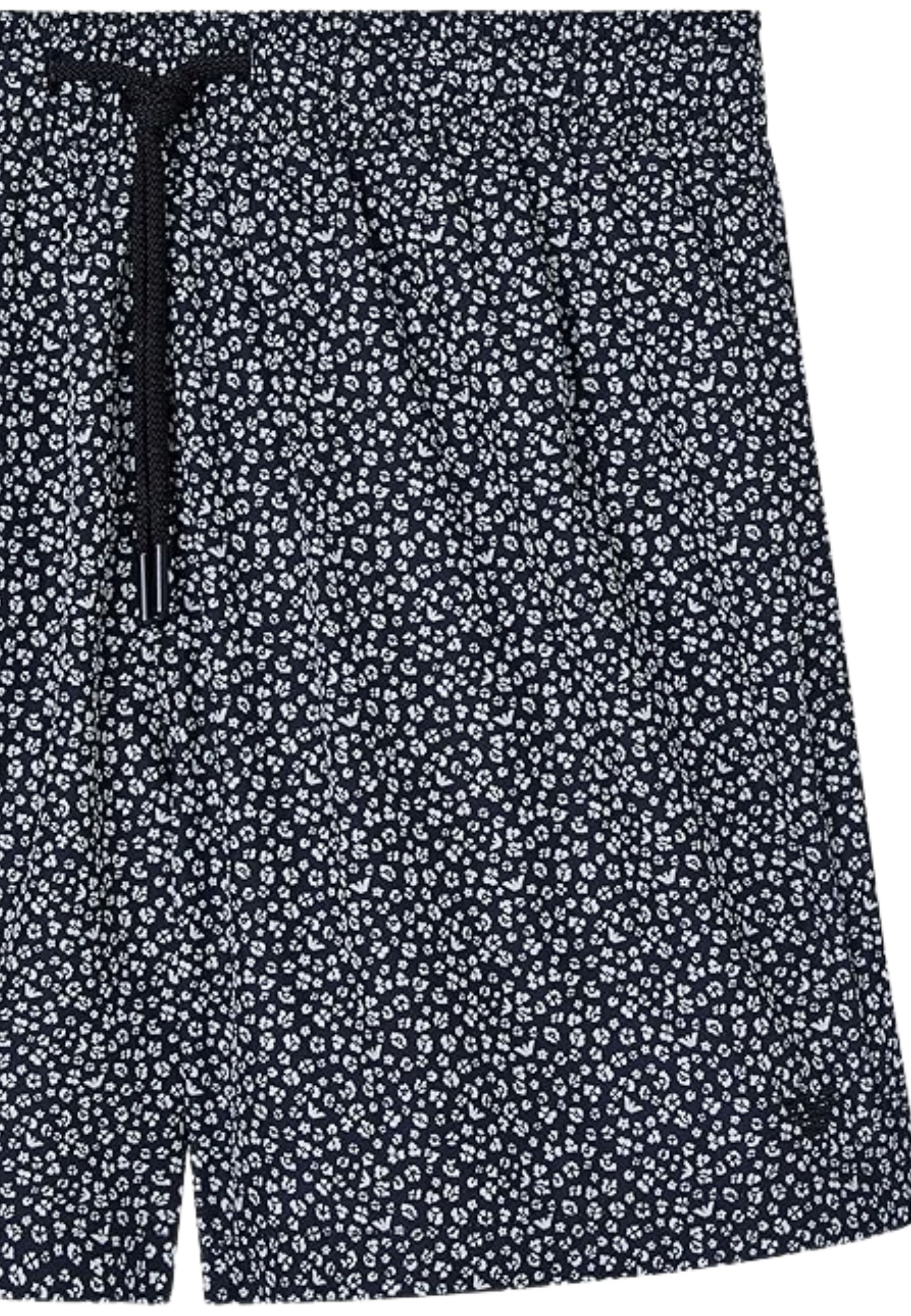 Boxer mare Emporio Armani caratterizzato da una sofisticata stampa micro floreale bianco su fondo nero, perfetta per uno stile estivo distintivo e contemporaneo. Il design è impreziosito da chiusura frontale con zip e linea essenziale, in piena estetica minimal del brand.