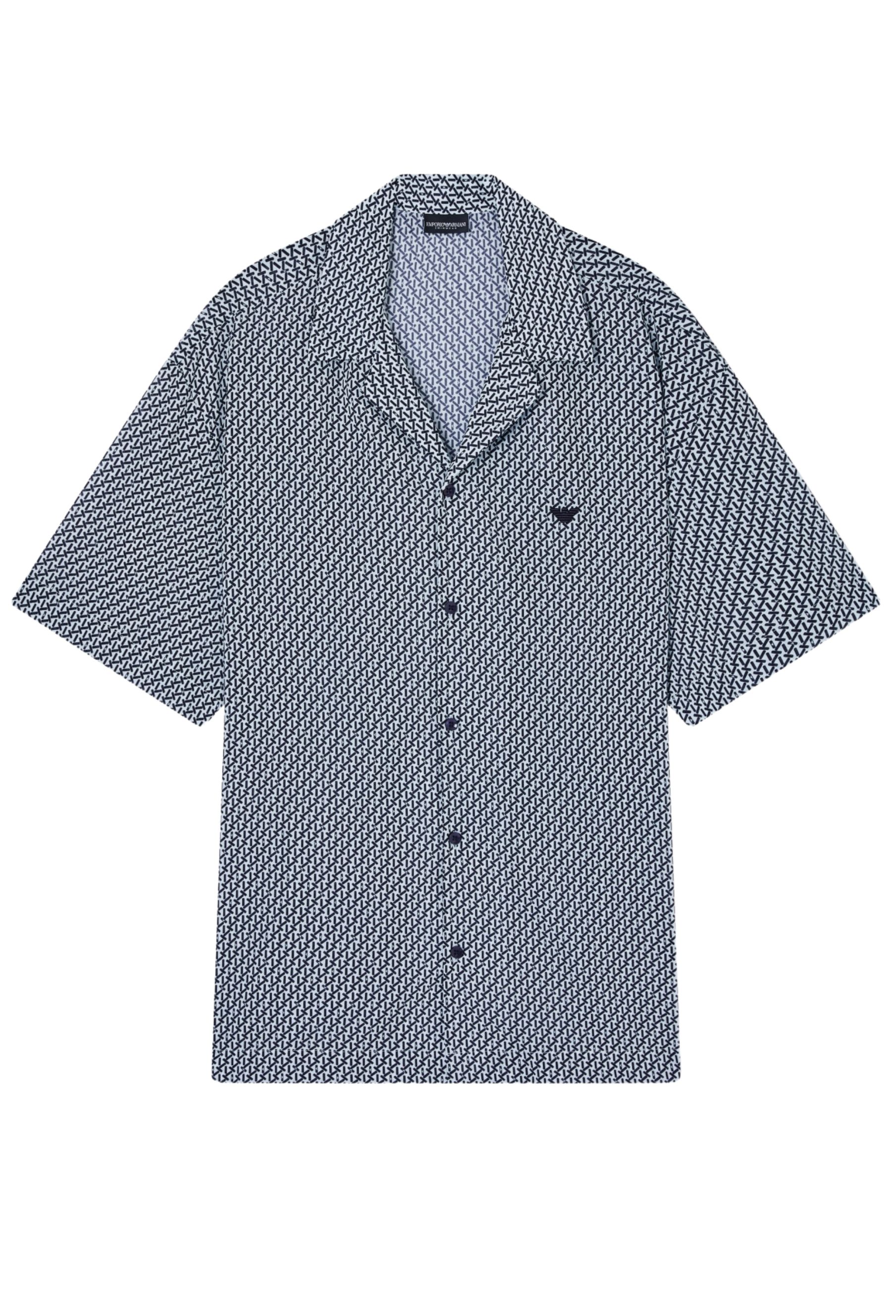Camicia beachwear in puro cotone caratterizzata da stampa decorativa all over dal forte impatto grafico. Il design con scollo a rever richiama lestetica resort, conferendo al capo unallure rilassata ma curata, ideale per la stagione estiva.