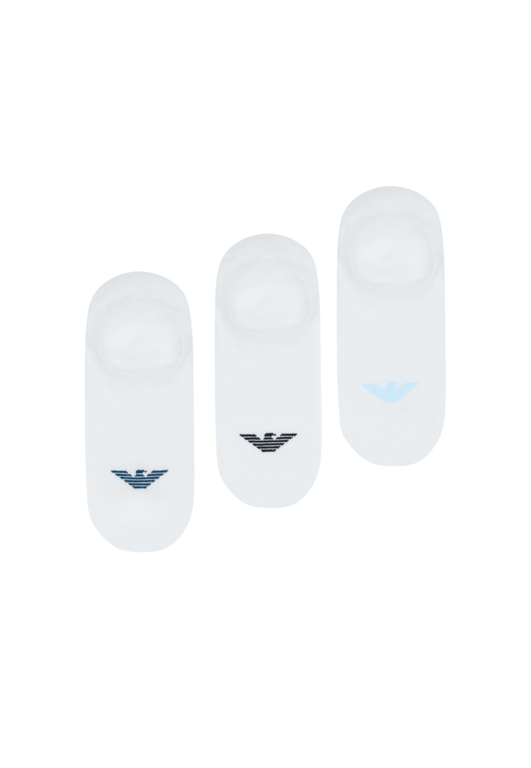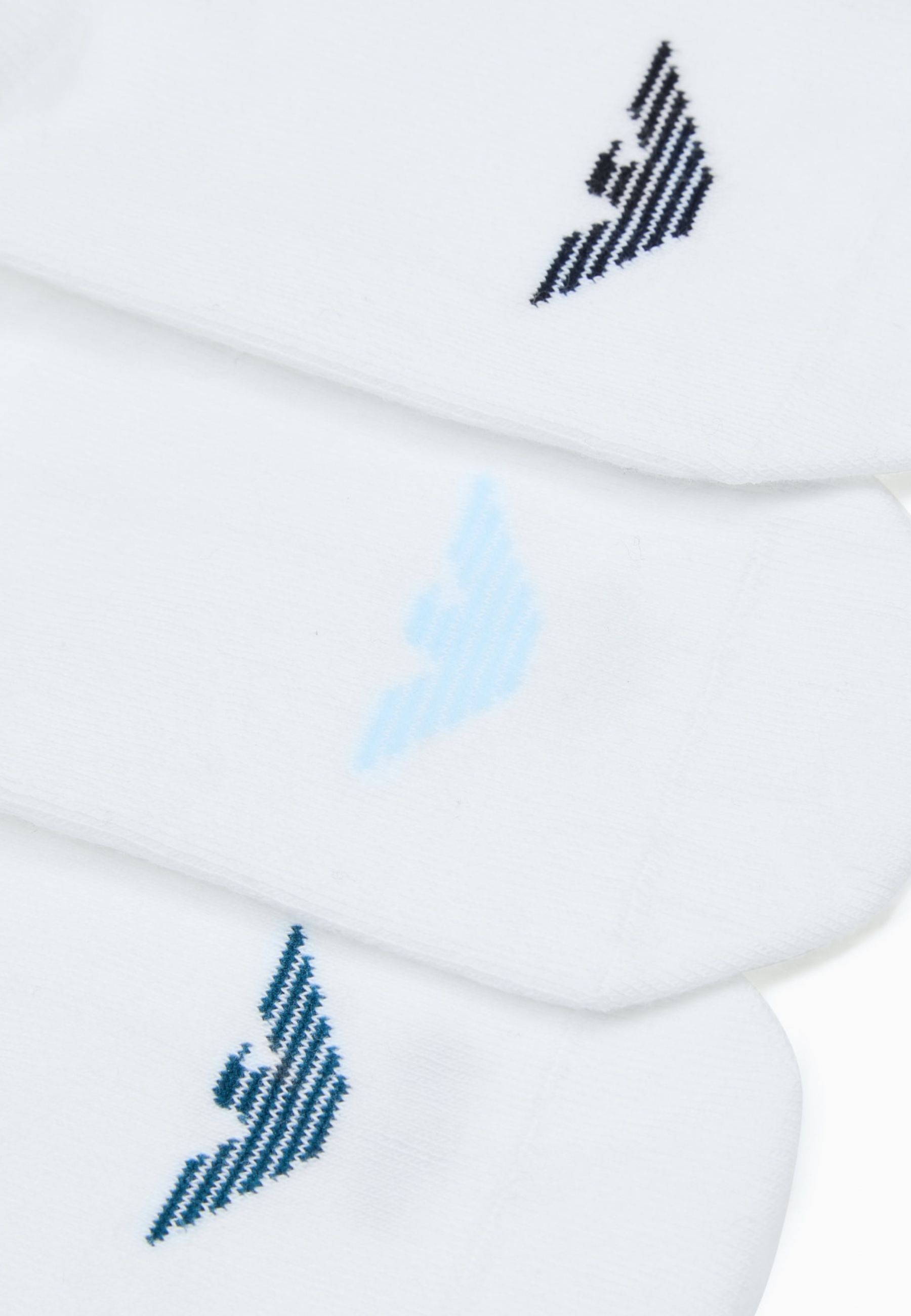 Set composto da tre paia di fantasmini in cotone stretch, caratterizzati dalliconica aquila Emporio Armani realizzata con lavorazione jacquard. Design essenziale e profilo invisibile, ideali per essere indossati con sneaker e calzature basse.