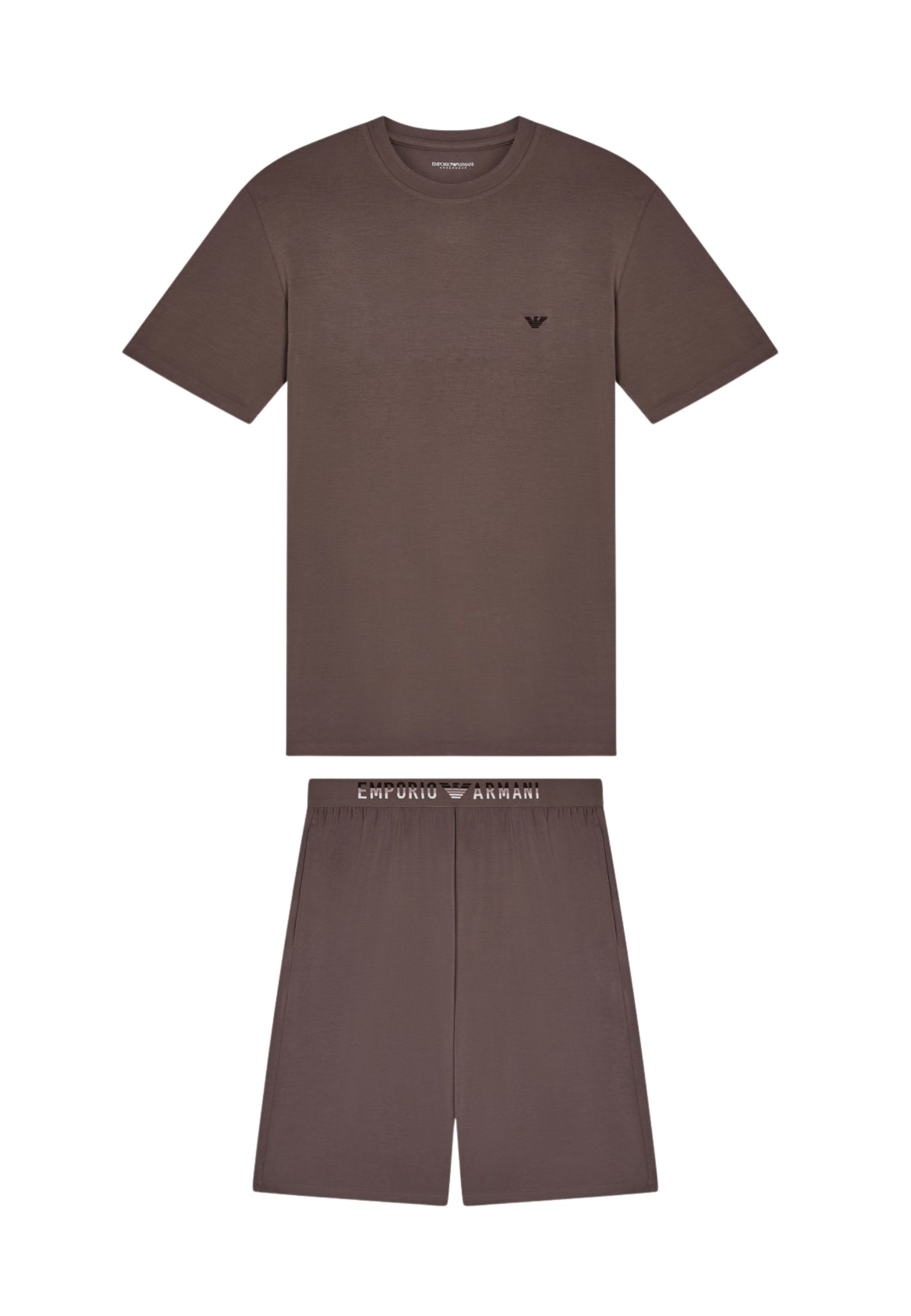 Il completo è composto da T-shirt girocollo con micro aquila ricamata sul petto e bermuda con vita elastica logata, che assicura una tenuta confortevole e stabile.