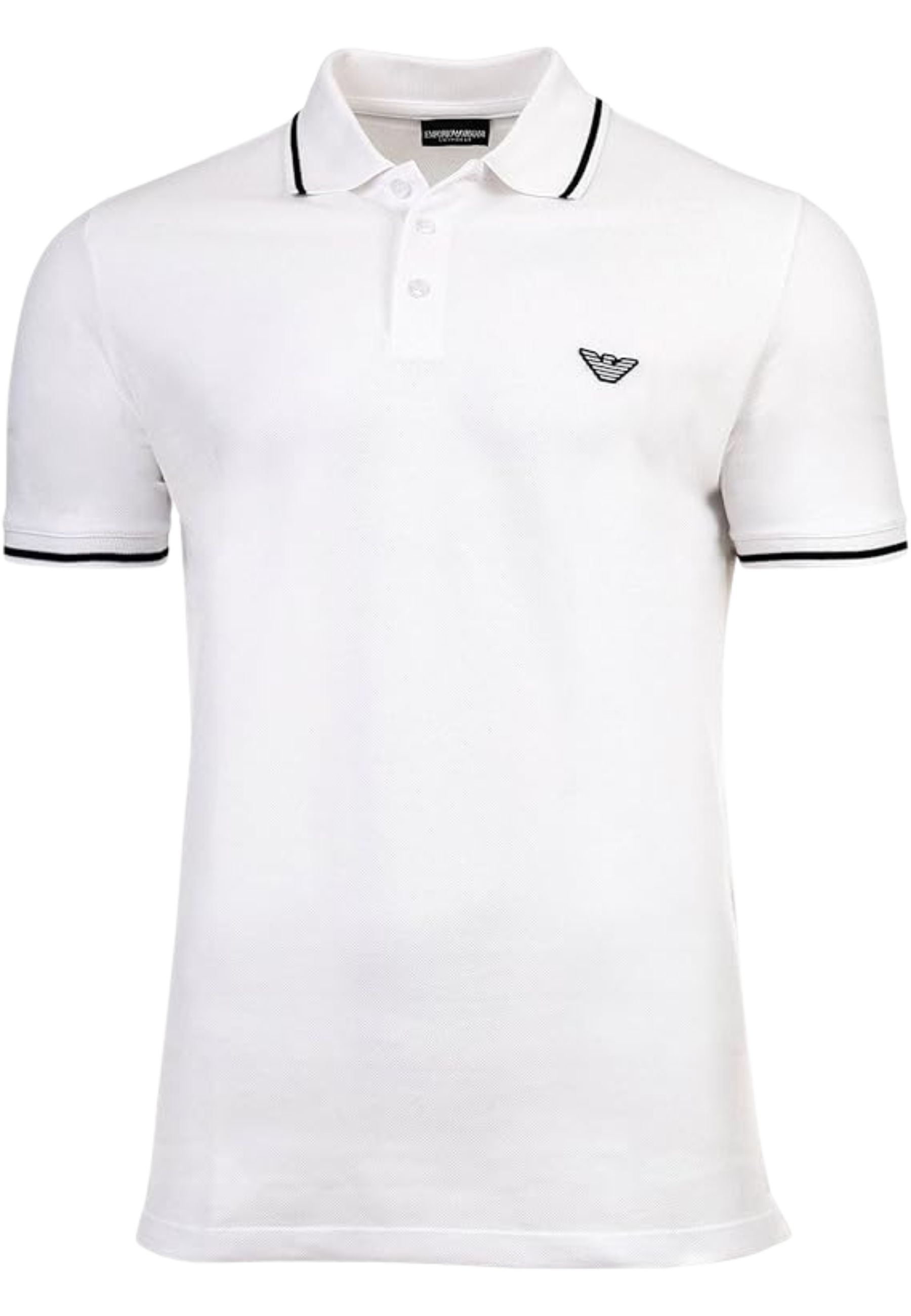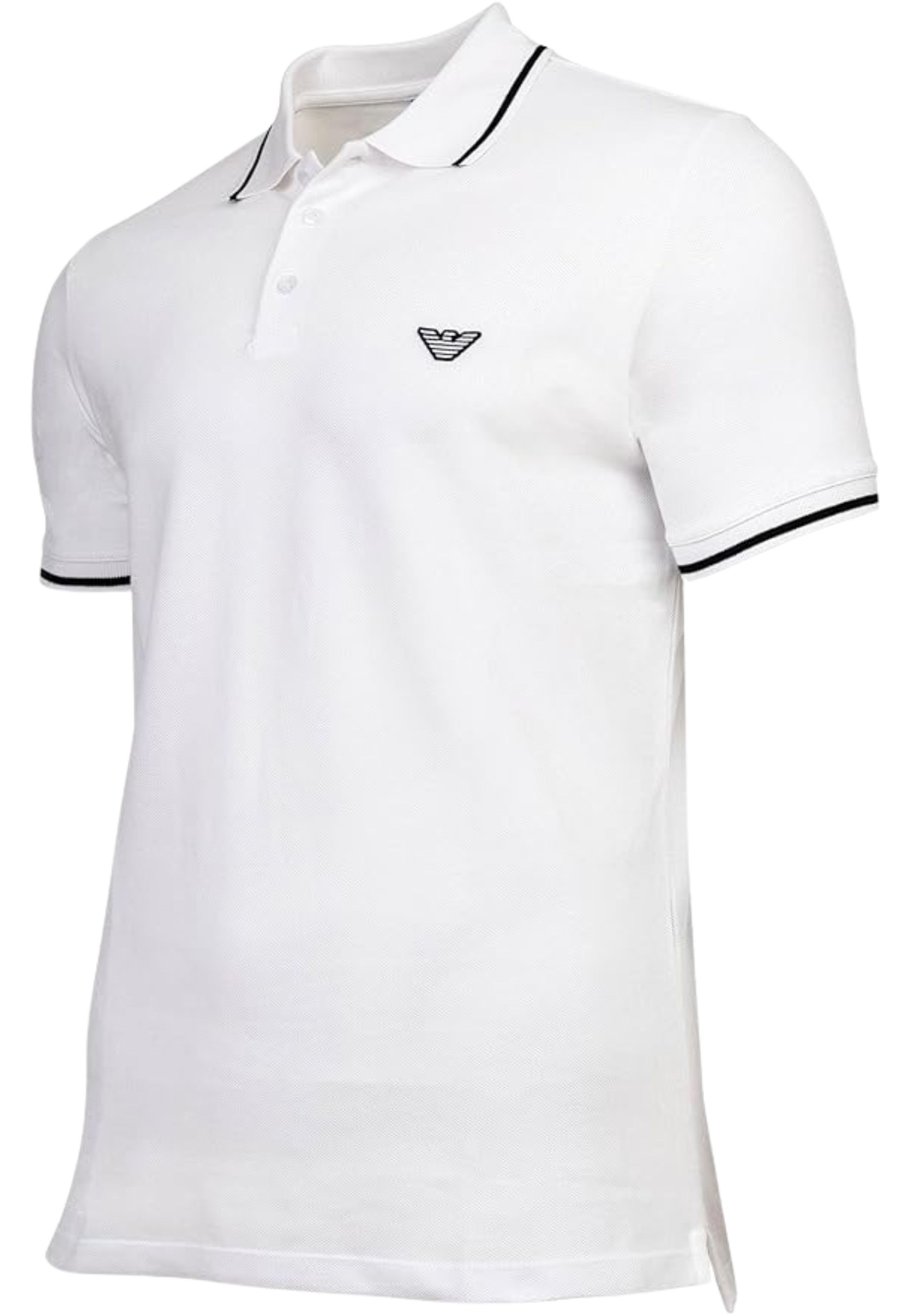 Modello a manica corta con colletto classico e chiusura a tre bottoni. Il design è valorizzato dai profili a contrasto su colletto e maniche, dettaglio che conferisce un tocco moderno e distintivo. Logo aquila ricamato sul petto, simbolo iconico del brand.