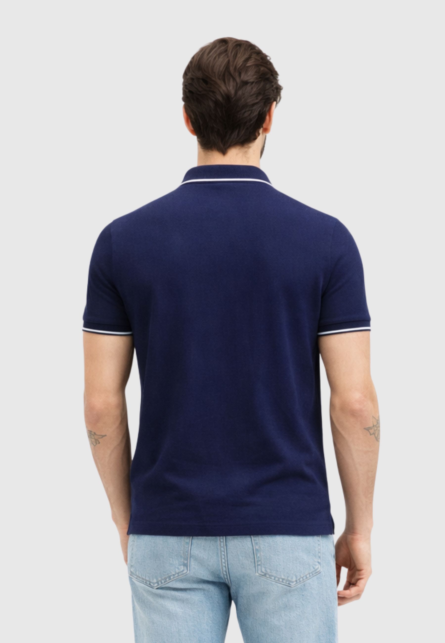 Polo Emporio Armani dal design essenziale e raffinato, realizzata in cotone piqué per garantire traspirabilità e comfort durante tutta la giornata. Il modello presenta colletto classico con abbottonatura a tre bottoni e profili a contrasto su colletto e maniche, dettaglio che aggiunge un tocco distintivo allo stile.