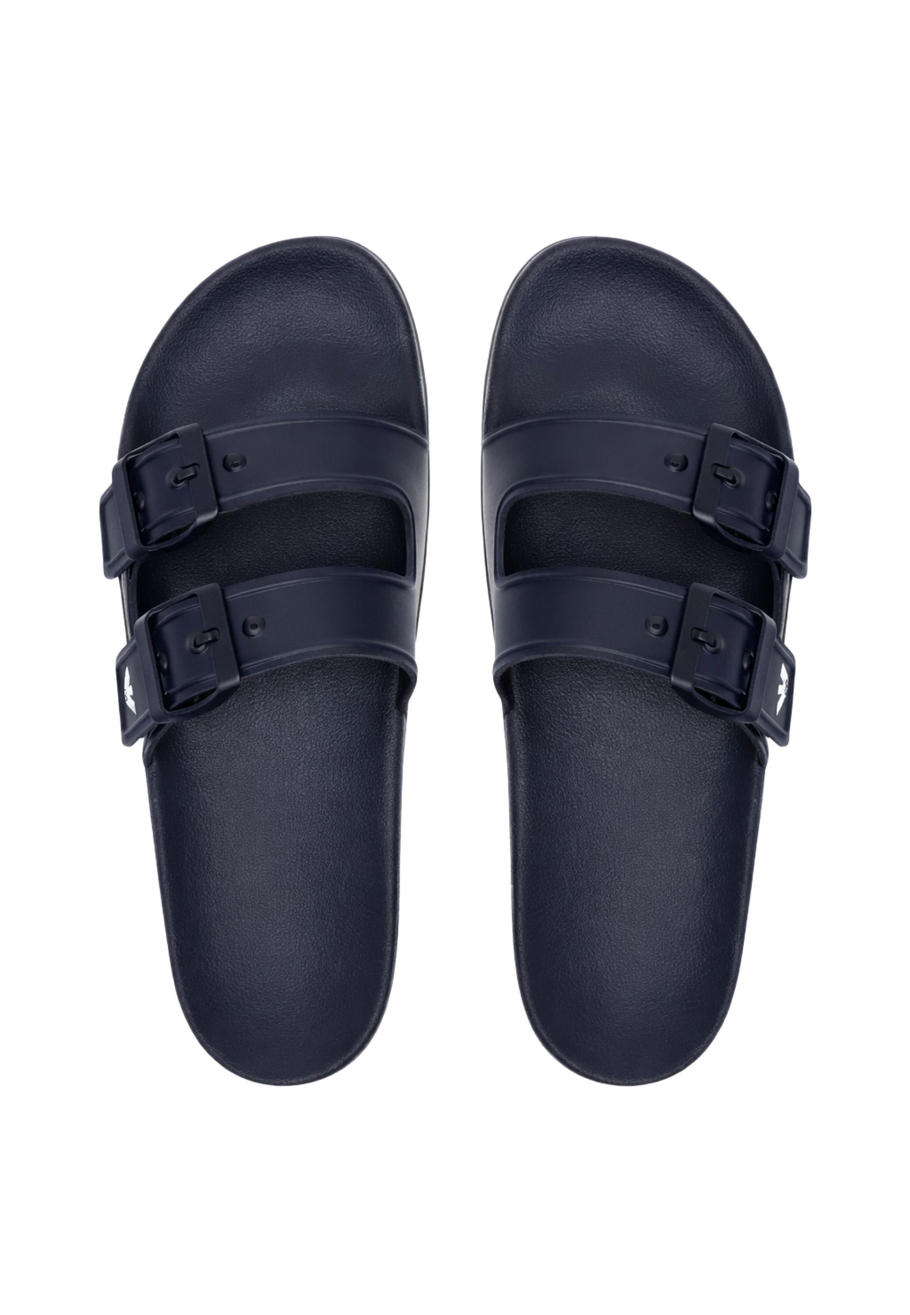 Modello slide a doppia fascia regolabile, caratterizzato da design essenziale e struttura monocromatica. Le due fibbie tono su tono consentono una regolazione personalizzata della calzata, garantendo stabilità e comfort durante l?utilizzo quotidiano.