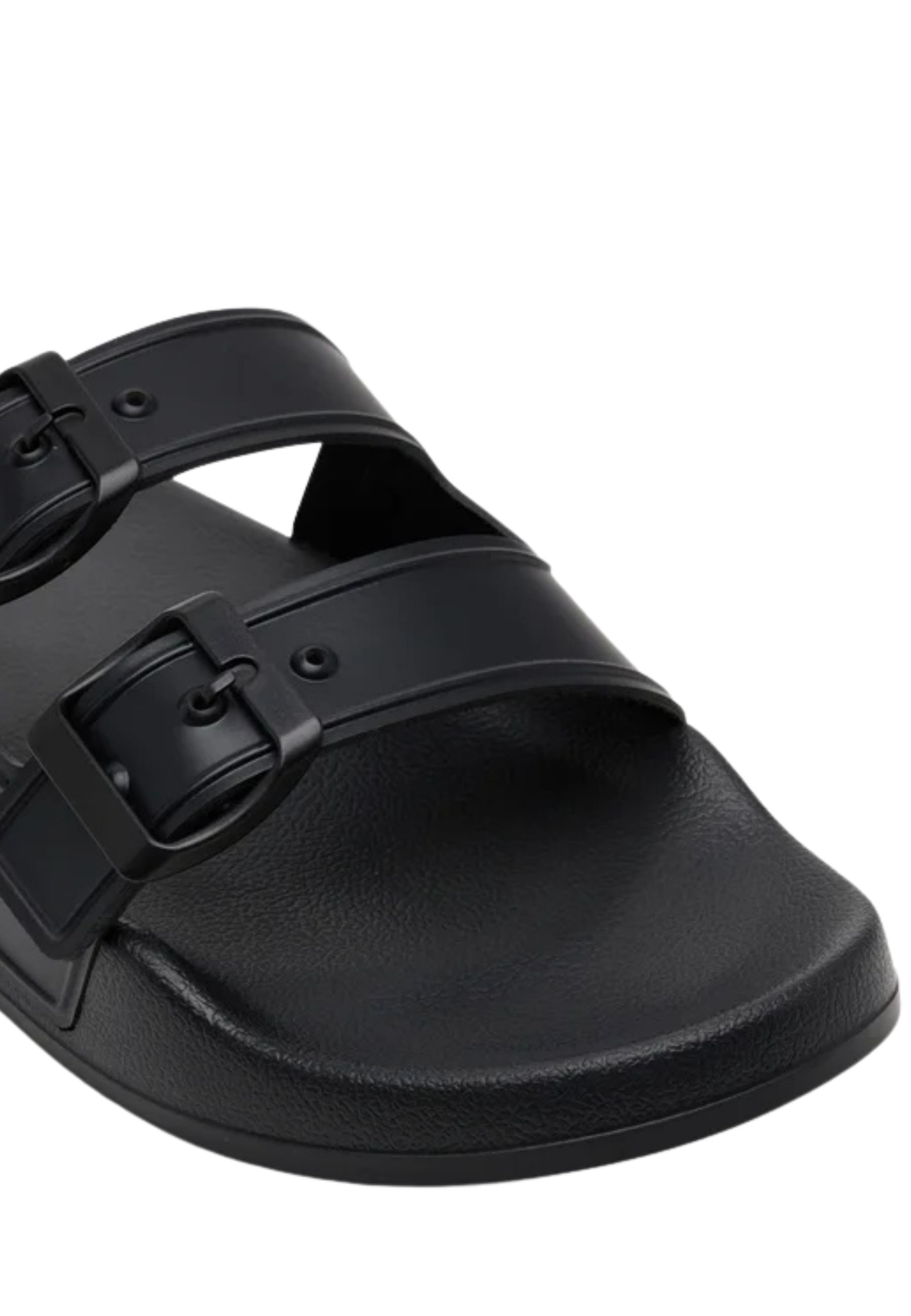 Modello slide a doppia fascia regolabile, caratterizzato da design essenziale e struttura monocromatica. Le due fibbie tono su tono consentono una regolazione personalizzata della calzata, garantendo stabilità e comfort durante lutilizzo quotidiano.