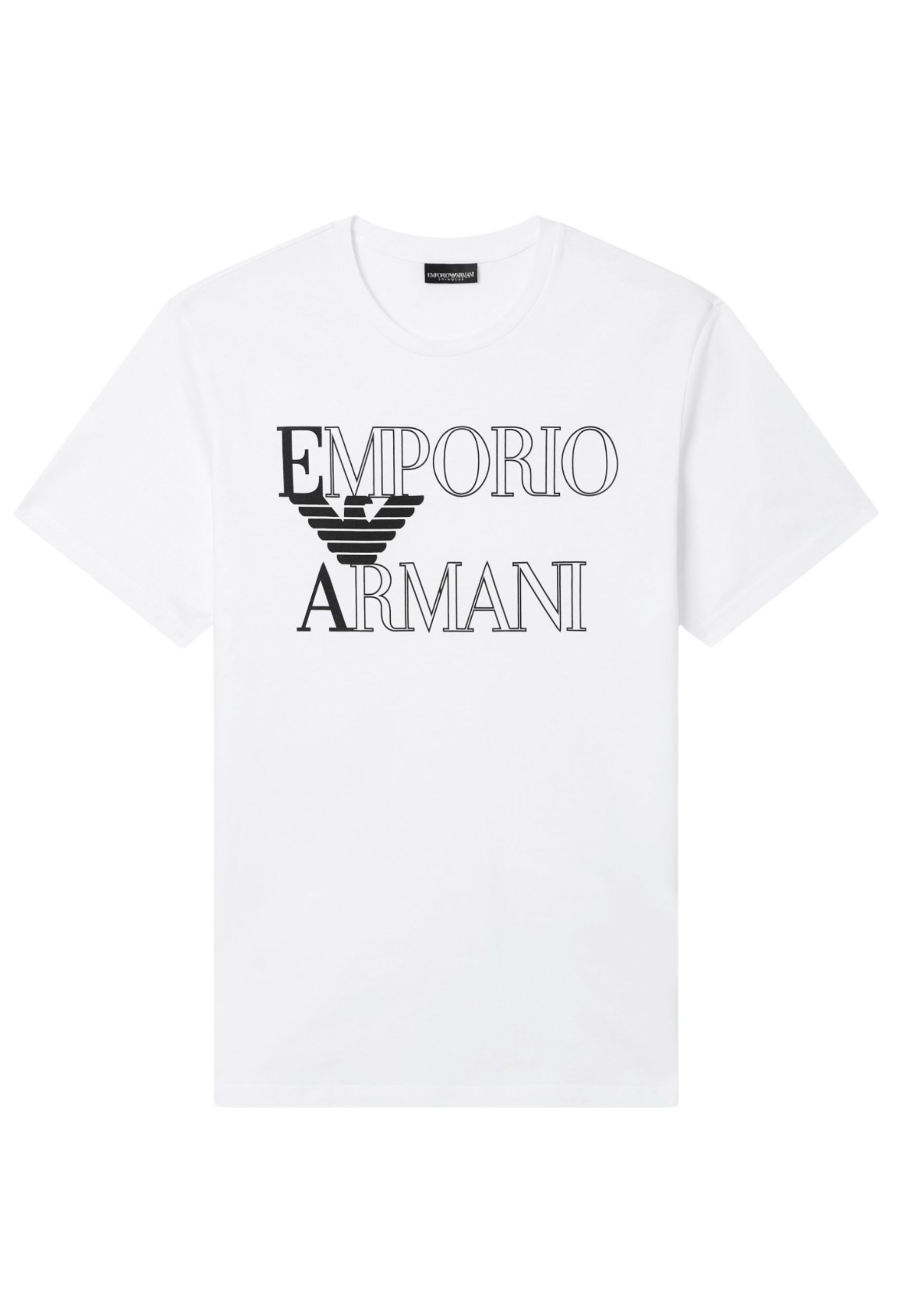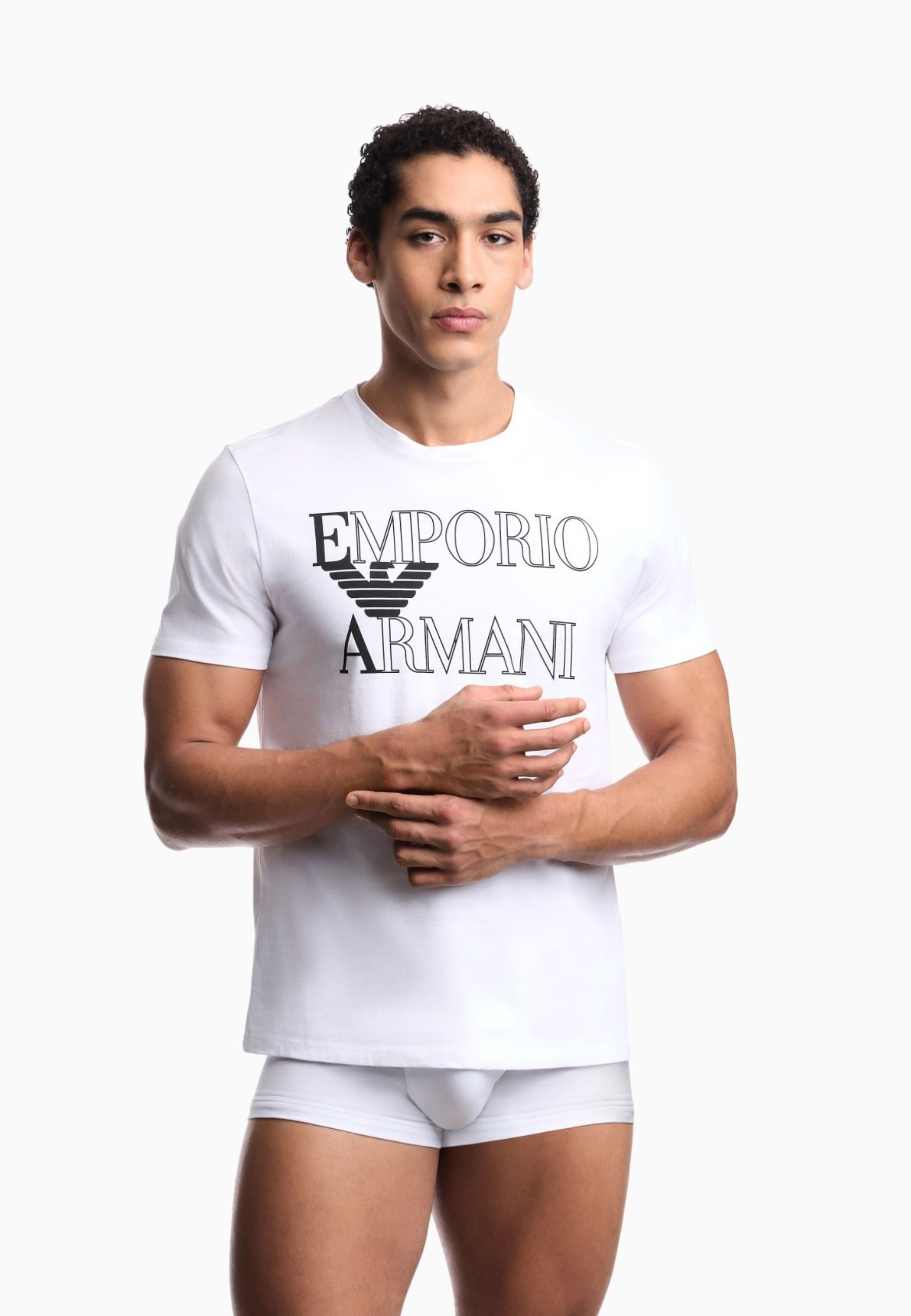 T-shirt girocollo realizzata in jersey di puro cotone, caratterizzata da maxi stampa frontale con logo Emporio Armani a contrasto. Il design essenziale è valorizzato dalliconica aquila centrale, che conferisce unimpronta grafica decisa e riconoscibile.