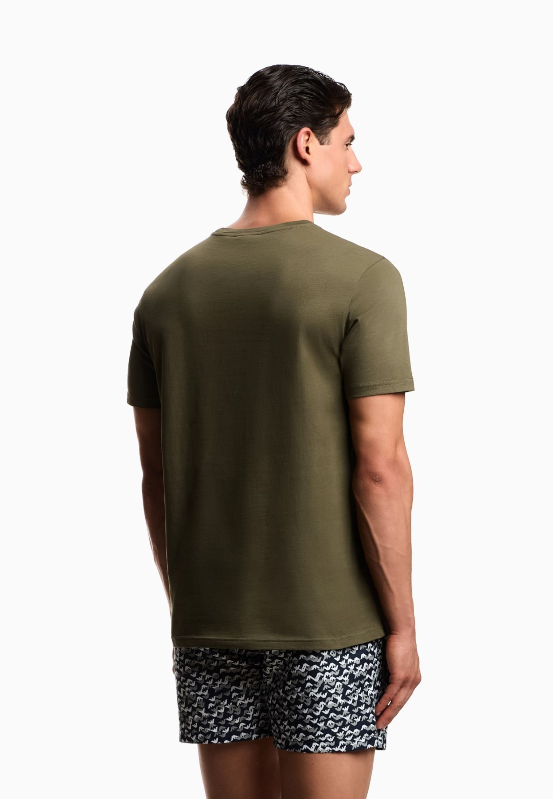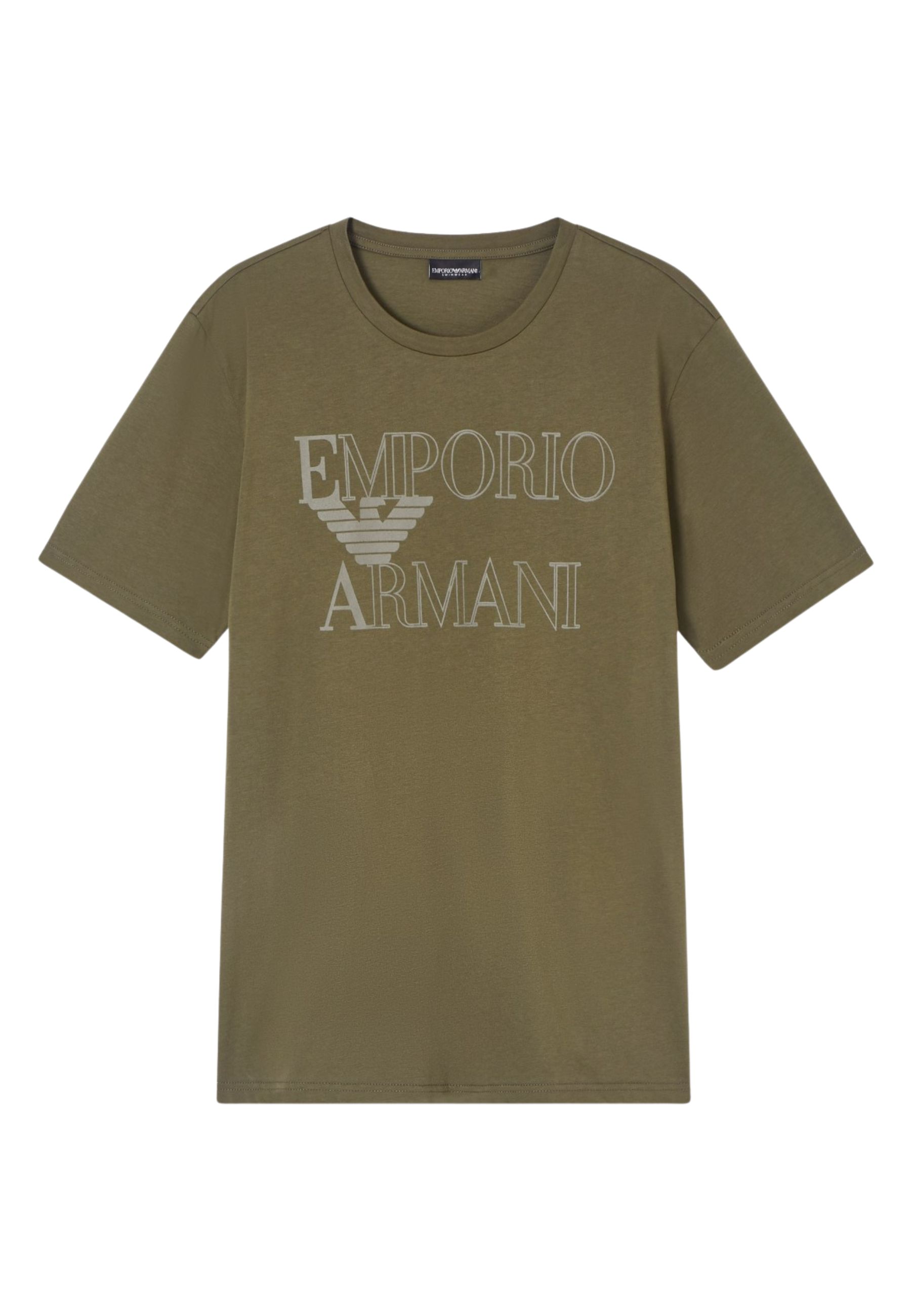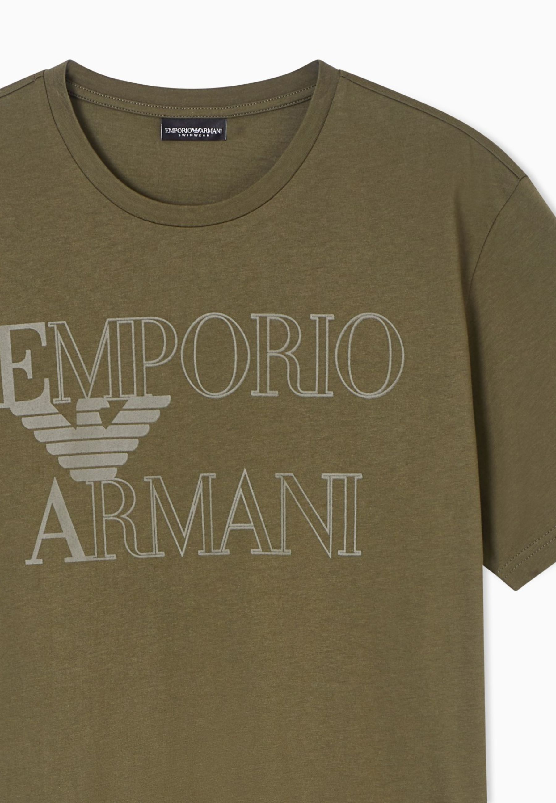 T-shirt girocollo realizzata in jersey di puro cotone, caratterizzata da maxi stampa frontale con logo Emporio Armani a contrasto. Il design essenziale è valorizzato dalliconica aquila centrale, che conferisce unimpronta grafica decisa e riconoscibile.