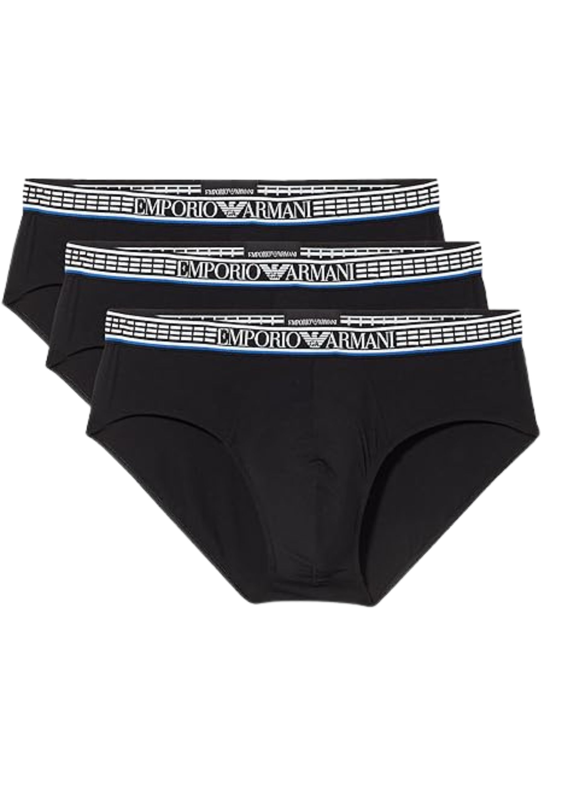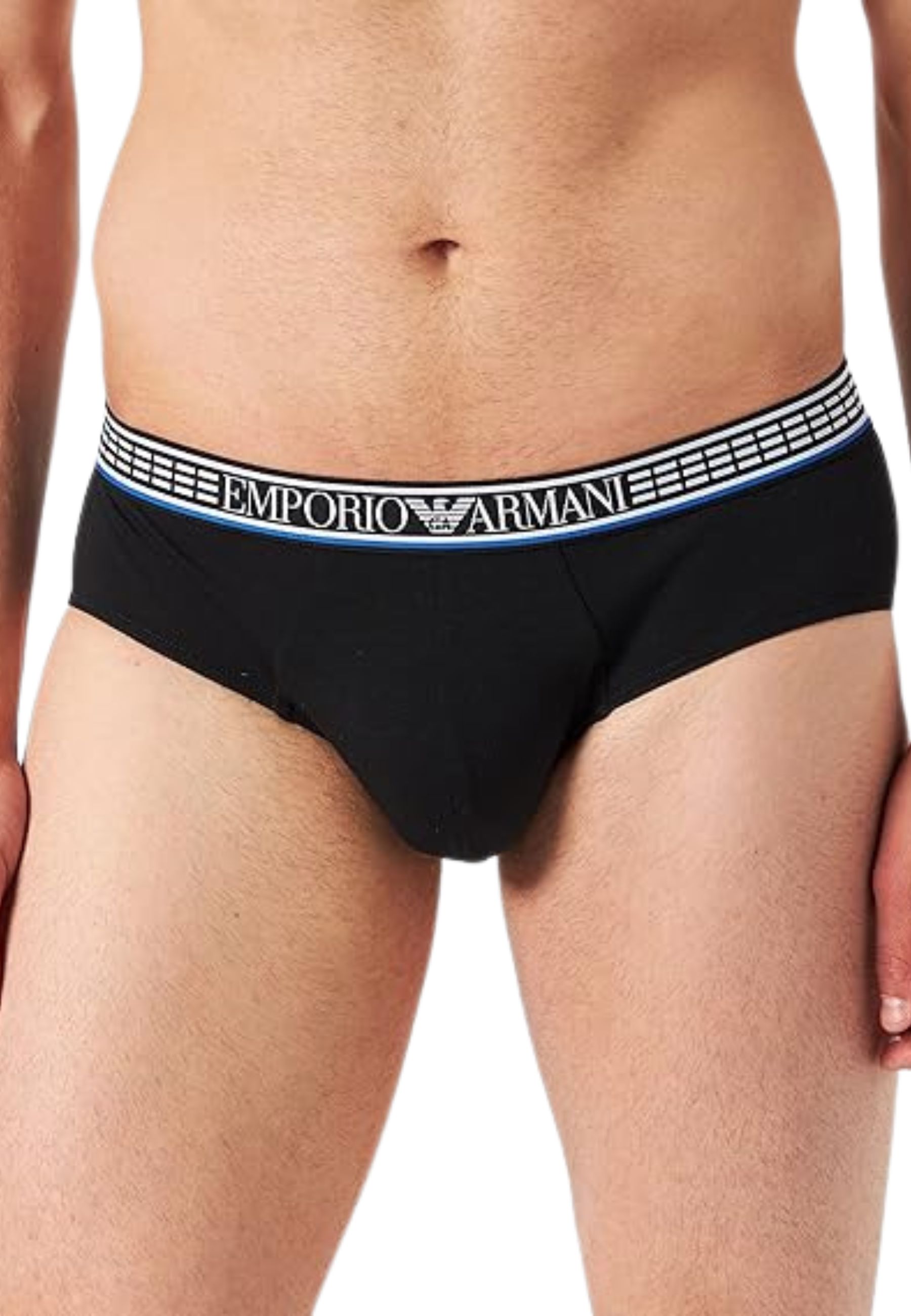 Un multipack di tre slip da uomo che combina comfort quotidiano e design contemporaneo firmato Emporio Armani. Ideali per chi cerca un underwear di qualità con dettagli distintivi e vestibilità sicura.