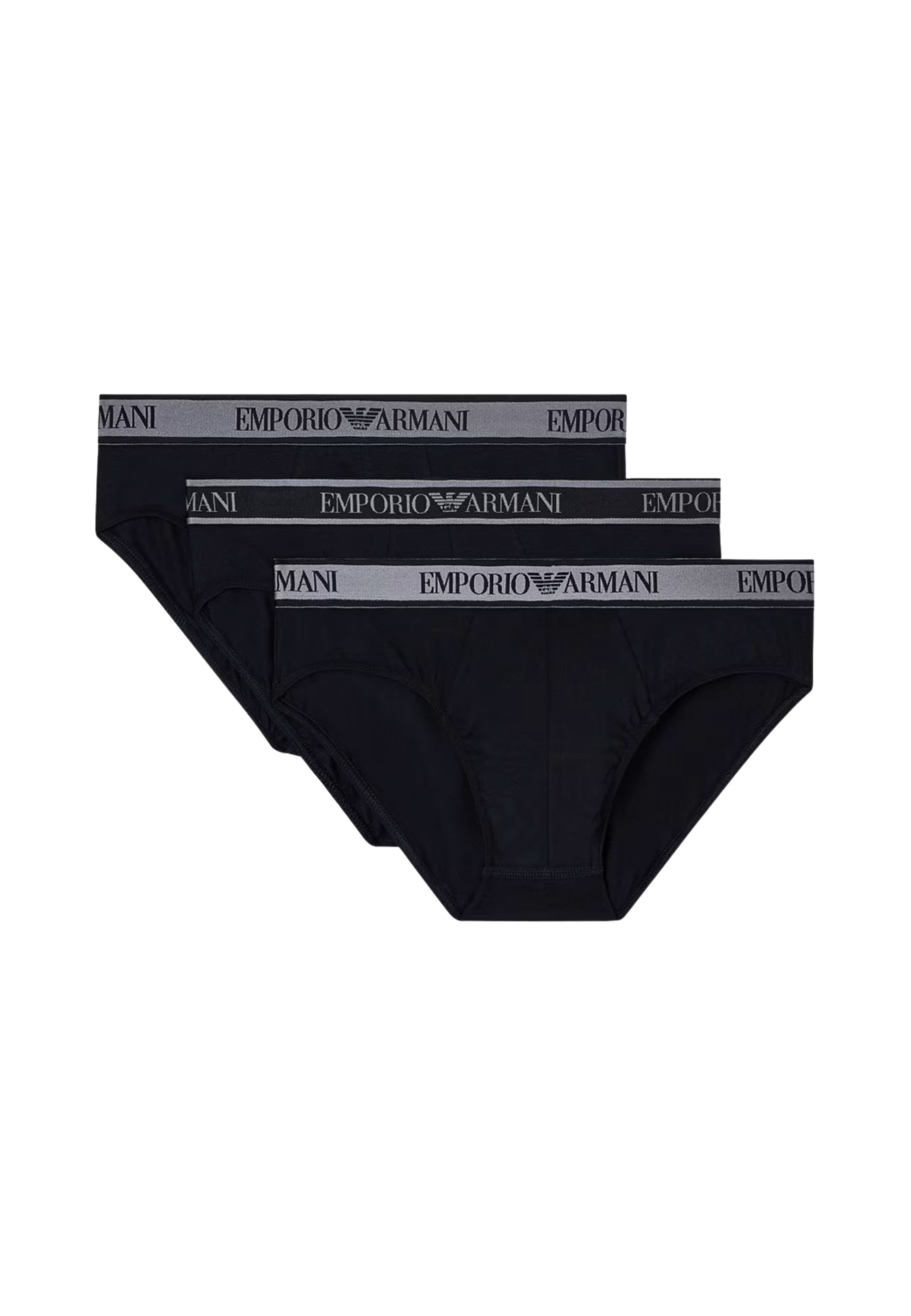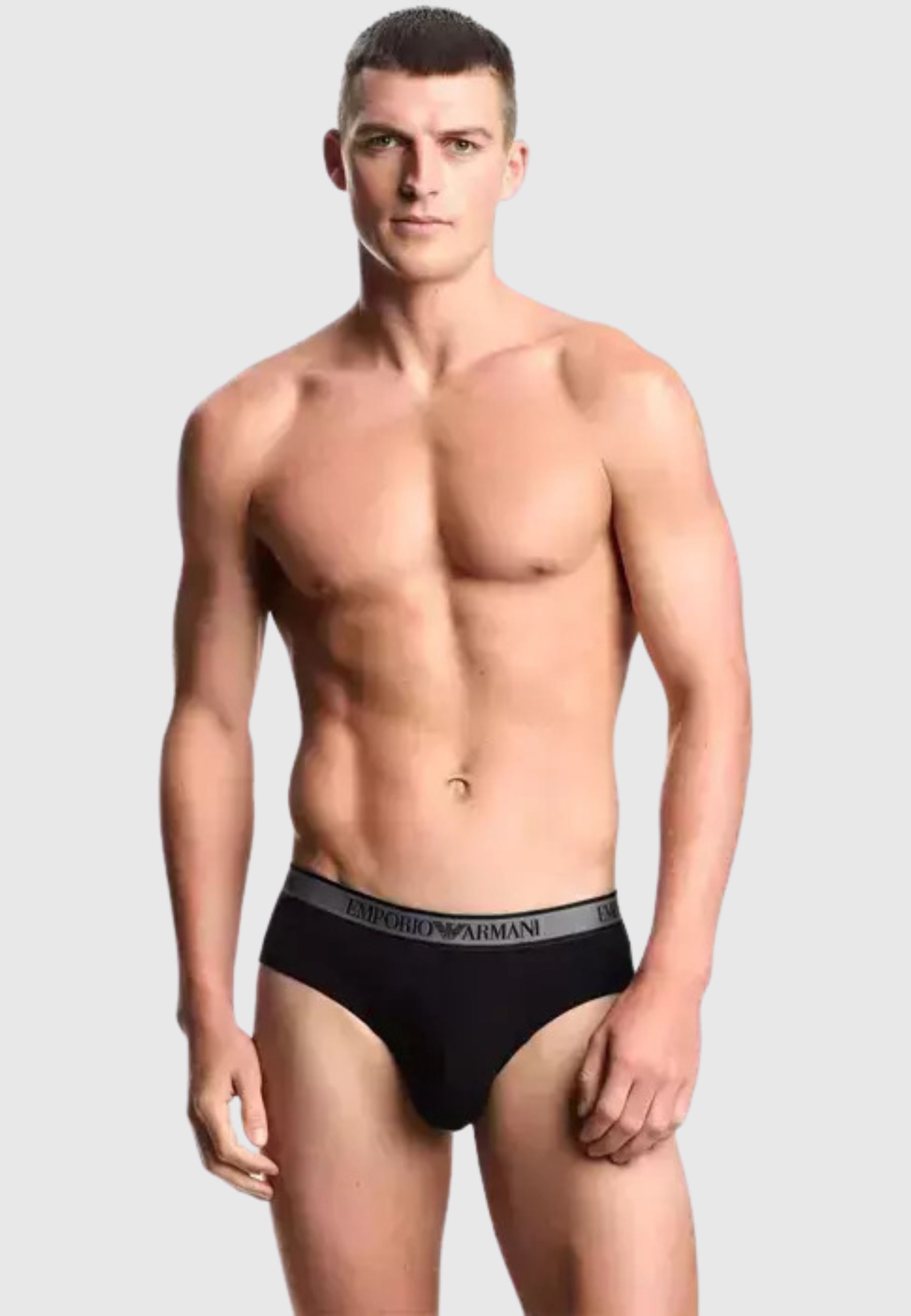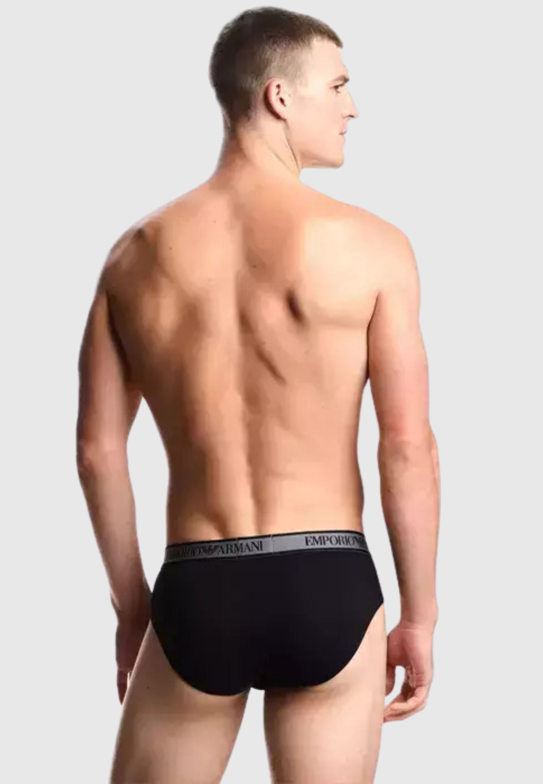 Set di slip uomo Emporio Armani in colore nero, pensati per garantire comfort quotidiano e stile senza tempo. Realizzati in morbido cotone elasticizzato, offrono una vestibilità aderente e piacevole, assicurando libertà di movimento e resistenza nel tempo. Il design è completato dalla fascia elastica in vita con logo Emporio Armani a contrasto, simbolo di raffinatezza e riconoscibilità.