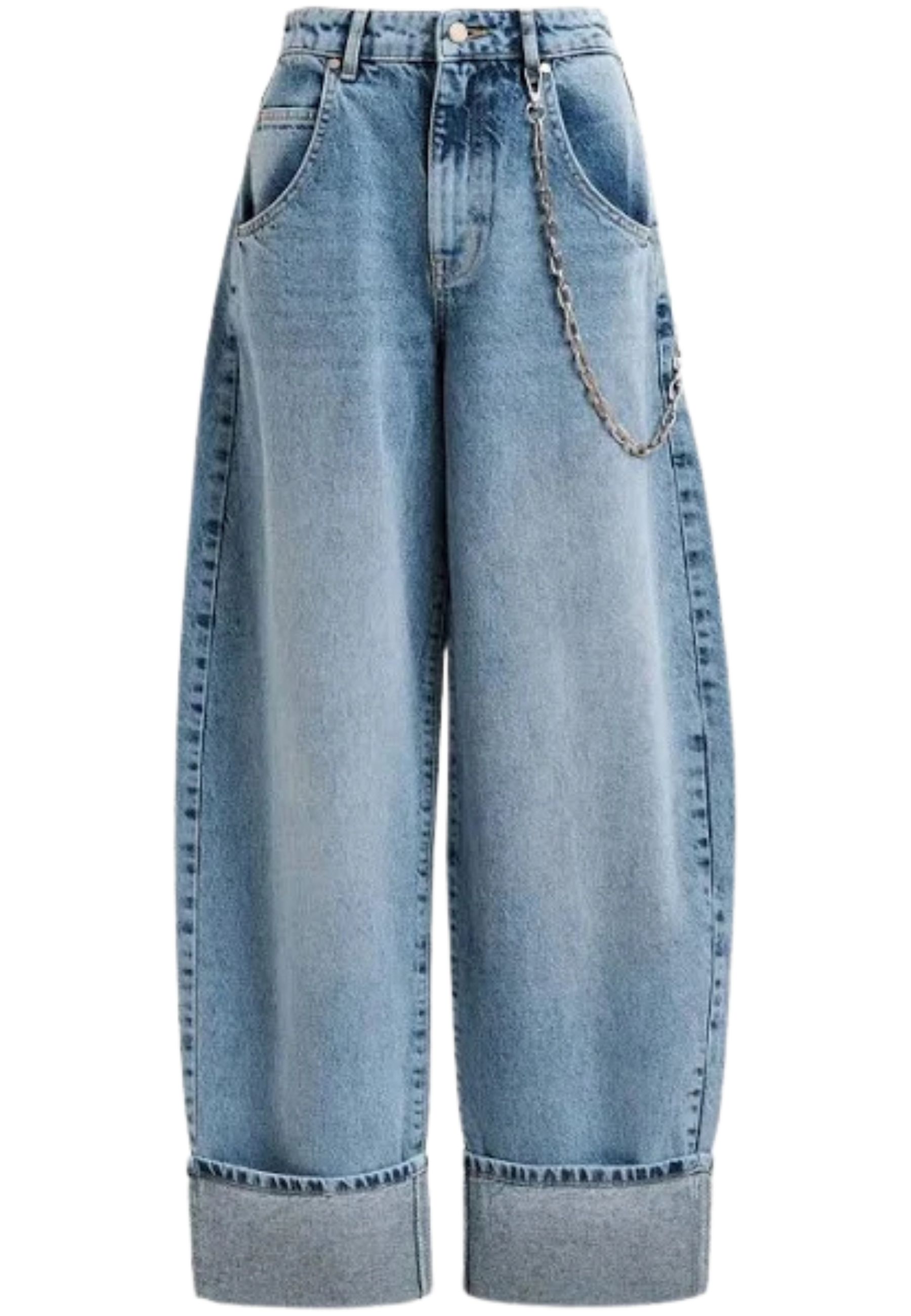 Realizzati in denim 100% cotone, questi jeans combinano comfort e stile contemporaneo. La vita alta e la linea cropped donano una vestibilità moderna, mentre la silhouette barrel leg con cucitura laterale attorcigliata crea un effetto destrutturato e di carattere. Il design a cinque tasche è arricchito da un dettaglio a contrasto sulla tasca posteriore e dal logo applicato sul retro del cinturino.