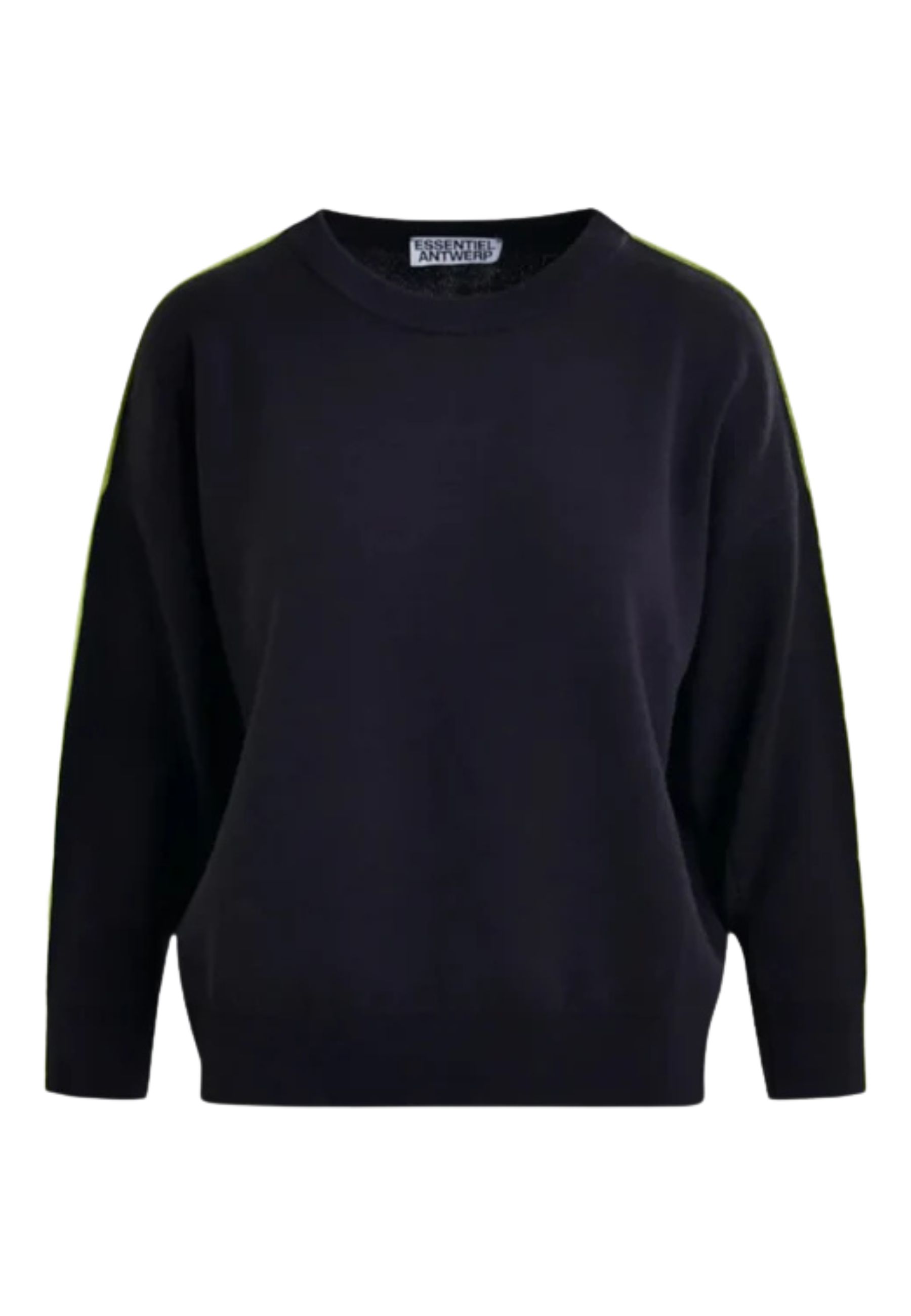Maglione Essentiel Antwerp realizzato in maglia fine, caratterizzato da una silhouette contemporanea che combina comfort e struttura. Il modello presenta una vestibilità rilassata con maniche a pipistrello, che donano al capo un volume morbido e moderno.