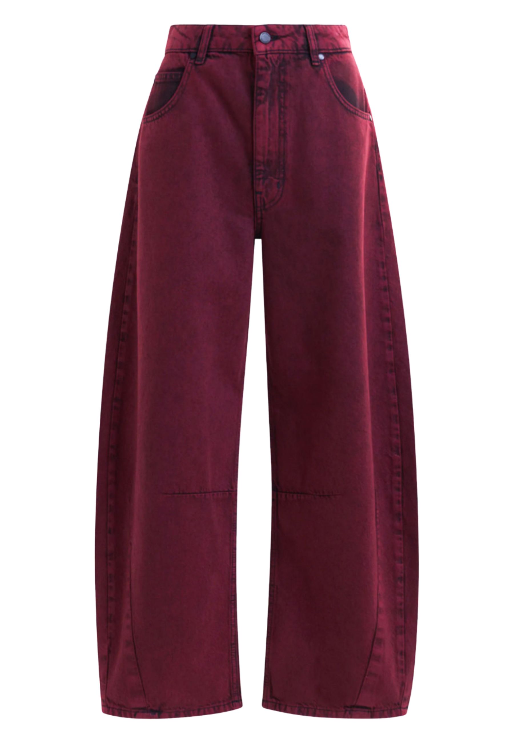 Il modello è progettato con vita alta e vestibilità rilassata, pensato per garantire comfort durante tutta la giornata. La gamba barrel è valorizzata da una cucitura esterna leggermente twistata, un dettaglio sartoriale che introduce una dimensione scultorea al design tradizionale a cinque tasche.