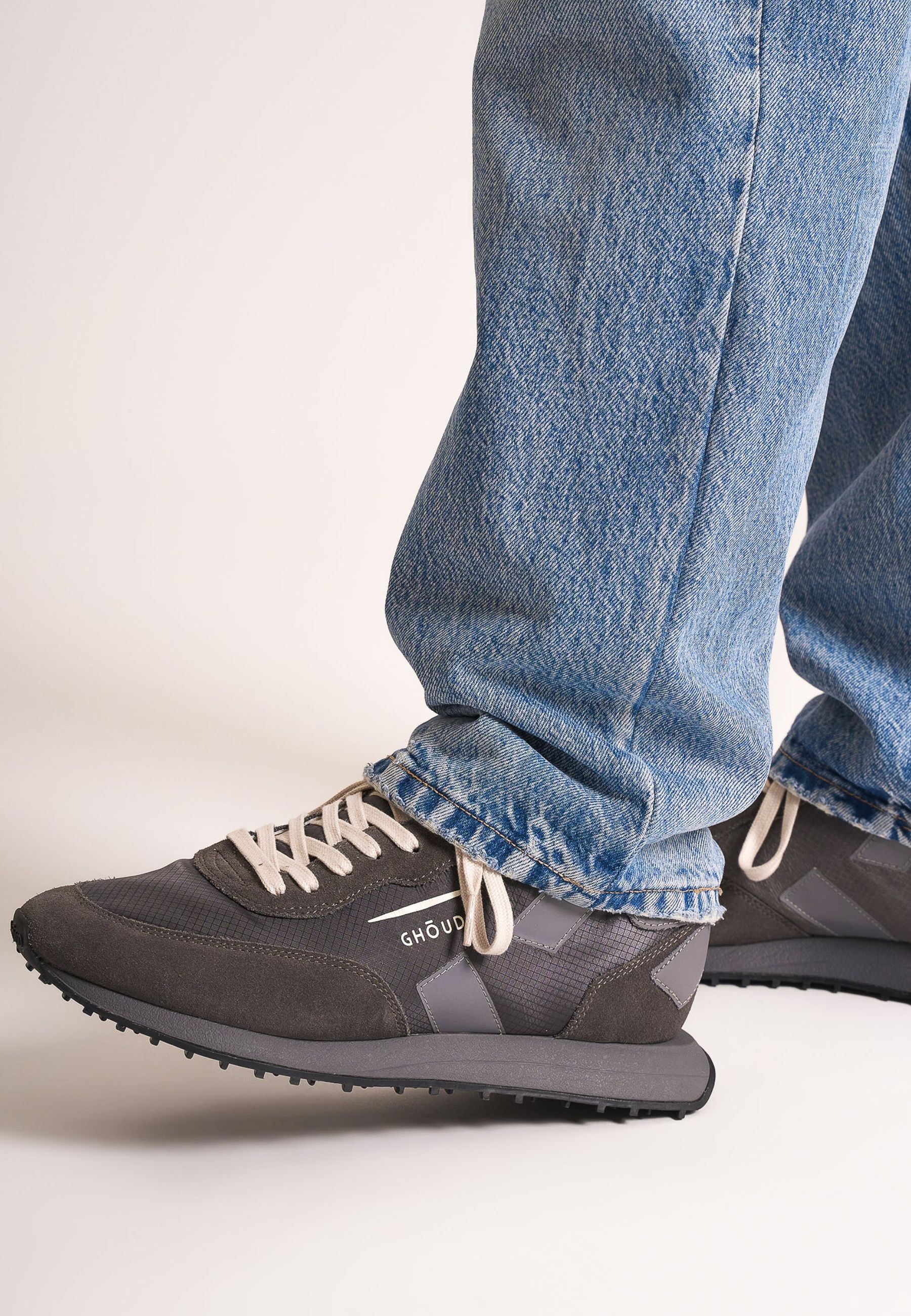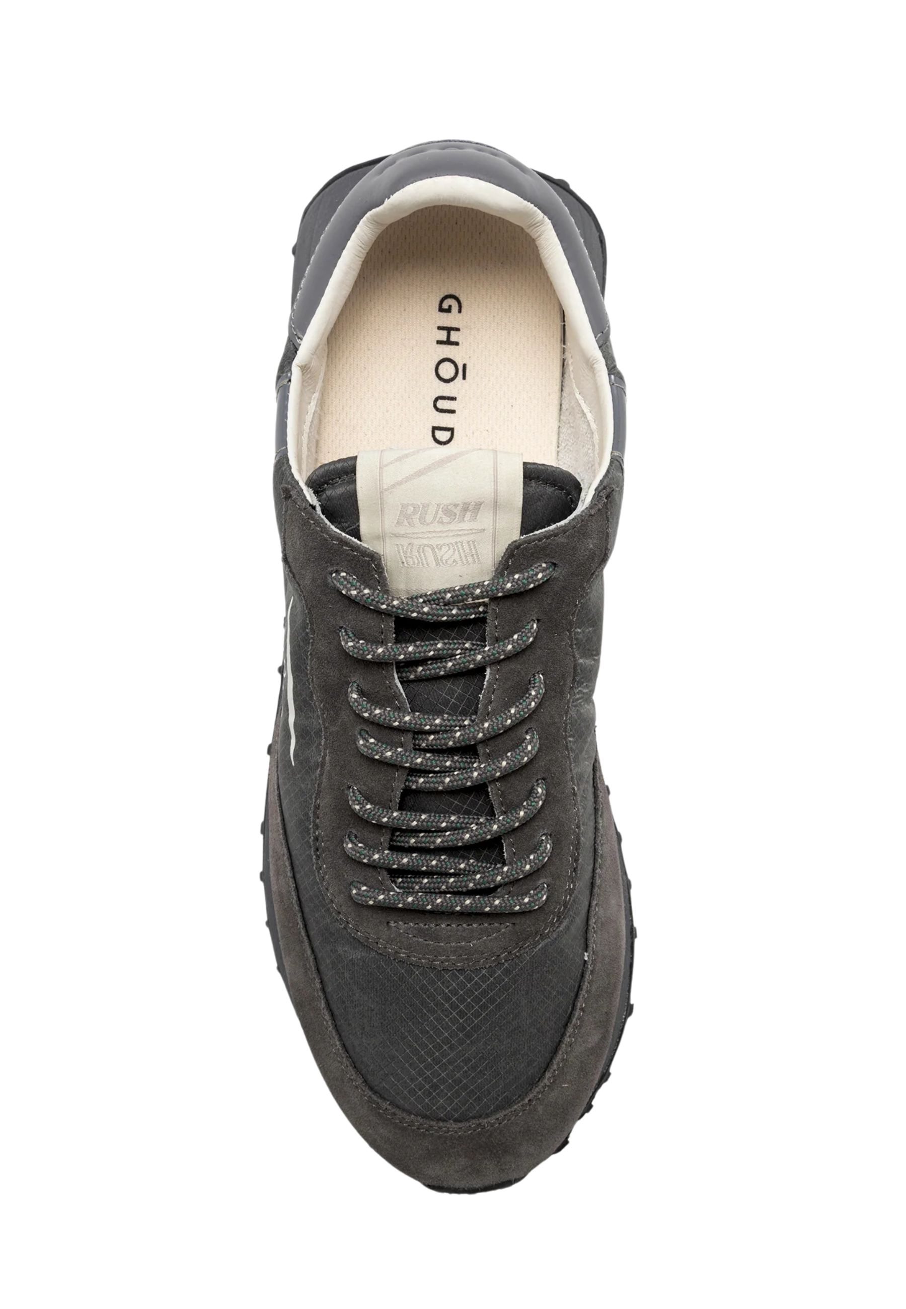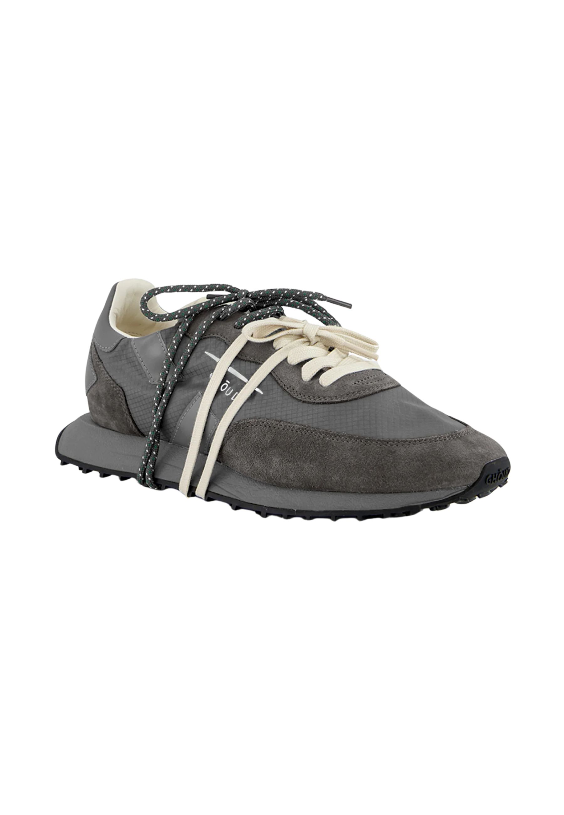 Le Ghoud Rush Framework in tonalità grigio combinano stile contemporaneo e materiali tecnici di alta qualità. Realizzate in ripstop resistente con inserti in suede morbido, offrono un design dinamico e moderno, ideale per completare look casual e urban.