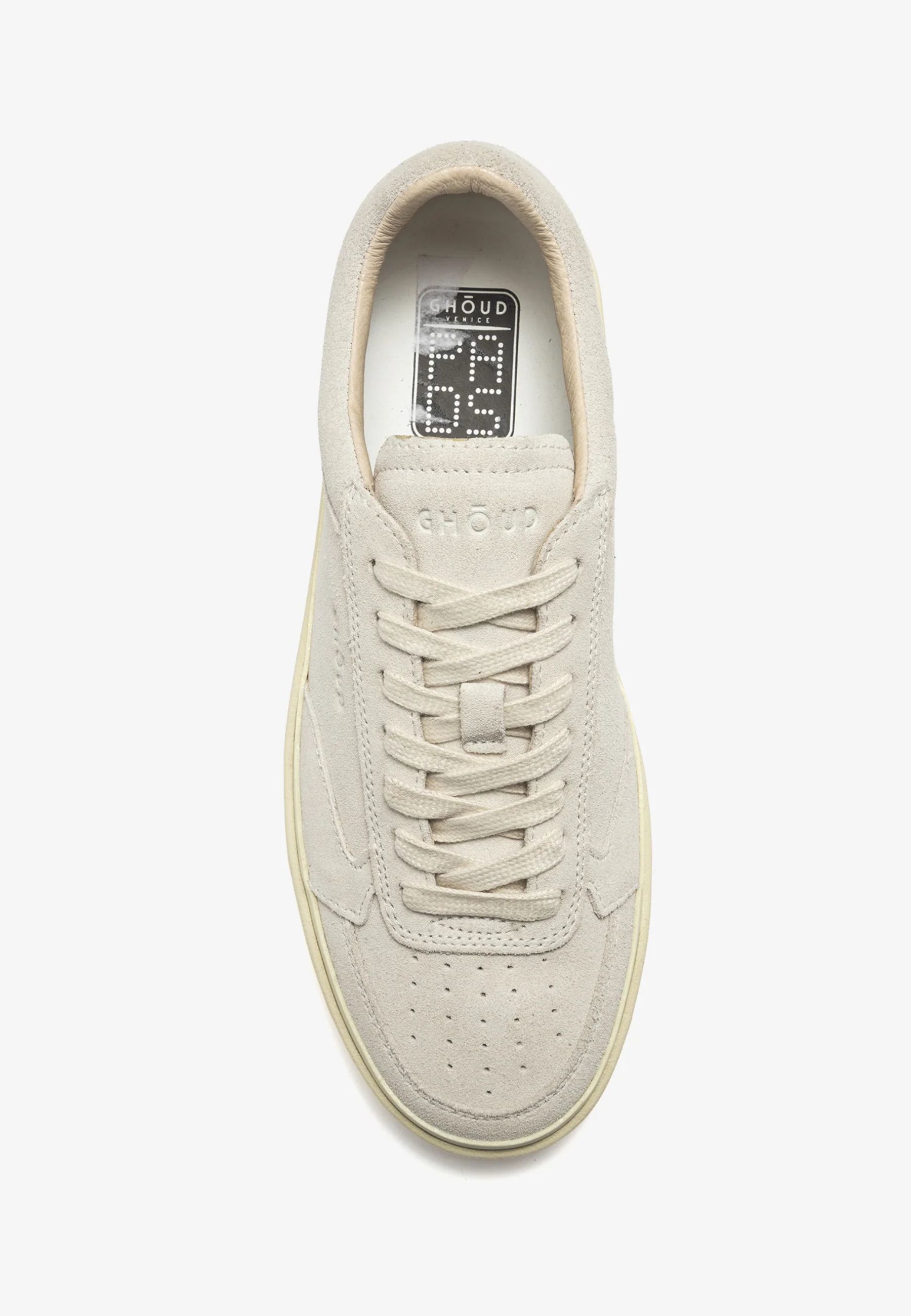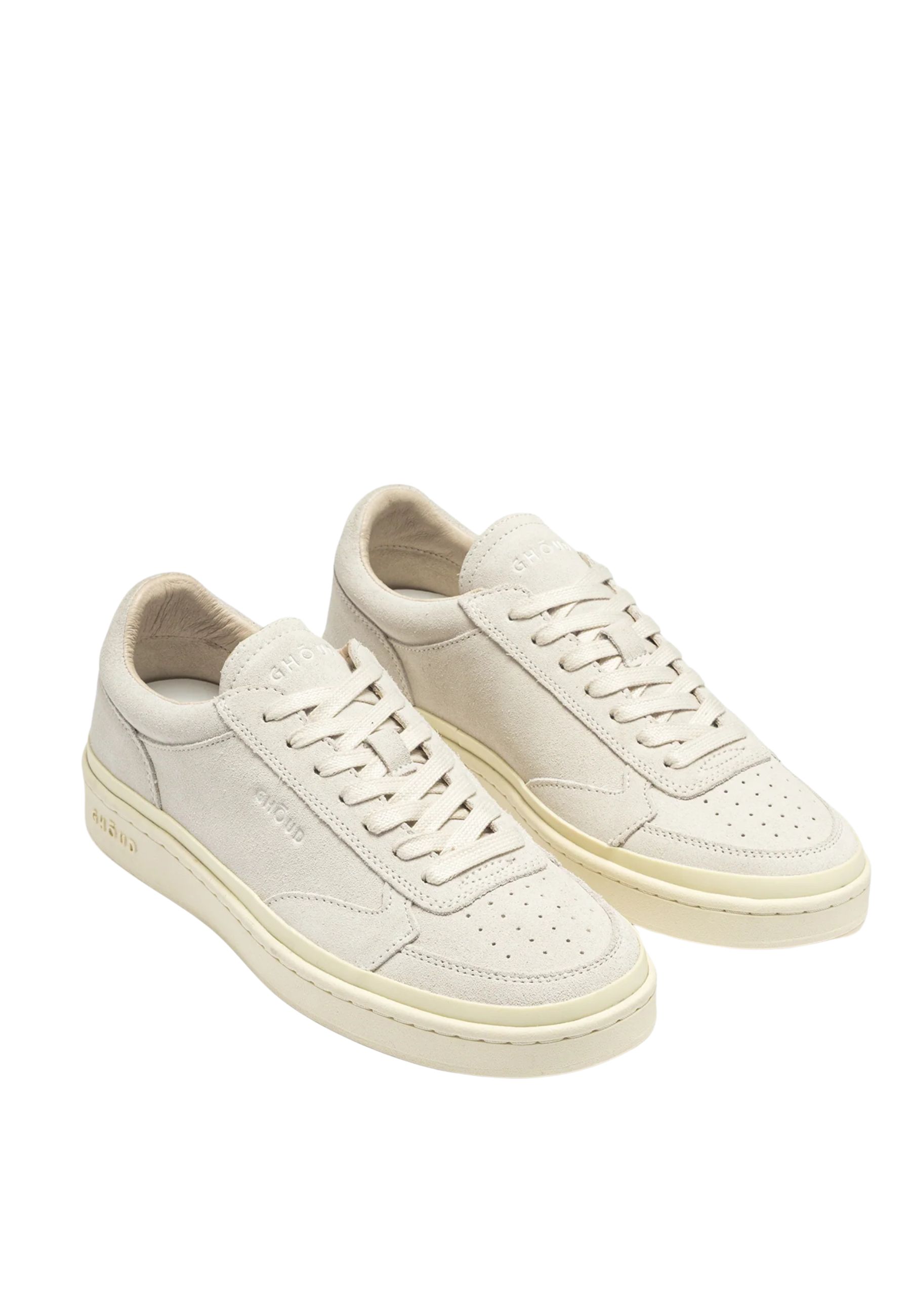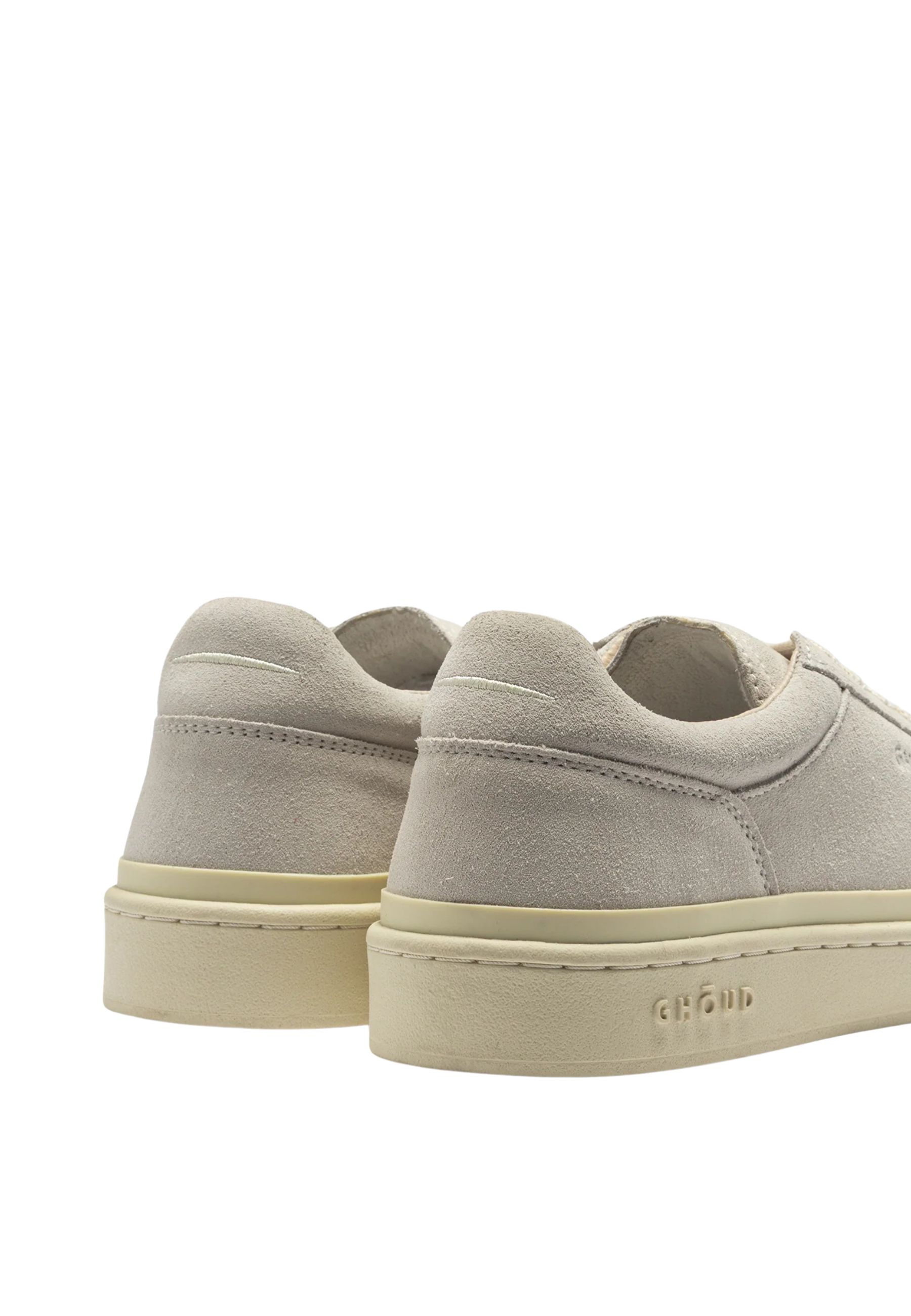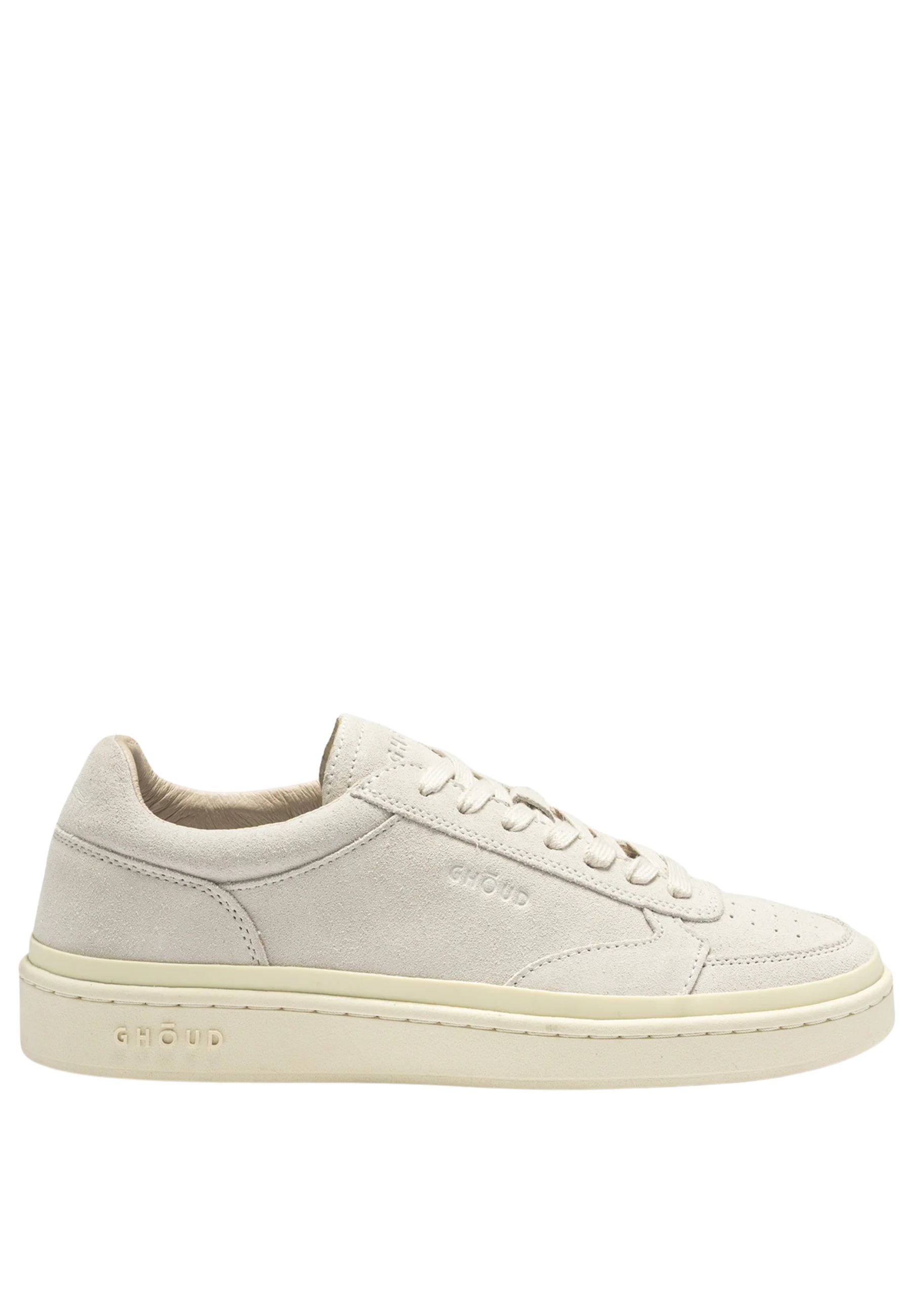 La silhouette low-top è realizzata con tomaia in suede morbido che dona alla scarpa un aspetto elegante e materico. Il logo Ghoud inciso lateralmente e sulla linguetta aggiunge un dettaglio distintivo mantenendo unestetica essenziale. La suola in gomma dal tono leggermente avorio completa il design con un contrasto delicato che valorizza la linea della sneaker.