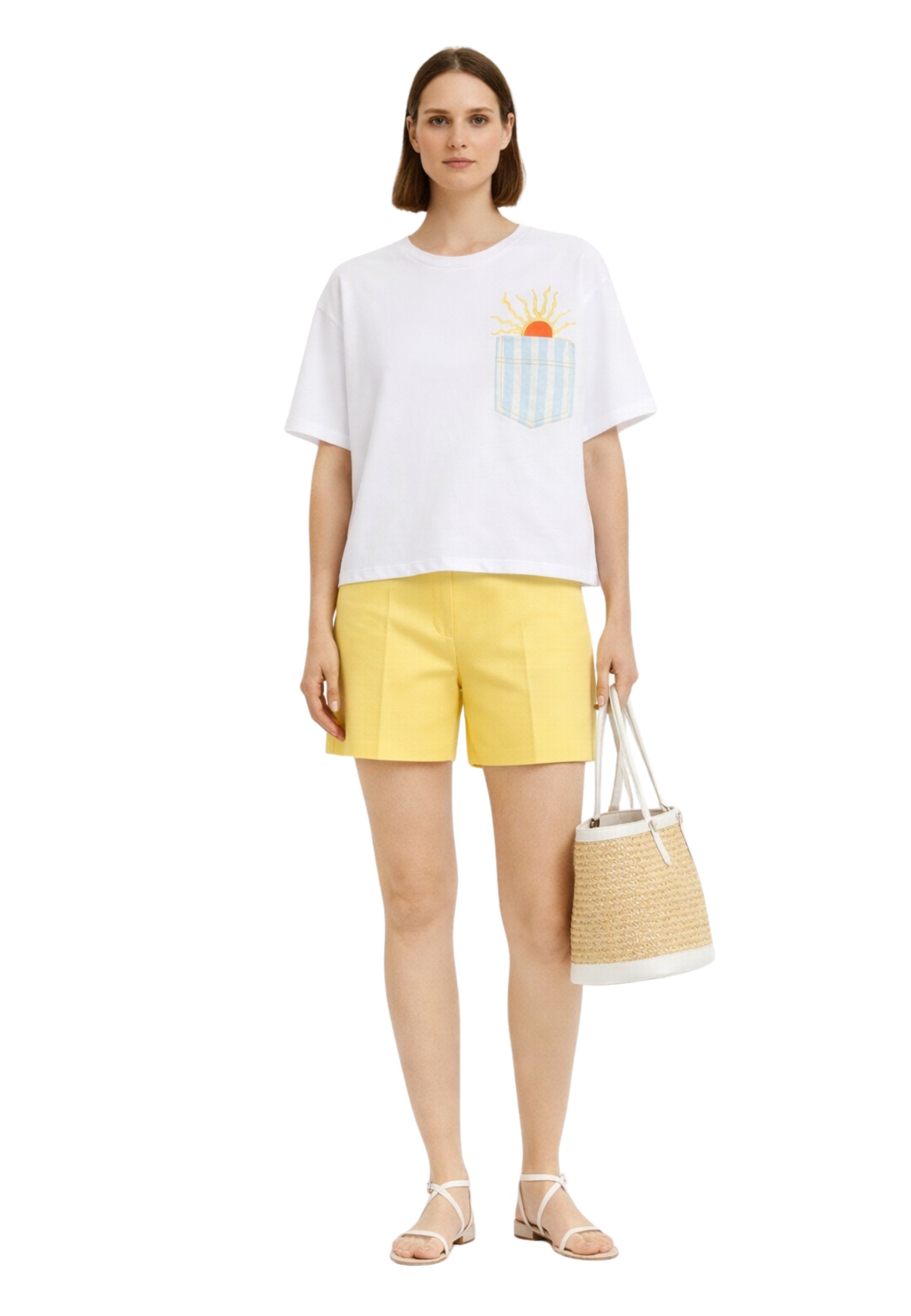 T-shirt dal design fresco e contemporaneo realizzata in jersey di puro cotone, impreziosita da stampa e ricamo decorativo che dona carattere al capo. Il tessuto naturale assicura morbidezza, traspirabilità e comfort durante tutta la giornata.