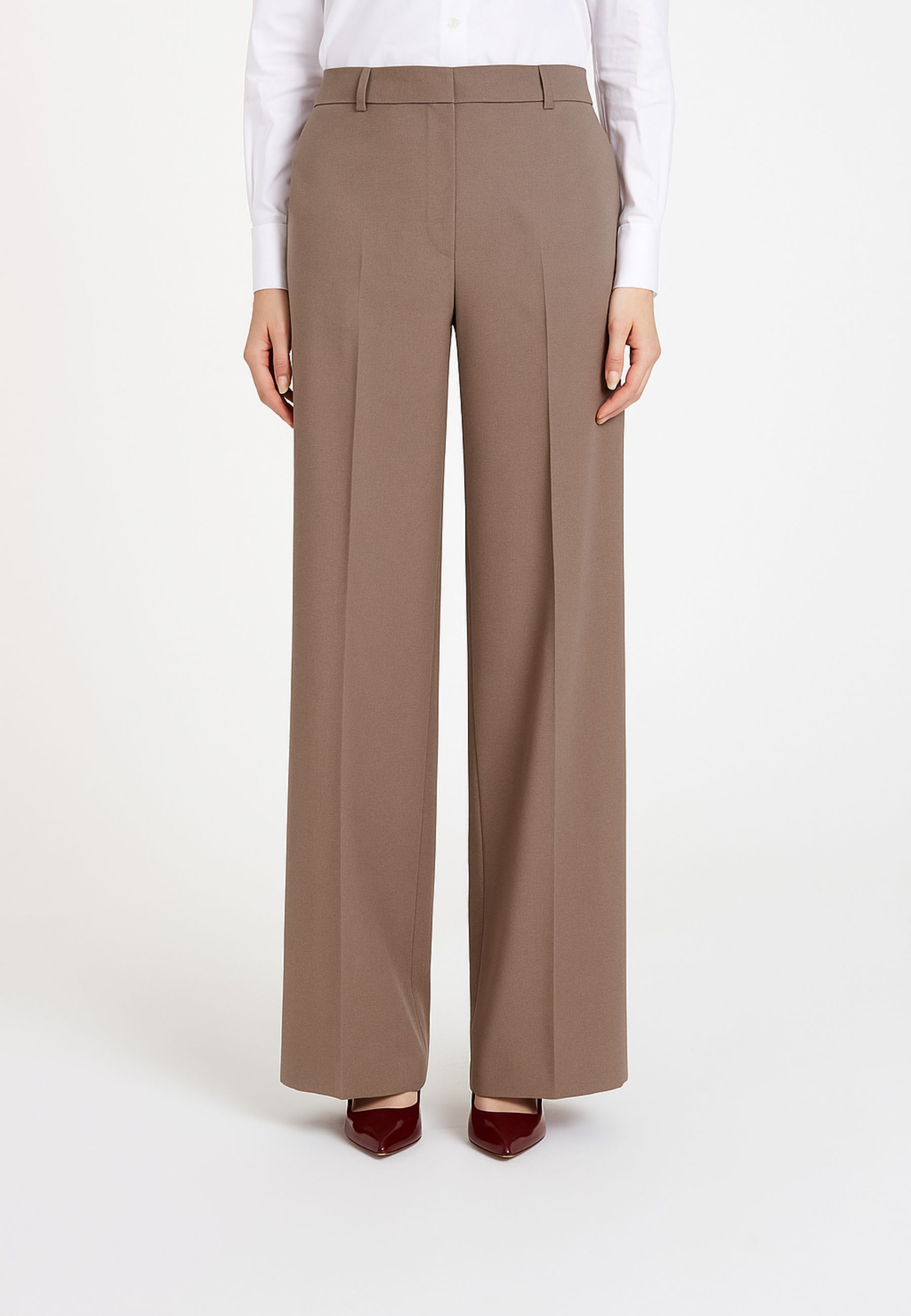 Il modello presenta una linea ampia e fluida con gamba wide leg, che dona movimento e slancia la figura.