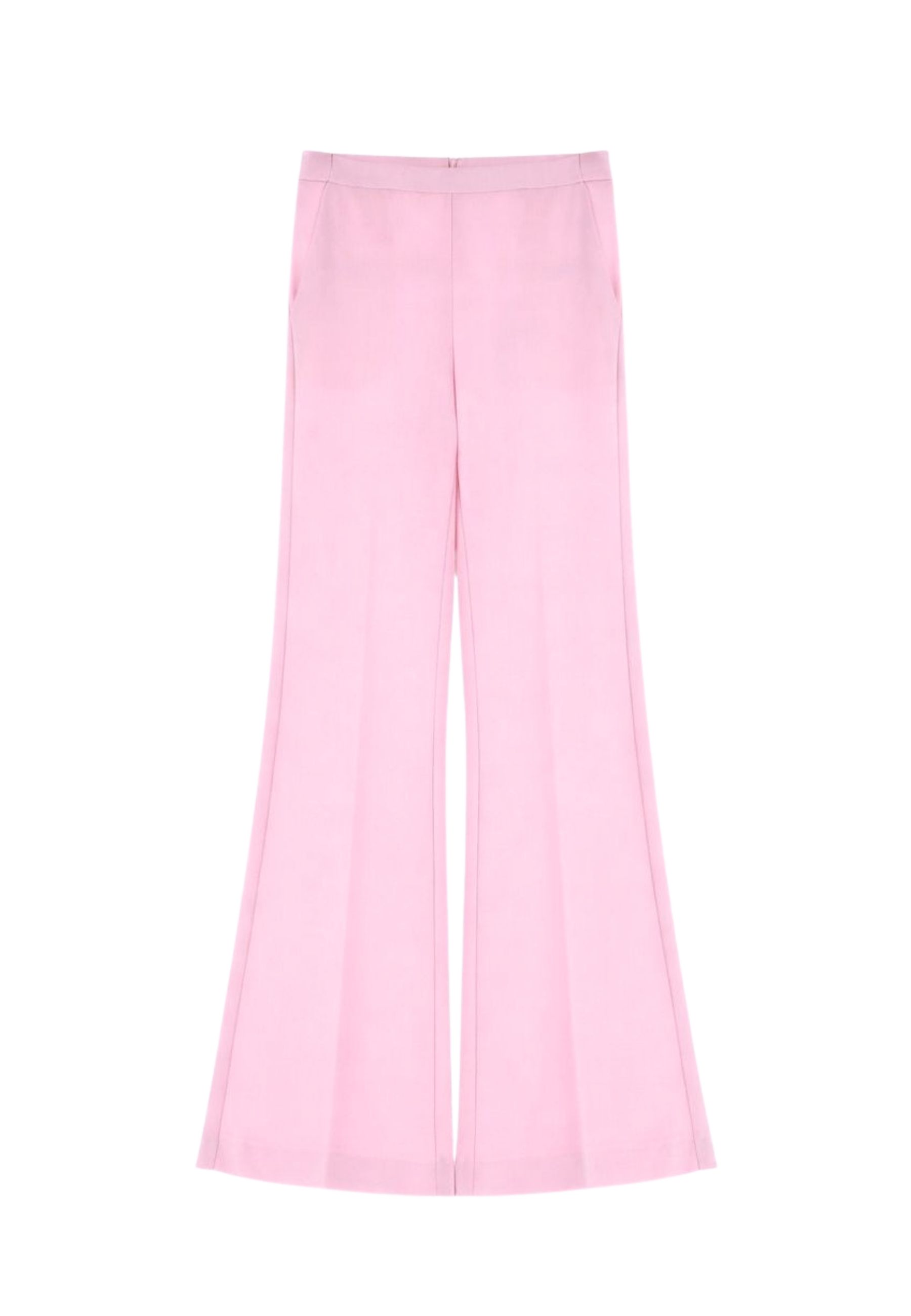 Pantalone firmato Imperial realizzato in elegante tessuto tecnico con finitura effetto raso, ideale per look raffinati e contemporanei. Il modello a zampa slancia see la silhouette grazie alla vita alta, garantendo una vestibilità femminile e confortevole. La chiusura posteriore con zip invisibile assicura una linea pulita, mentre le tasche a filo e la finta tasca posteriore, entrambe rifinite in raso, aggiungono un dettaglio sartoriale ricercato.