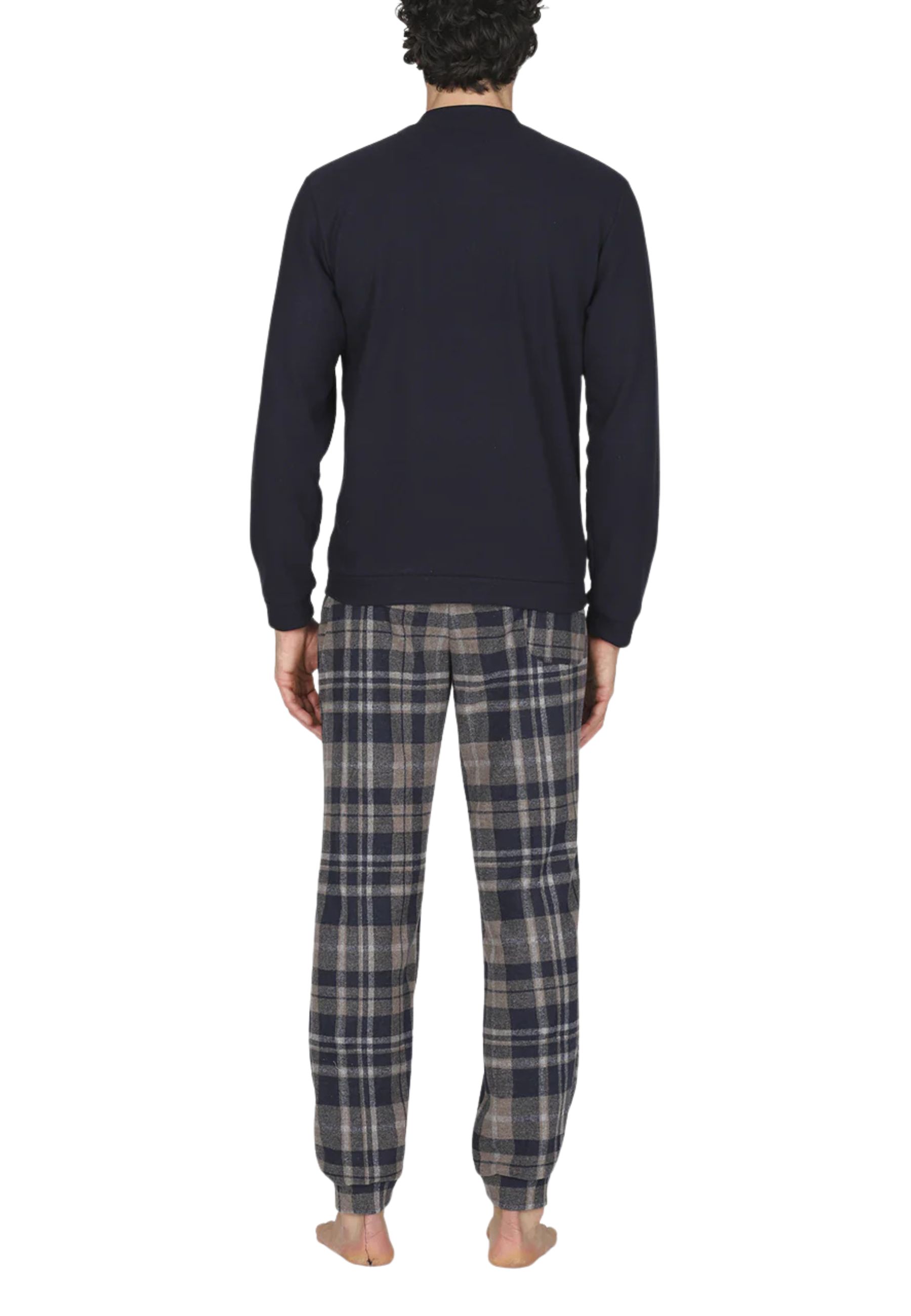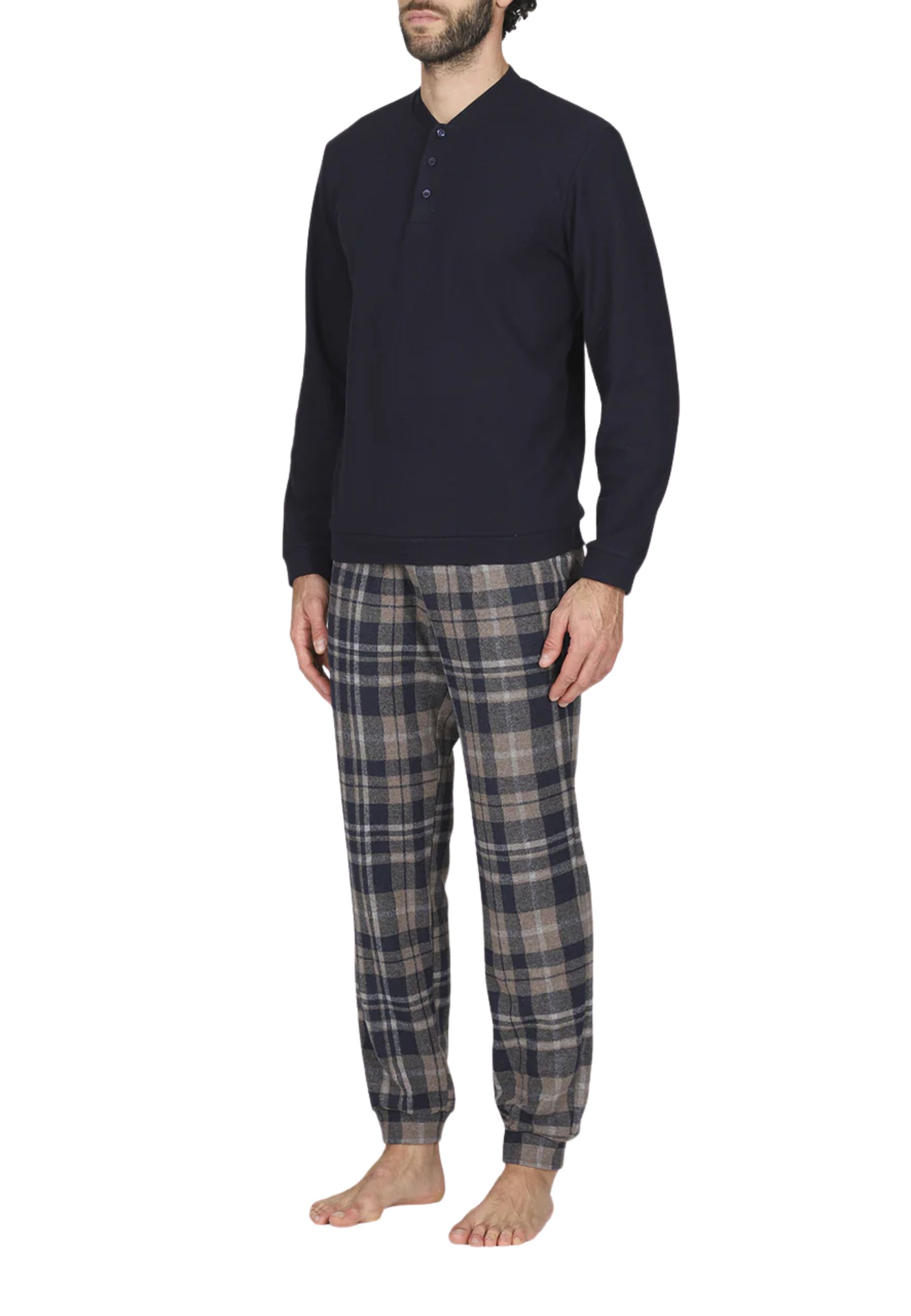 Unire eleganza e comfort è la chiave per un pigiama di alta qualità, e questo modello ne è la dimostrazione perfetta. Realizzato in un morbido jacquard scozzese blu, offre una vestibilità comoda e raffinata, ideale per i momenti di relax a casa.