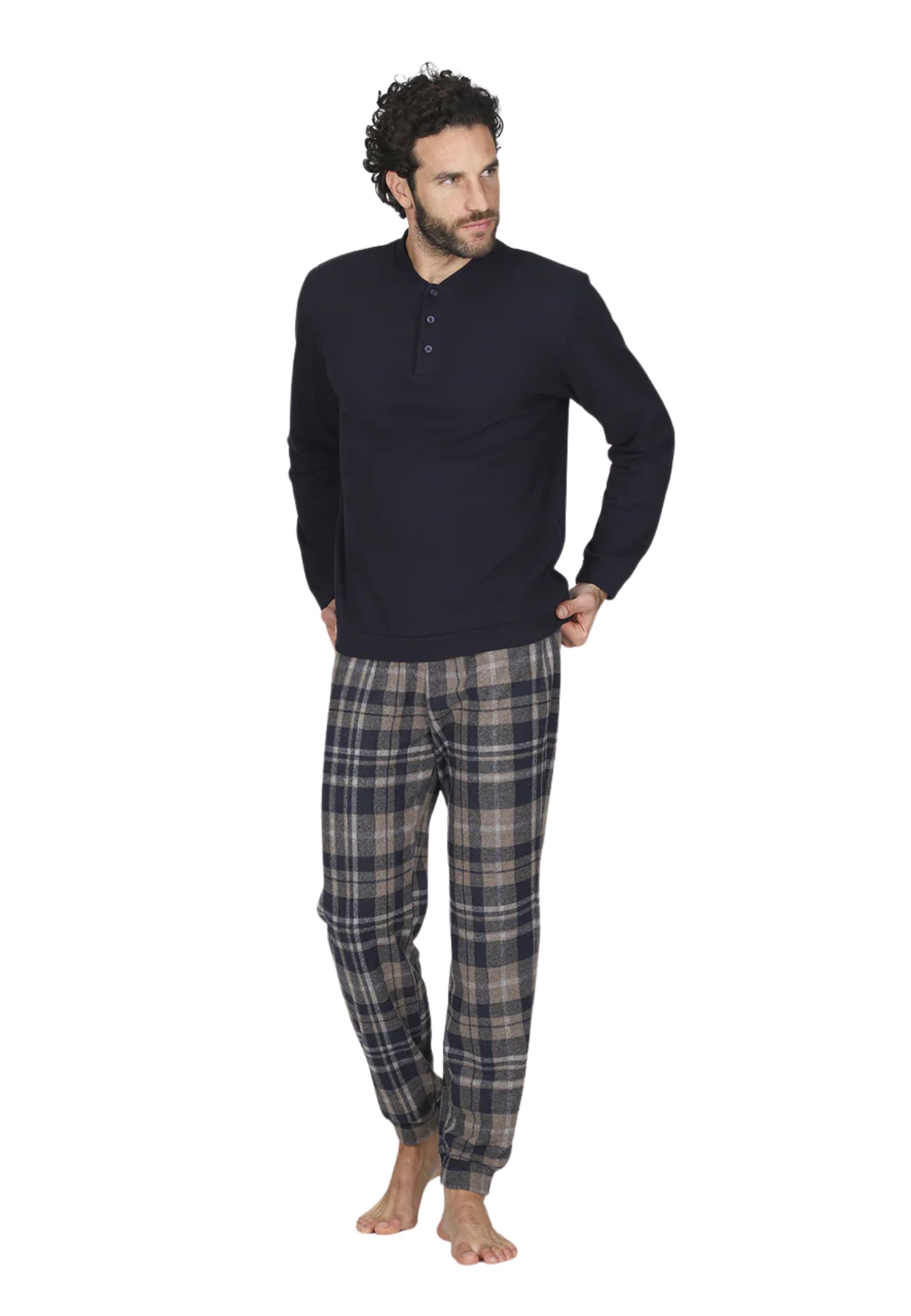 Questo pigiama è pensato per l'uomo che non rinuncia al comfort pur mantenendo un aspetto curato, rendendolo perfetto sia per il riposo che per la prima colazione domenicale. Una scelta raffinata per chi desidera trascorrere le proprie serate con classe.