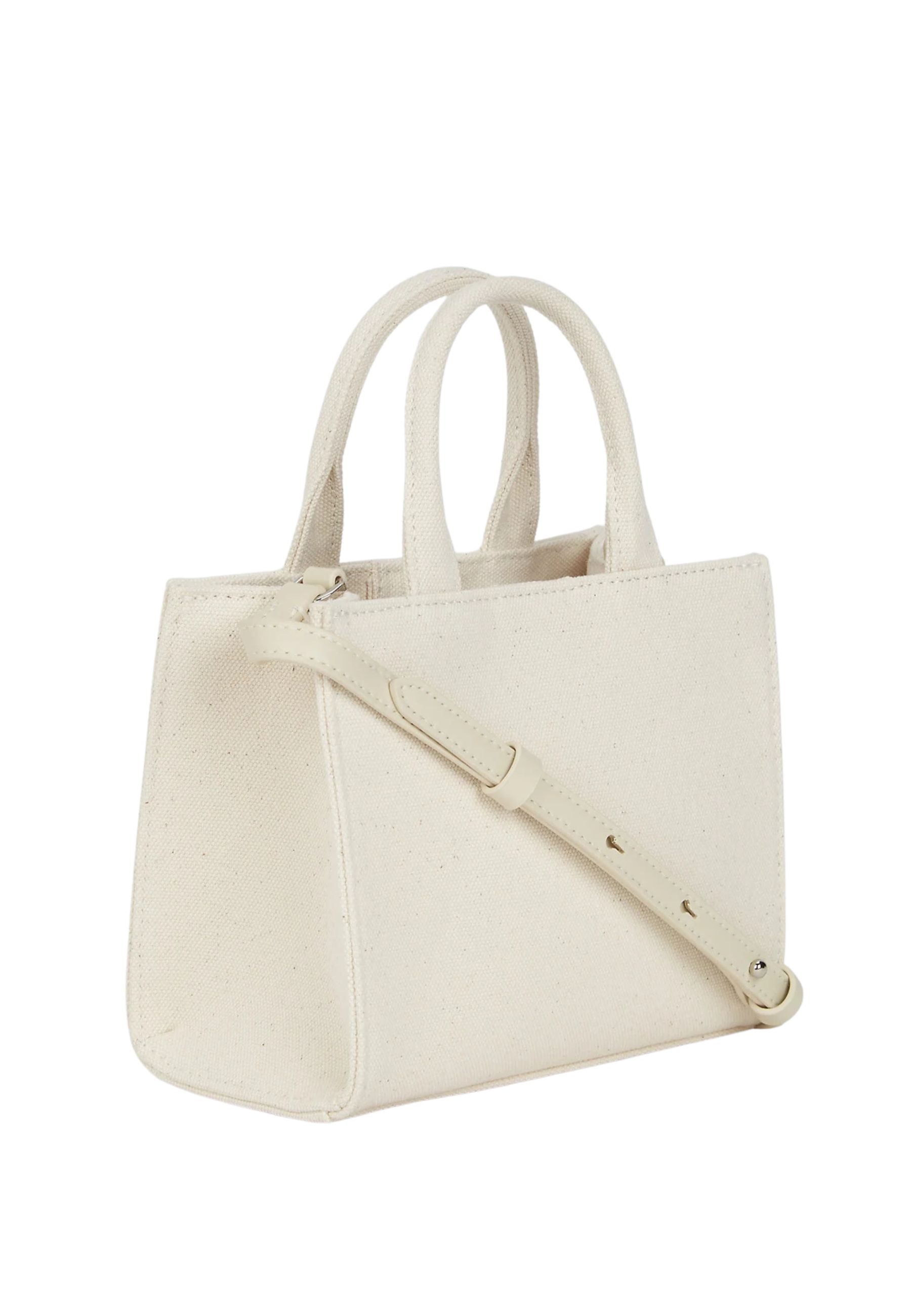 La chiusura con bottone garantisce sicurezza per gli oggetti essenziali, mentre i due manici superiori sono completati da tracolla regolabile e rimovibile per adattare lo stile alle diverse esigenze quotidiane.