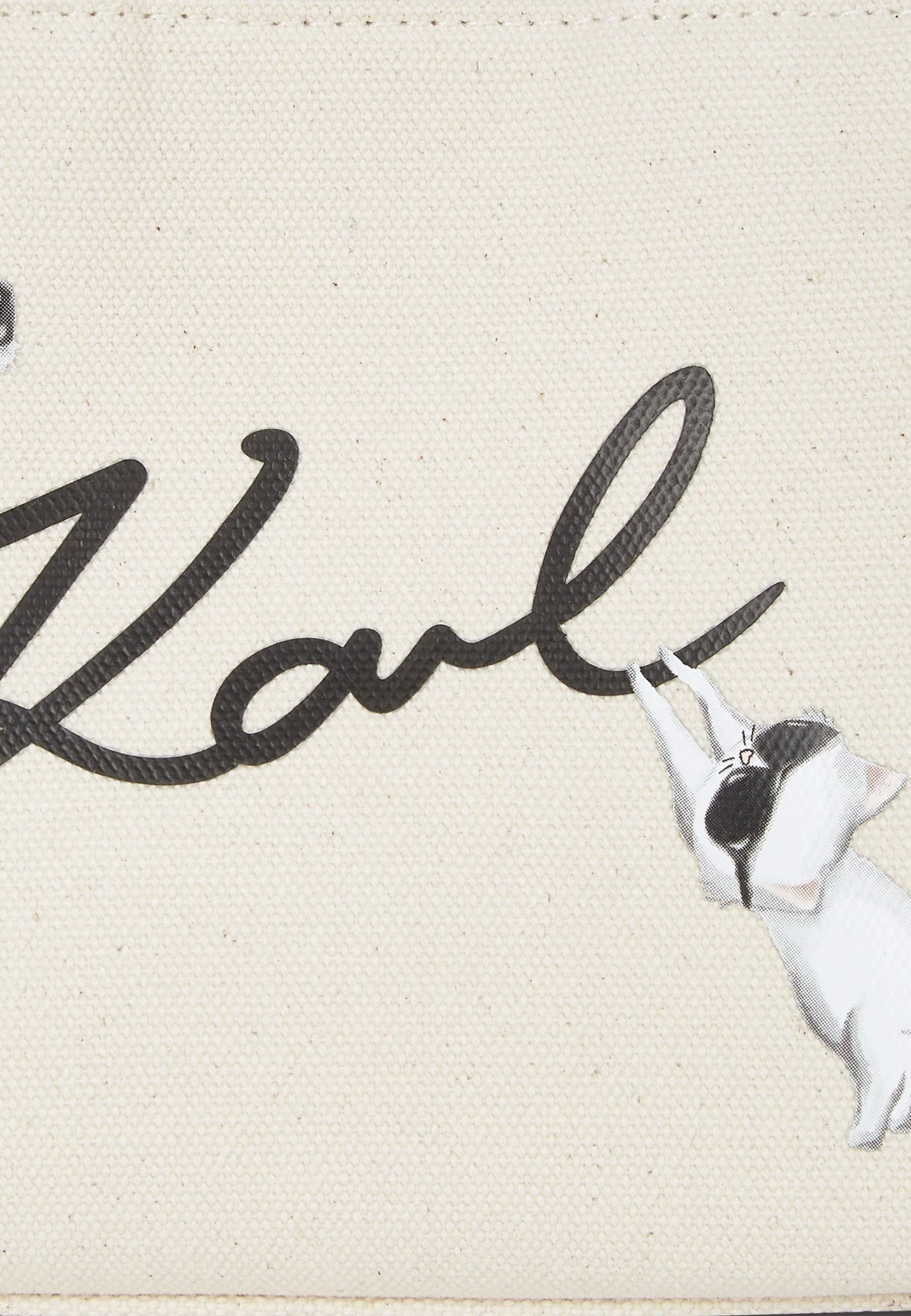 Borsa tote dalla silhouette quadrata e contemporanea, progettata per un utilizzo versatile a mano o a tracolla. Il design compatto è valorizzato dallaudace grafica Karl Signature e Ikon Choupette a contrasto, che conferisce un carattere distintivo e dinamico.