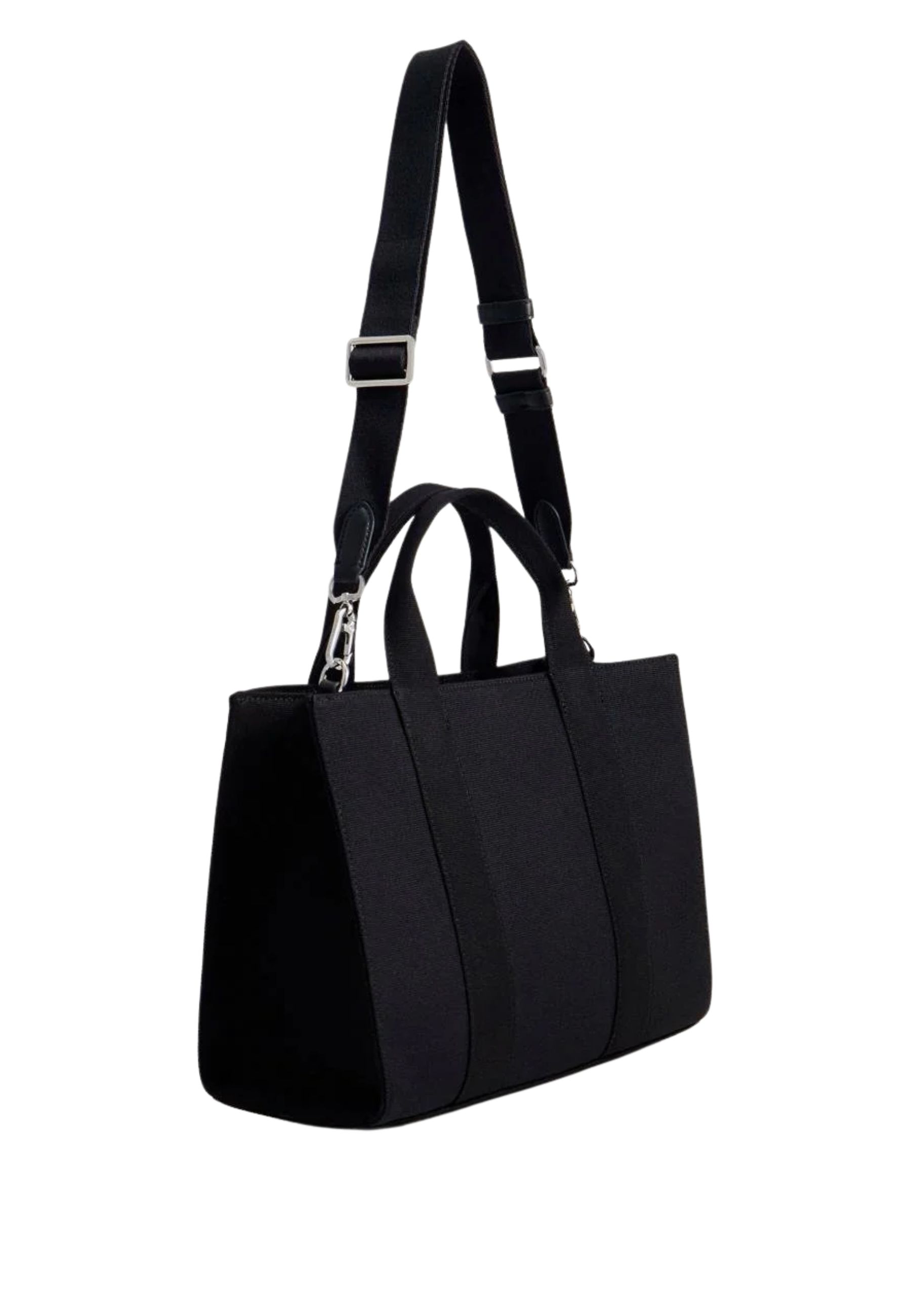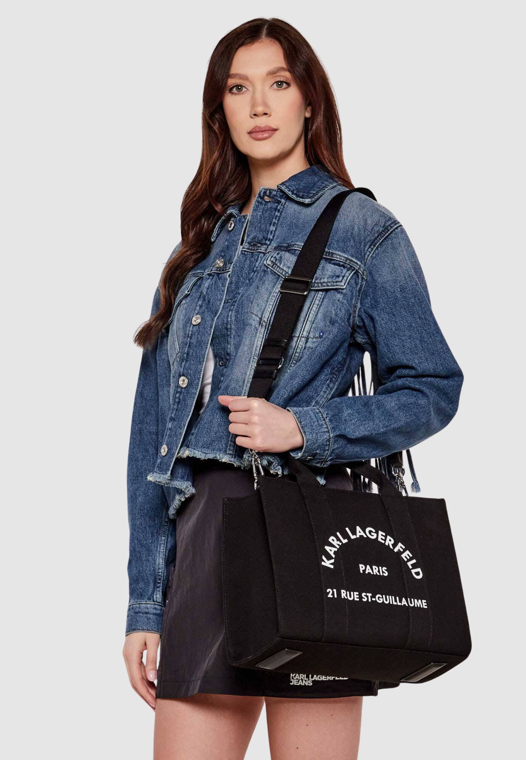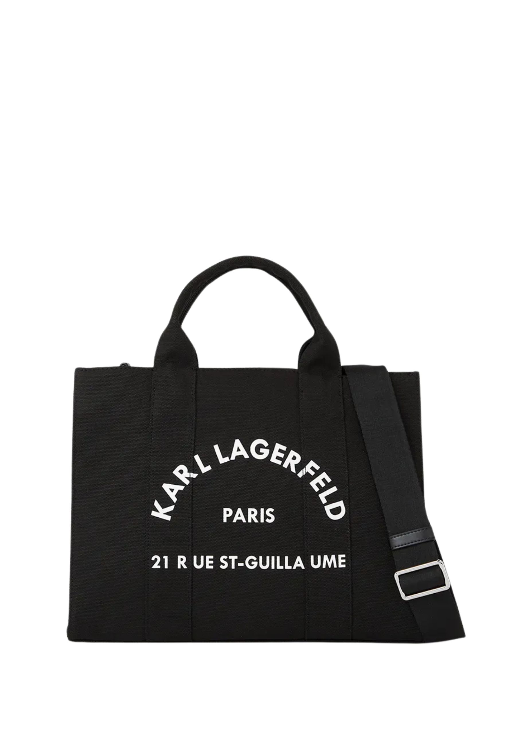 Borsa tote taglia media realizzata in tessuto tecnico con elevata percentuale di cotone riciclato, parte della linea sostenibile Karl Cares. Il design essenziale e contemporaneo è valorizzato dalla chiusura superiore con zip che garantisce sicurezza e praticità nellutilizzo quotidiano.