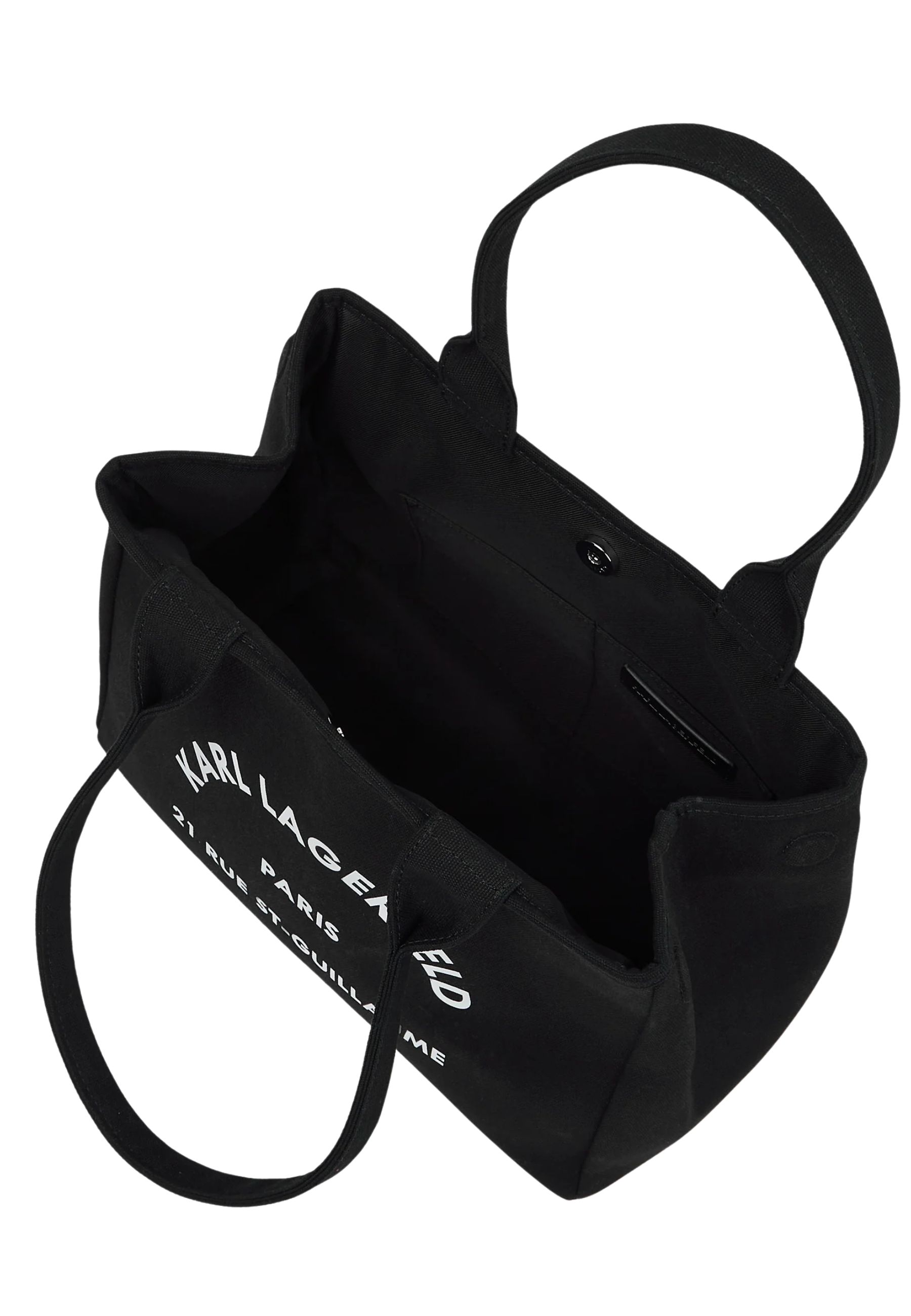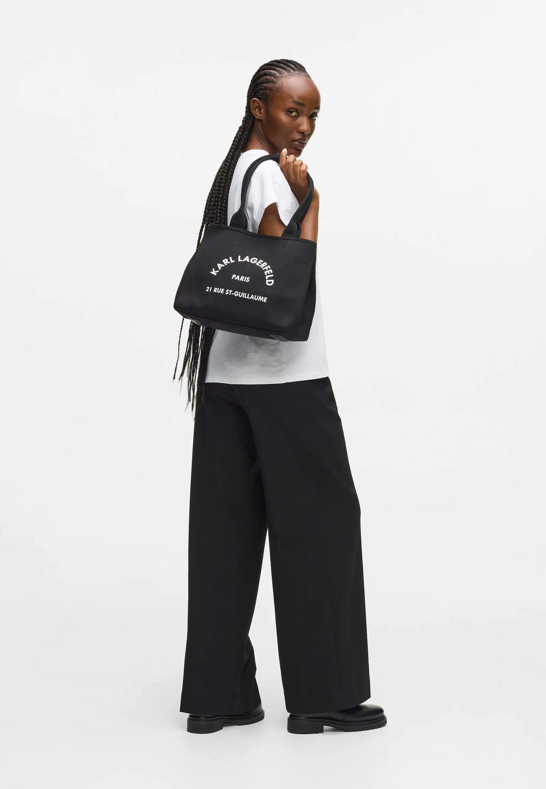 La chiusura con bottone garantisce sicurezza per gli effetti personali, mentre i due manici ampi e strutturati assicurano comfort nel trasporto a mano o a spalla. La grafica Rue St-Guillaume a contrasto sul pannello frontale conferisce riconoscibilità e identità al modello.