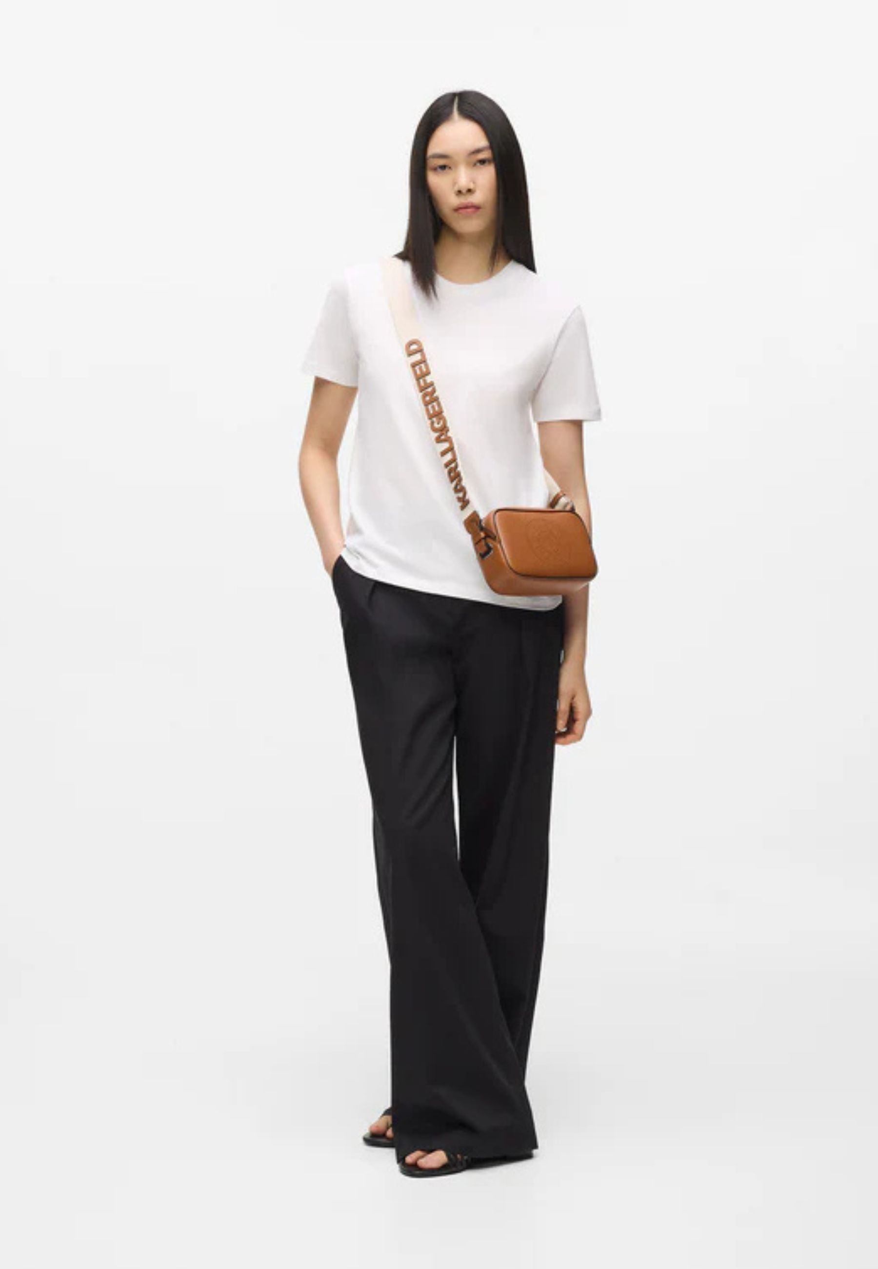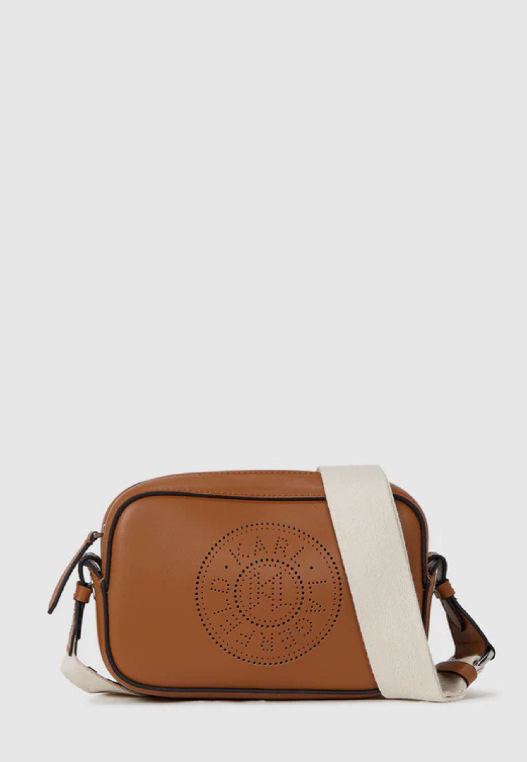 Camera bag dal design compatto ed essenziale, realizzata in 100% pelle di vacchetta liscia. Il modello si distingue per la grafica traforata KARL Circle sul pannello frontale, dettaglio iconico che valorizza la silhouette minimal.