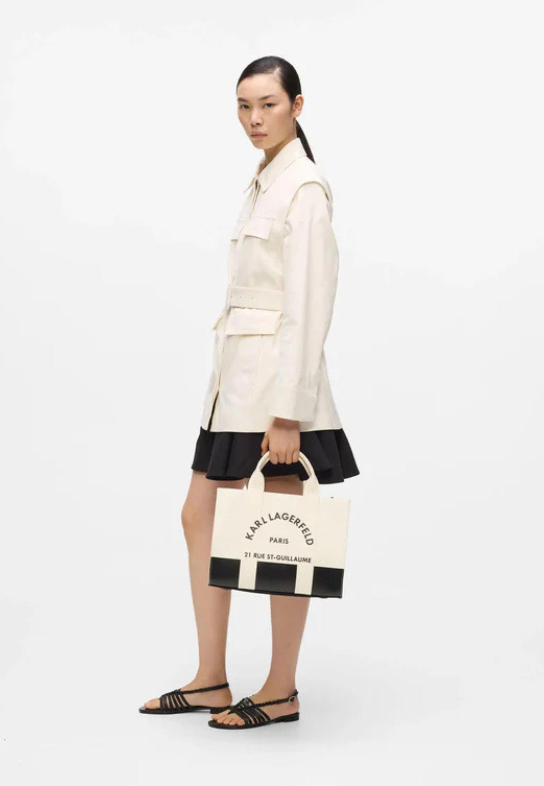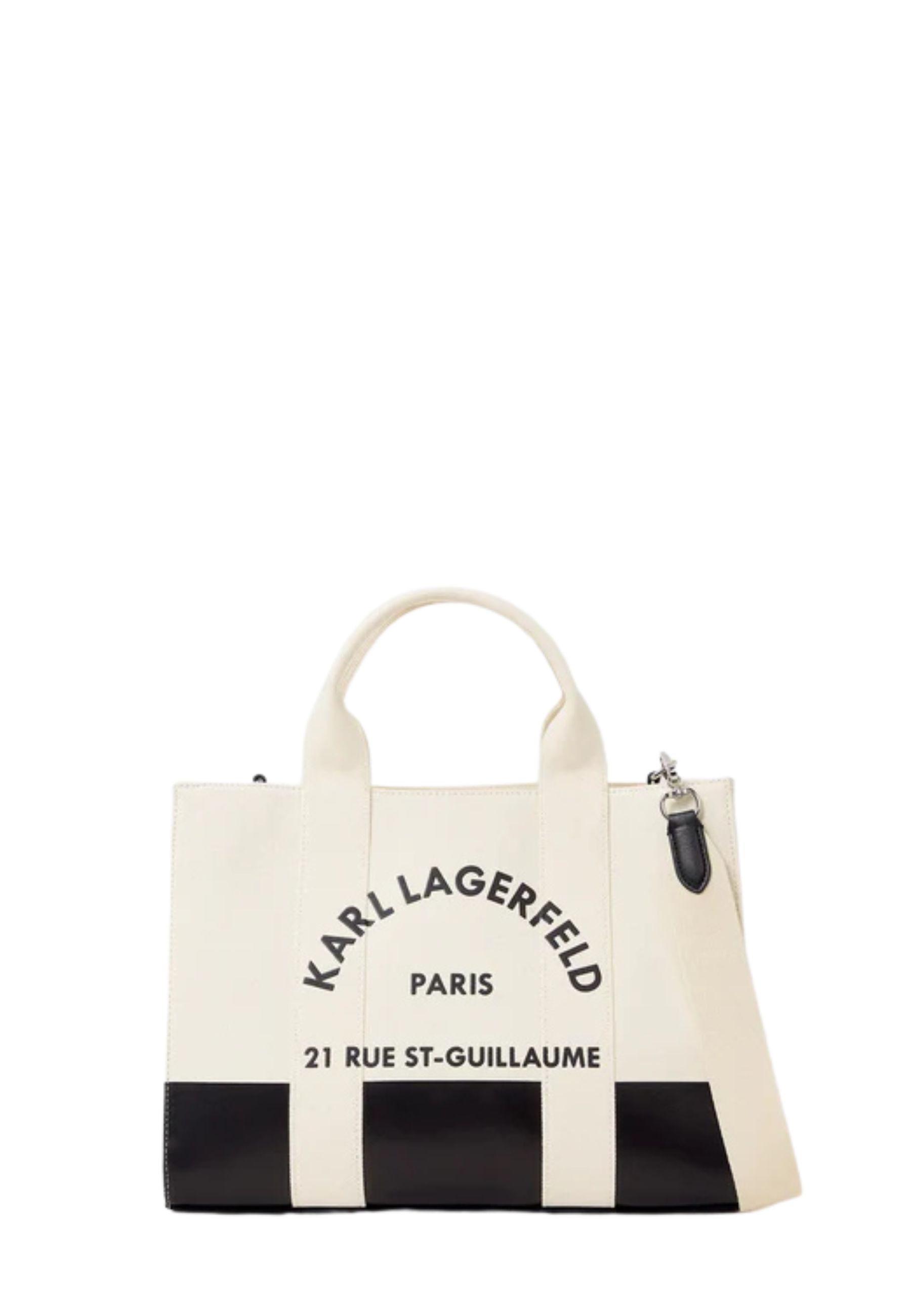 Shopper media dalla silhouette quadrata contemporanea, progettata per un utilizzo quotidiano pratico e strutturato. Il design essenziale è valorizzato dal maxi logo KARL LAGERFELD PARIS con scritta 21 Rue St-Guillaume a contrasto sul pannello frontale.